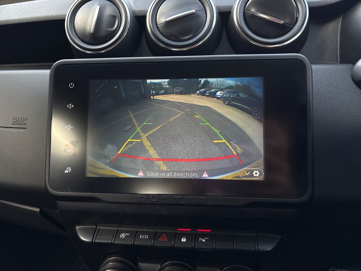 "features": "4x4 monitor with altimeter, Compass functional at 0km/h, Cruise control and speed limiter, Dacia instrument cluster, eCall emergency system, Eco mode, Electric power assisted steering, On board computer, odometer, trip computer, average fuel consumption, average speed, service indicator, outside temperature gauge, Rear parking sensors and reverse camera, Rev counter, Stop/start system, 8\" Media display with smartphone replication, 2 usb sockets and 6 speakers, Dacia plug and radio/MP3/USB/bluetooth/DAB/steering wheel control, 3 speed windscreen wipers, Black door mirrors, Black longitudinal roof bars with Duster inscription, Black side sills, Black/satin chrome tailgate trim with Duster inscription in black background and lettering, Body coloured door handles, Chrome front grille with hot stamping, Chrome logo surround on steering wheel, Dusk sensor, Electric adjustable/heated door mirrors, Electric front windows, Electric rear windows, Front and rear body coloured bumpers, Front door sill protection strip, Front fog lights, Heated rear window, High level third rear brake light, LED automatically switched on - In main headlights, LED daytime running lights, Rain sensor, Rear side wing doors, Rear spoiler, Rear wash/wipe, Tinted windows, Underbody protection skid plates, Y shaped LED headlights with rear LED lights, 3 rear height adjustable headrests, 3 seat bench in 2nd row, 60/40 split folding rear seat, Backlighted steering wheel buttons, Boot light, Driver seat lumbar adjustment, Fabric decorative insert on door panels, Fabric upholstery, Front head restraints, Front passenger reading light, Gear shift indicator, Glovebox light, Height adjustable driver seat, Height adjustable front and rear headrests, Height and depth adjustable steering wheel, High centre console with driver armrest, Isofix points for child seats in both outer rear seats, Manual air conditioning, Map pocket on front seat backs, Passenger sunvisor with vanity mirror, Rear passenger reading light, Satin chrome interior door handles, Satin chrome lower steering wheel insert, Single front passenger seat, Soft feel leather steering wheel, 3x3 point rear seatbelts, ABS and Emergency brake assist, ASR traction control with Electronic stability control, Child locks on rear doors, Door open visual and audible warning, Driver airbag, Driver and passenger seatbelt not fastened - visual and audible warning, Front passenger airbag, Front passenger airbag deactivation, Front seatbelt pretensioners, Front side airbags, Height adjustable front seatbelts, Hill start assist, Tyre pressure monitor, Remote central locking, Thatcham approved engine immobiliser, Dark carbon central console surround, Matt black central console fascia, Piano black decorative insert on door panels, Satin chrome air vent surround, 16\" alloy wheels, ",
