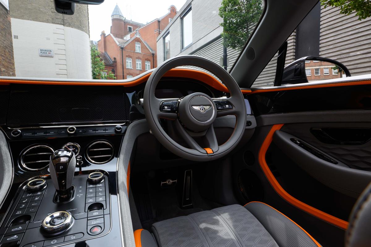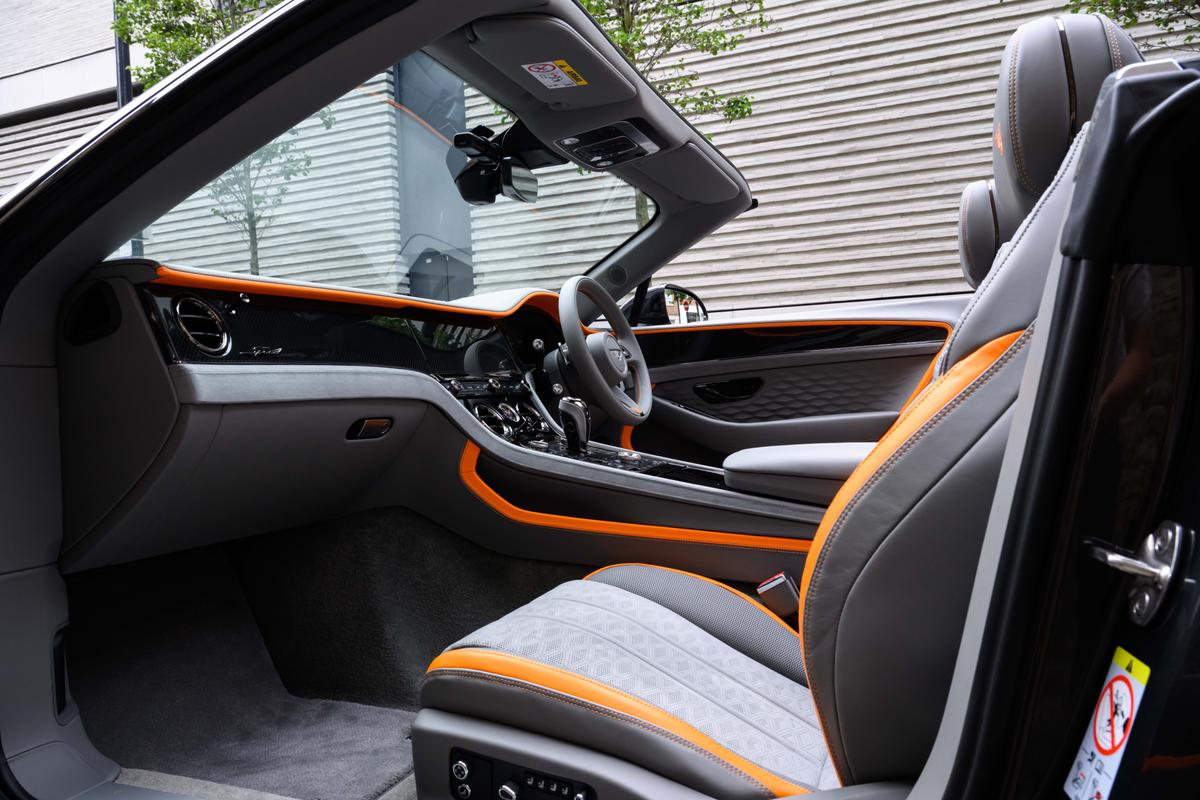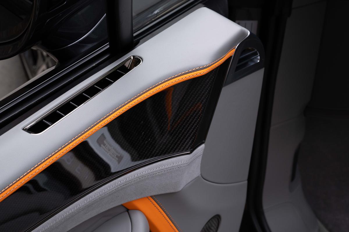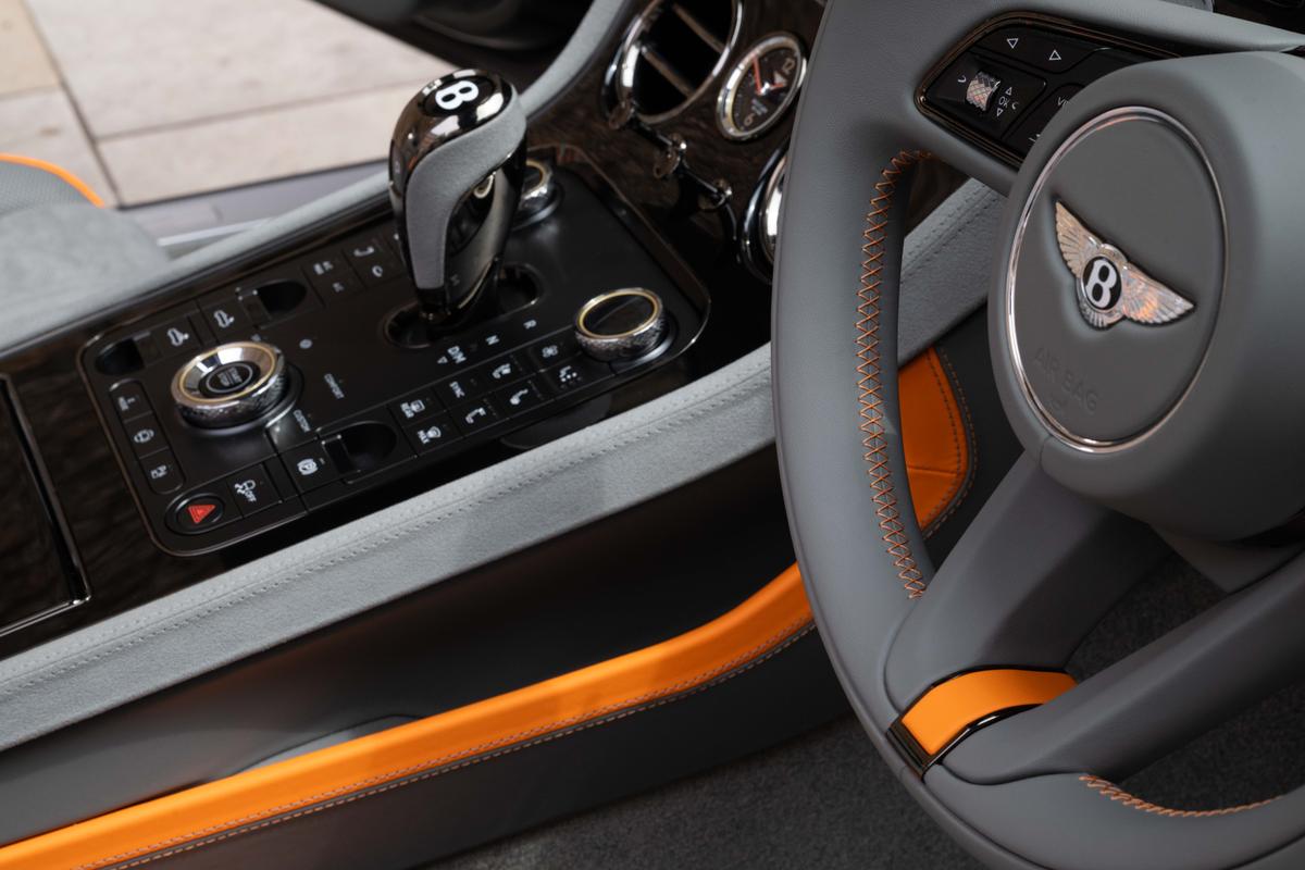 "Brushed stainless steel decorative inserts in dash",
