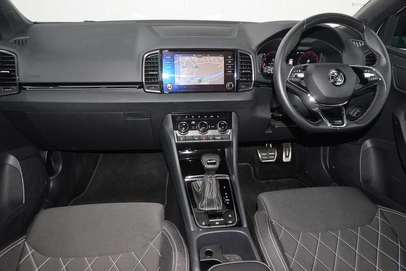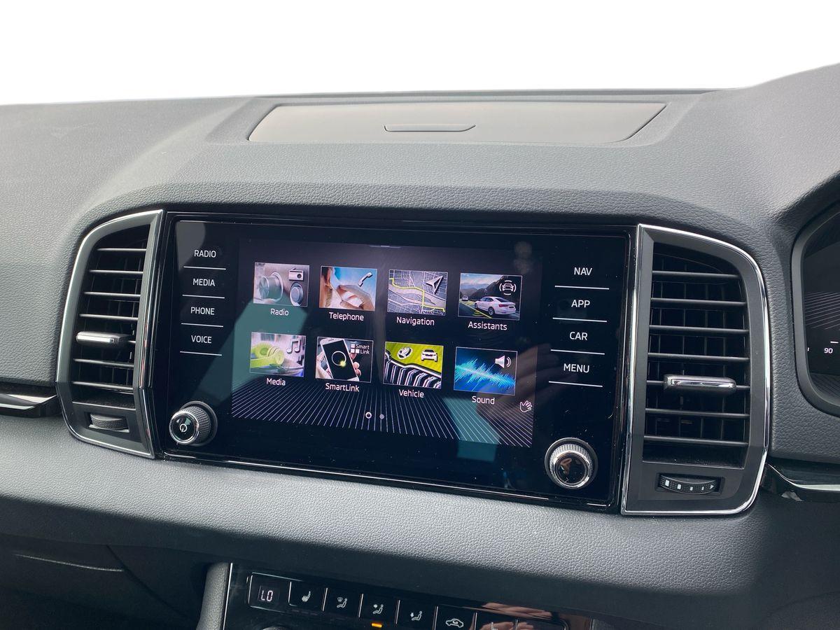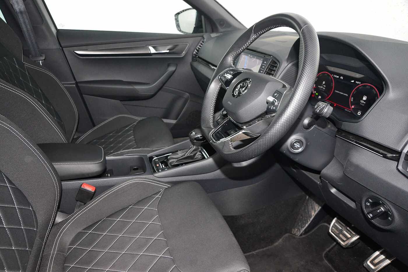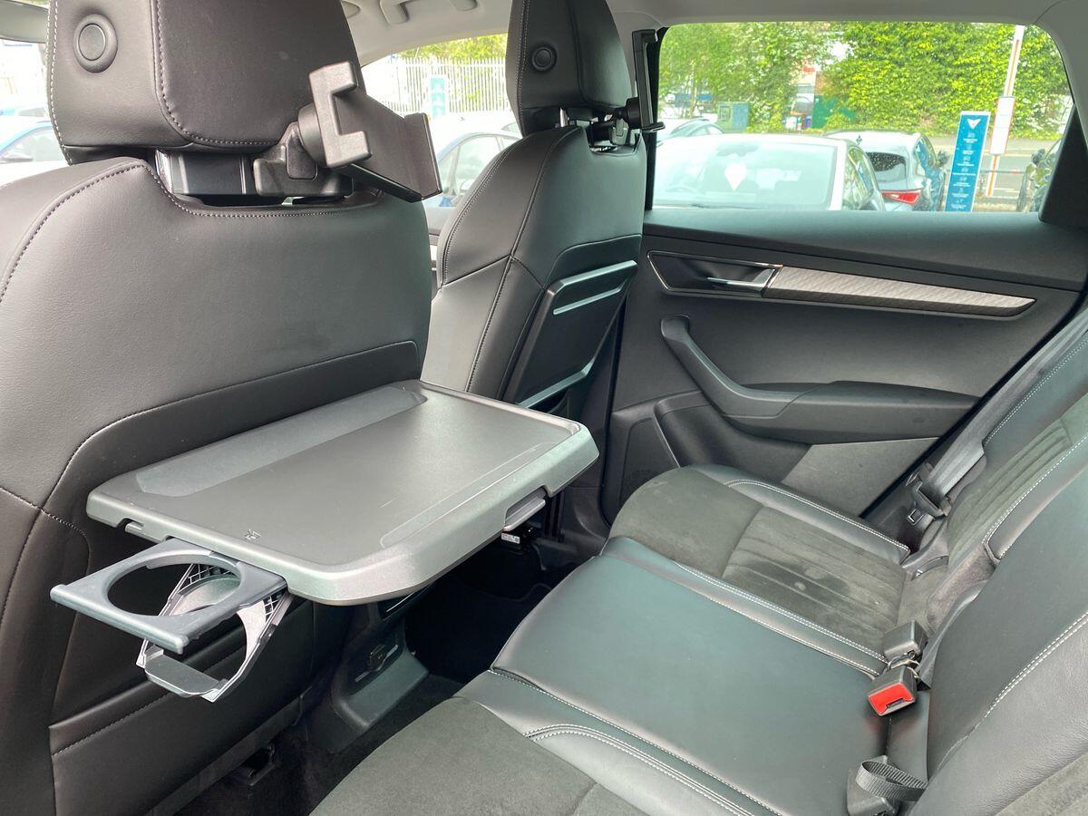 "features": "8\" Digital display, Advanced driver attention and drowsiness monitor, Emergency services call system, Outside temperature gauge, Sensor for driver assistance systems, Service interval indicator, SmartLink wireless for Apple and wired for Android, Start/stop system with regenerative braking, USB C Port x 2 in front centre console, Virtual Cockpit - 10.25\" digital display, Virtual pedal with electrically operated boot door, Wireless smartphone charging, Canton sound system, DAB radio with Bluetooth, USB connection, Acoustic glass, Aero front windscreen wipers with intermittent function, Auto dimming rear view mirror with light and rain sensors, Black door mirrors, Black electric window control buttons, Black radiator grille, Black roof rails, Body colour door handles, Electric front and rear windows with child proof lock, Front door steps with SportLine logo, Heated rear windscreen, LED 3rd brake light, LED daytime running lights, LED rear lights with high functionality welcome effect and dynamic indicators, Light assistant (coming/leaving home/tunnel light), Panoramic sliding sunroof, Plastic scuff plates in door apertures, Privacy glass, Protective door side sills in body colour, Rear diffuser, Rear side wing doors, Rear spoiler, Rear window wiper with washer system and intermittent control, Safety reflectors on front doors, Skoda lettering on tailgate in black, Sportline badge on front fender, Sportline decorative inserts with badging, Sports front and rear bumpers, 1.5 litre bottle holders in driver and front passenger door panels, 12V socket in boot, 12v socket in front centre armrest with storage compartment and rear air vents, 2 x Tablet holder, 3 rear height adjustable headrests, 3 seat bench in 2nd row, 3 spoke leather sports multifunction steering wheel and silver stitching with gear shift paddles, 4 foldable roof handles with rear coat hooks, Black floor carpet, Chrome inner door handles, Double sided boot floor, Foldable hooks in the boot, Front head restraints, Height adjustable front three point seats belts with tensioners, Height/reach adjust steering wheel, Ice scraper, Illuminated glovebox, Illuminated luggage compartment, Isofix child seat preparation for front passenger seat, Isofix child seat preparation outer rear, Manual lumbar support for front seats, Pen holder, Pollen filter, Rear boot cover, Rear reading lights, Rear seats fixed folding and divided 60:40, Rubbish bin door, Safety vest holder, Single front passenger seat, Storage box in upper central dashboard closed, Sunvisors with illuminated vanity mirrors, Textile floor mats, Ticket holder, Titan black interior ceiling, Umbrella under passenger seat, Under passenger seat storage compartment, Welcome animation with sportline logo, Light Pack - Karoq, Non Smokers pack, Automatic door unlocking in case of crash, Automatic fuel cut off in case of crash, Driver airbag, Electronic parking brake with auto hold function, Emergency rear braking signal, ESC including ABS, MSR, ASR, EDS, HBA, DSR, RBS, MKB and traction control, Front side airbags, Head airbags, Hill hold control, Knee airbags, Passenger airbag with switch-off function, Pedestrian monitor, Seatbelt reminder signalisation and pretensioner for all seats, Three point seatbelts rear, Two tone horn, Tyre pressure monitor, Alarm with interior monitoring, back up horn and tilt sensor with safe function, Electronic engine immobiliser, Keyless entry and start/stop, Remote central locking with 2 remote folding keys, Black air vent surround, Black centre console, carbon door decor, Satin black dashboard, Satin black door trim, 19\" Sagittarius anthracite alloy wheels, Anti-theft wheel bolts protection, Breakdown and tool kit, ",