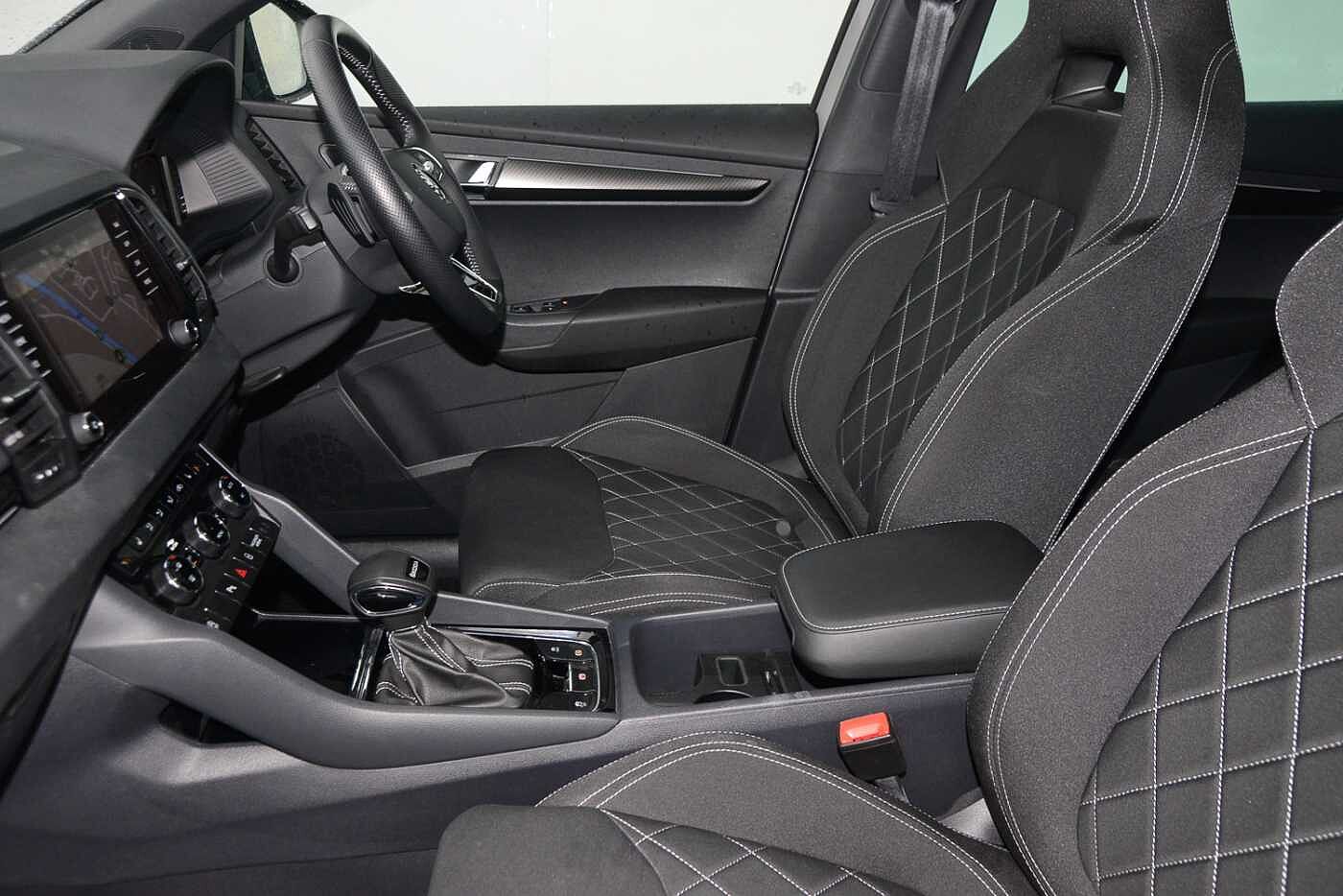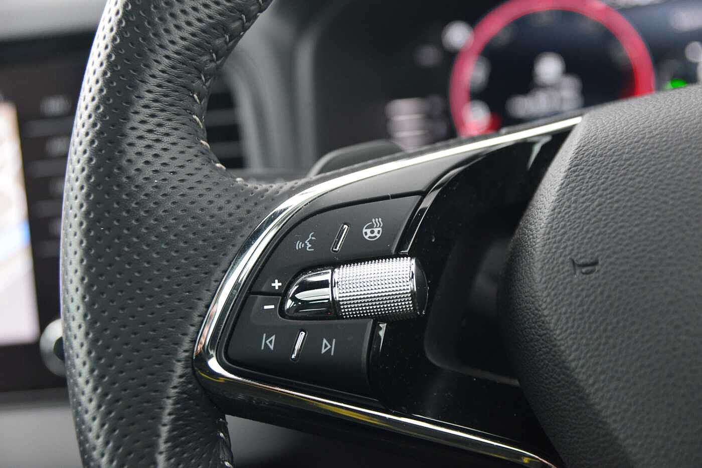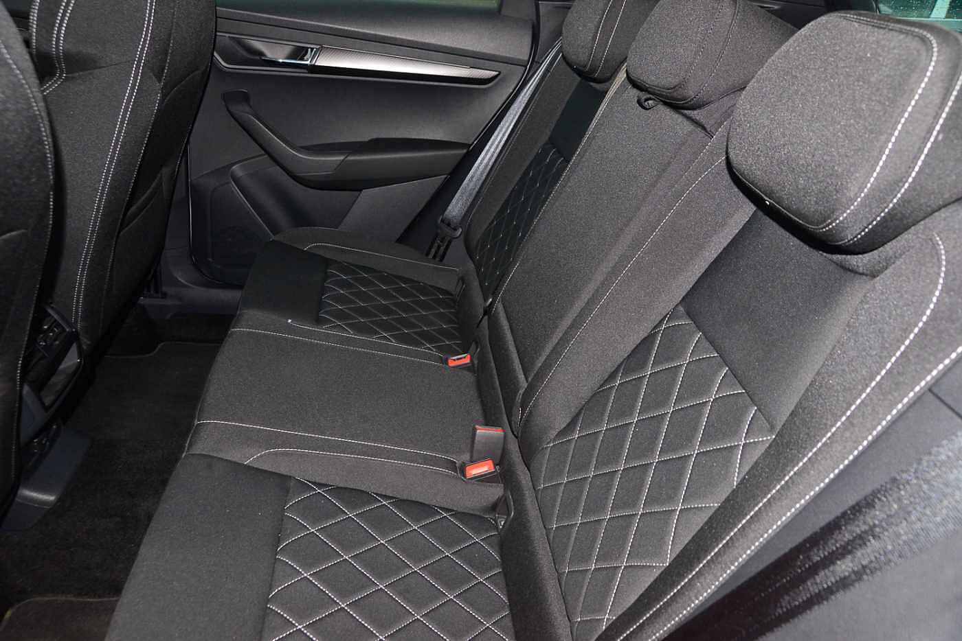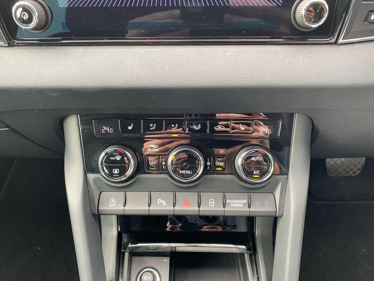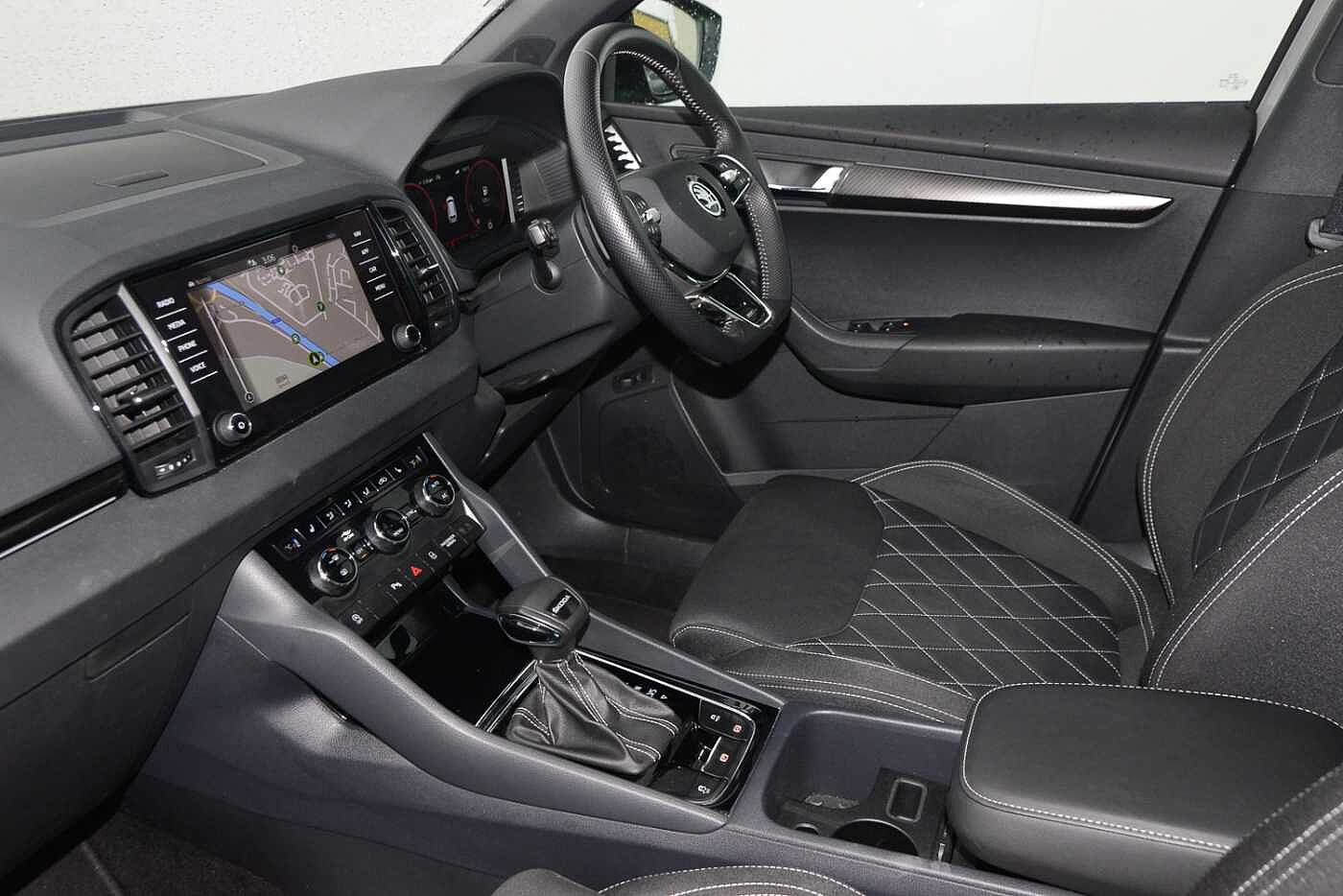"features": "8\" Digital display, Advanced driver attention and drowsiness monitor, Emergency services call system, Outside temperature gauge, Sensor for driver assistance systems, Service interval indicator, SmartLink wireless for Apple and wired for Android, Start/stop system with regenerative braking, USB C Port x 2 in front centre console, Virtual Cockpit - 10.25\" digital display, Virtual pedal with electrically operated boot door, Wireless smartphone charging, Canton sound system, DAB radio with Bluetooth, USB connection, Acoustic glass, Aero front windscreen wipers with intermittent function, Auto dimming rear view mirror with light and rain sensors, Black door mirrors, Black electric window control buttons, Black radiator grille, Black roof rails, Body colour door handles, Electric front and rear windows with child proof lock, Front door steps with SportLine logo, Heated rear windscreen, LED 3rd brake light, LED daytime running lights, LED rear lights with high functionality welcome effect and dynamic indicators, Light assistant (coming/leaving home/tunnel light), Panoramic sliding sunroof, Plastic scuff plates in door apertures, Privacy glass, Protective door side sills in body colour, Rear diffuser, Rear side wing doors, Rear spoiler, Rear window wiper with washer system and intermittent control, Safety reflectors on front doors, Skoda lettering on tailgate in black, Sportline badge on front fender, Sportline decorative inserts with badging, Sports front and rear bumpers, 1.5 litre bottle holders in driver and front passenger door panels, 12V socket in boot, 12v socket in front centre armrest with storage compartment and rear air vents, 2 x Tablet holder, 3 rear height adjustable headrests, 3 seat bench in 2nd row, 3 spoke leather sports multifunction steering wheel and silver stitching with gear shift paddles, 4 foldable roof handles with rear coat hooks, Black floor carpet, Chrome inner door handles, Double sided boot floor, Foldable hooks in the boot, Front head restraints, Height adjustable front three point seats belts with tensioners, Height/reach adjust steering wheel, Ice scraper, Illuminated glovebox, Illuminated luggage compartment, Isofix child seat preparation for front passenger seat, Isofix child seat preparation outer rear, Manual lumbar support for front seats, Pen holder, Pollen filter, Rear boot cover, Rear reading lights, Rear seats fixed folding and divided 60:40, Rubbish bin door, Safety vest holder, Single front passenger seat, Storage box in upper central dashboard closed, Sunvisors with illuminated vanity mirrors, Textile floor mats, Ticket holder, Titan black interior ceiling, Umbrella under passenger seat, Under passenger seat storage compartment, Welcome animation with sportline logo, Light Pack - Karoq, Non Smokers pack, Automatic door unlocking in case of crash, Automatic fuel cut off in case of crash, Driver airbag, Electronic parking brake with auto hold function, Emergency rear braking signal, ESC including ABS, MSR, ASR, EDS, HBA, DSR, RBS, MKB and traction control, Front side airbags, Head airbags, Hill hold control, Knee airbags, Passenger airbag with switch-off function, Pedestrian monitor, Seatbelt reminder signalisation and pretensioner for all seats, Three point seatbelts rear, Two tone horn, Tyre pressure monitor, Alarm with interior monitoring, back up horn and tilt sensor with safe function, Electronic engine immobiliser, Keyless entry and start/stop, Remote central locking with 2 remote folding keys, Black air vent surround, Black centre console, carbon door decor, Satin black dashboard, Satin black door trim, 19\" Sagittarius anthracite alloy wheels, Anti-theft wheel bolts protection, Breakdown and tool kit, ",