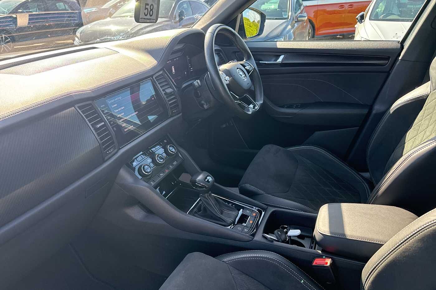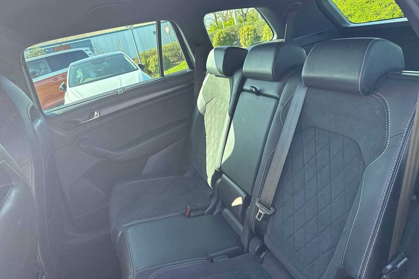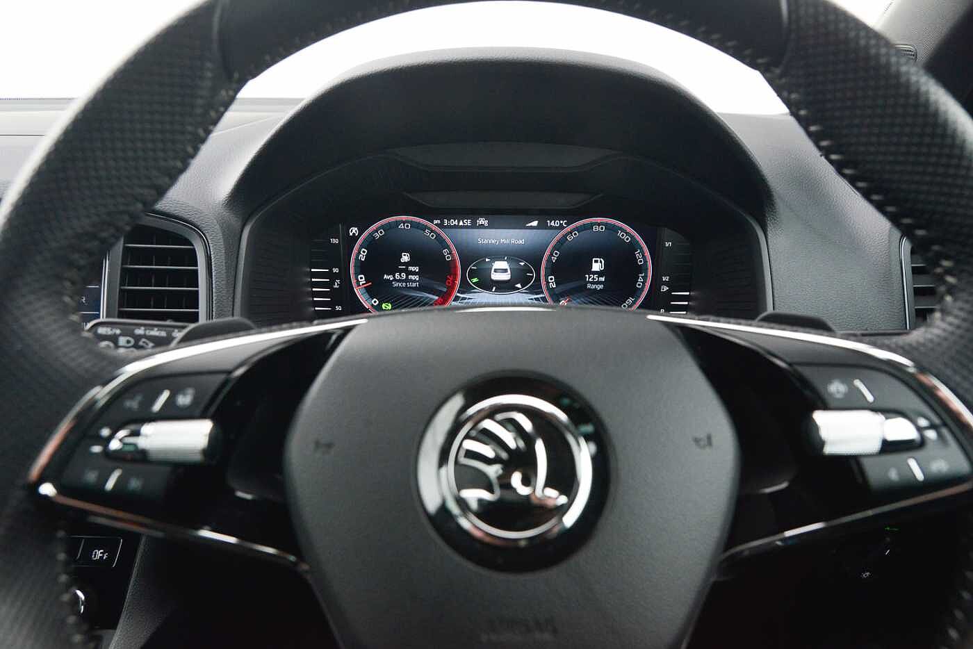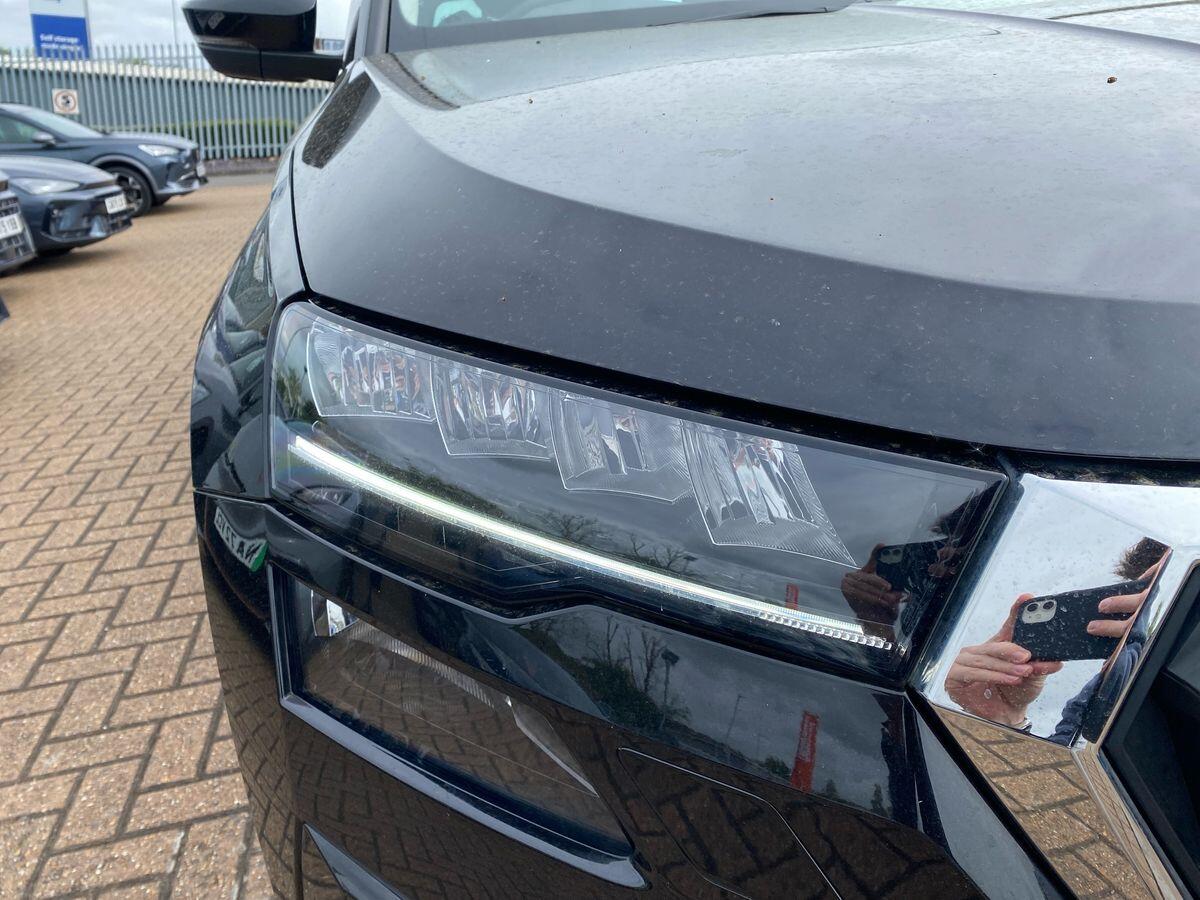 "features": "8\" Digital display, Advanced driver attention and drowsiness monitor, Emergency services call system, Outside temperature gauge, Sensor for driver assistance systems, Service interval indicator, SmartLink wireless for Apple and wired for Android, Start/stop system with regenerative braking, USB C Port x 2 in front centre console, Virtual Cockpit - 10.25\" digital display, Virtual pedal with electrically operated boot door, Wireless smartphone charging, Canton sound system, DAB radio with Bluetooth, USB connection, Acoustic glass, Aero front windscreen wipers with intermittent function, Auto dimming rear view mirror with light and rain sensors, Black door mirrors, Black electric window control buttons, Black radiator grille, Black roof rails, Body colour door handles, Electric front and rear windows with child proof lock, Front door steps with SportLine logo, Heated rear windscreen, LED 3rd brake light, LED daytime running lights, LED rear lights with high functionality welcome effect and dynamic indicators, Light assistant (coming/leaving home/tunnel light), Panoramic sliding sunroof, Plastic scuff plates in door apertures, Privacy glass, Protective door side sills in body colour, Rear diffuser, Rear side wing doors, Rear spoiler, Rear window wiper with washer system and intermittent control, Safety reflectors on front doors, Skoda lettering on tailgate in black, Sportline badge on front fender, Sportline decorative inserts with badging, Sports front and rear bumpers, 1.5 litre bottle holders in driver and front passenger door panels, 12V socket in boot, 12v socket in front centre armrest with storage compartment and rear air vents, 2 x Tablet holder, 3 rear height adjustable headrests, 3 seat bench in 2nd row, 3 spoke leather sports multifunction steering wheel and silver stitching with gear shift paddles, 4 foldable roof handles with rear coat hooks, Black floor carpet, Chrome inner door handles, Double sided boot floor, Foldable hooks in the boot, Front head restraints, Height adjustable front three point seats belts with tensioners, Height/reach adjust steering wheel, Ice scraper, Illuminated glovebox, Illuminated luggage compartment, Isofix child seat preparation for front passenger seat, Isofix child seat preparation outer rear, Manual lumbar support for front seats, Pen holder, Pollen filter, Rear boot cover, Rear reading lights, Rear seats fixed folding and divided 60:40, Rubbish bin door, Safety vest holder, Single front passenger seat, Storage box in upper central dashboard closed, Sunvisors with illuminated vanity mirrors, Textile floor mats, Ticket holder, Titan black interior ceiling, Umbrella under passenger seat, Under passenger seat storage compartment, Welcome animation with sportline logo, Light Pack - Karoq, Non Smokers pack, Automatic door unlocking in case of crash, Automatic fuel cut off in case of crash, Driver airbag, Electronic parking brake with auto hold function, Emergency rear braking signal, ESC including ABS, MSR, ASR, EDS, HBA, DSR, RBS, MKB and traction control, Front side airbags, Head airbags, Hill hold control, Knee airbags, Passenger airbag with switch-off function, Pedestrian monitor, Seatbelt reminder signalisation and pretensioner for all seats, Three point seatbelts rear, Two tone horn, Tyre pressure monitor, Alarm with interior monitoring, back up horn and tilt sensor with safe function, Electronic engine immobiliser, Keyless entry and start/stop, Remote central locking with 2 remote folding keys, Black air vent surround, Black centre console, carbon door decor, Satin black dashboard, Satin black door trim, 19\" Sagittarius anthracite alloy wheels, Anti-theft wheel bolts protection, Breakdown and tool kit, ",