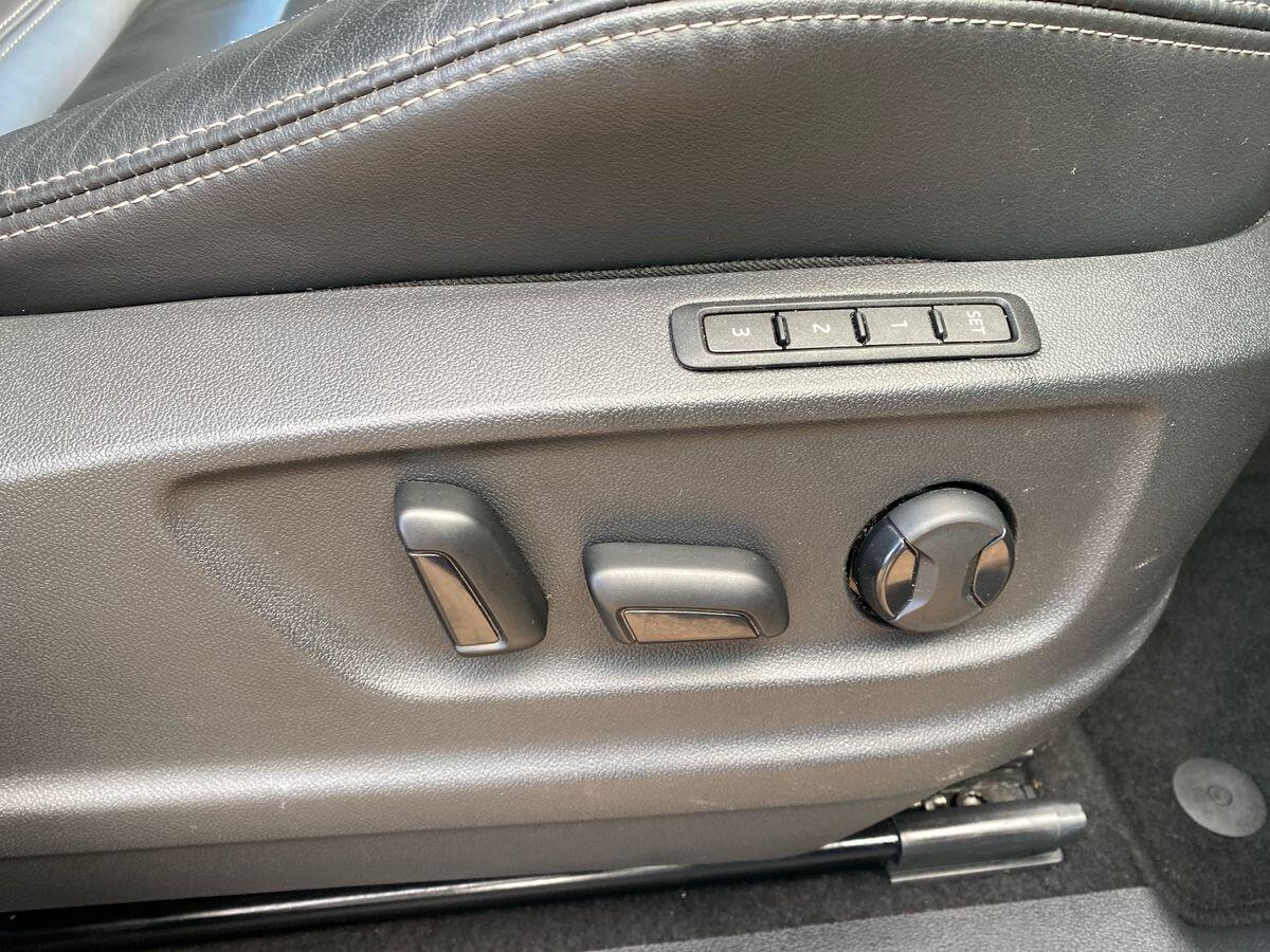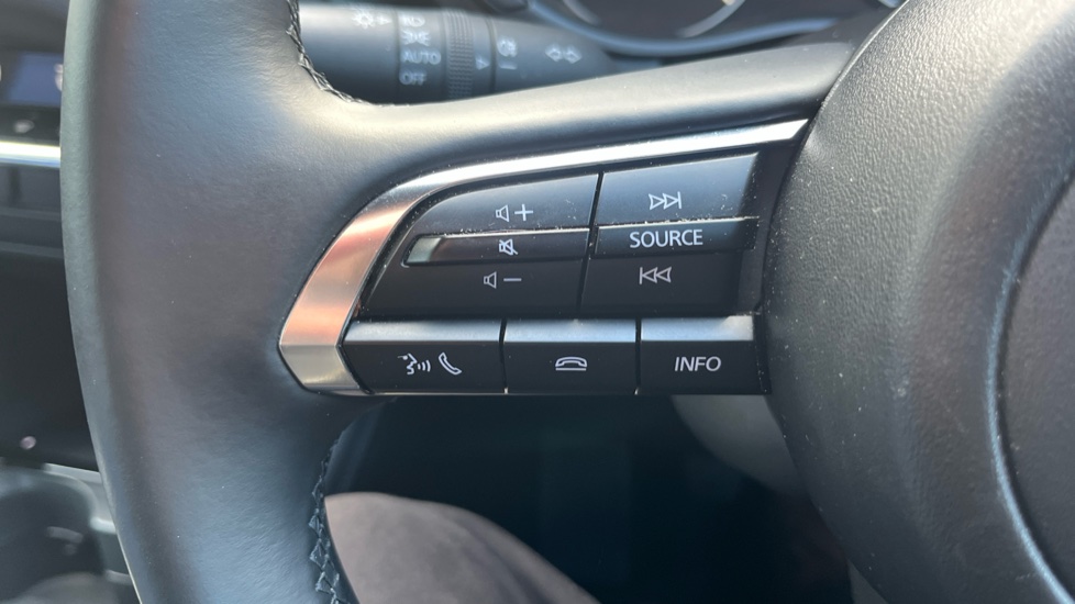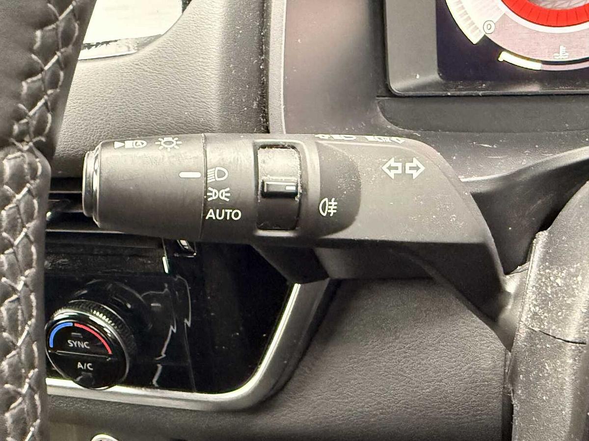 "3 spoke leather sports multifunction steering wheel and silver stitching with gear shift paddles",