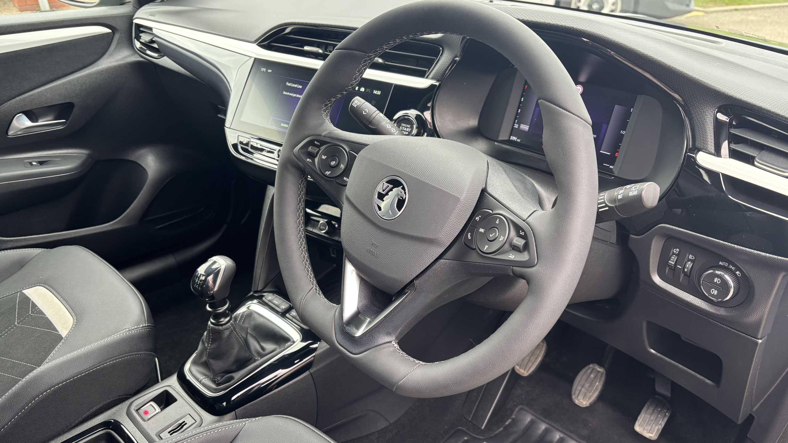 "3 spoke flat bottomed multi-function leather sport steering wheel with gear shift paddles",