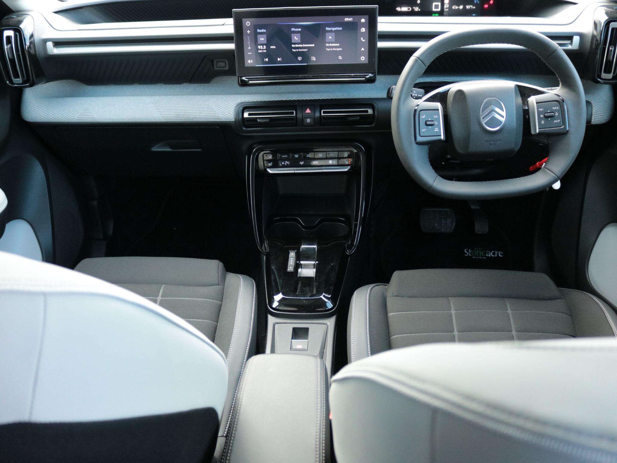 "features": "1x USB-C connection on dashboard, 1x USB-C fast charge in row 2, 1x USB-C fast charge on high console, Active lane departure warning system, Citroen connect box emergency and assistance system, Connected services, Cruise control + speed limiter, e-toggle gear selector, eCall emergency call system, Electric power steering, Exterior temperature display, Head up Display, Multi function trip computer, Rear parking sensors, Reversing camera, Wireless Smartphone charger, Advanced comfort suspension with progressive hydraulic cushions, Fast charging DC 100kW, Mode 3 charging cable - Monophase 7kW - 5metres, Remote charging, Citroen connect nav with DAB radio, 6 speakers, 10.25\" capacitive touchscreen, wireless mirror screen, apple carplay/android auto and bluetooth, 3D rear light signature, Automatic activation of hazard warning lights, Automatic headlights, Black roof bars, Black wheel arch extensions, Body colour bumpers, Dark tinted tailgate and rear side windows, Electric front power windows with auto up/down for the driver and auto down for passenger, Electric rear power windows, Electrically heated, folding and adjustable external rear view mirrors, Electrochrome auto dimming interior rear view mirror, Fog lights integrated into front bumper, Front and rear skid plates in grey, Front intermittent wipers, Gloss black exterior door handles, Gloss black finish B and C pillar, Gloss black rear view mirror caps, Heated acoustic windscreen, Heated rear window, Intelligent beam headlights, LED daytime running lights, LED headlights with electric levelling, LED rear lights, LED third brake light, Rear roof spoiler, Rear side wing doors, Turn indicators integrated into rear view mirrors, 1 litre bottle storage in front and rear door pockets, 1/3 to 2/3 split folding rear seat, 12V socket on console, 4x anchoring rings on boot, Advanced comfort front and rear seats, Automatic air conditioning, Bag support hook in boot, Cabin temperature pre-conditioning, Central storage with 2 cupholders, Chrome effect interior door handles, Closed glove box, Cloth/leather effect upholstery, Driver and passenger's sun visor with courtesy mirror, Driver's seat height adjustment, Fixed boot light, Front and rear floor mats, Front seats adjustable with forward back slide and adjustable backrest, Heated front seats, Heated steering wheel, Height adjustable front head restraints, Height/reach adjust steering wheel, High console with armrest and closed storage, ISOFIX mounting on outer rear seats with top tether and labels indicating fixing points, Leather effect steering wheel with gloss black and chrome elements and integrated audio/telephone/cruise control/speed limit controls, LED front lighting panel with map reading lights, Map pockets in back of driver and front passenger seats with additional pocket for smartphone storage, Padded fabric armrests in front and rear doors with labels, Parcel shelf, Seatbelt unfastened on the move audible and visual alert for front and rear seats, Single front passenger seat, Three rear headrests, Safety pack - C3 Plus and Max, Visibility pack - C3 Plus and Max, ABS, Child locks on rear doors, Driver and front passenger seatbelts with pyrotechnic pretensioners and force limiters, Driver's airbag, Electric parking brake, ESP with anti skid system, Front passenger airbag, Front passenger airbag deactivation, Front side airbags + front/rear curtain airbags, Hill start assist, Mono-tone horn, Three rear 3-point seatbelts, Tyre pressure monitoring system, Automatic door and boot locking when moving off with automatic unlocking in case of impact, AVAS Approaching vehicle alert system, Central locking with deadlocks, Connected anti theft alarm (Volumetric and perimetric with tilt sensor), Immobiliser, Remote control central locking with 1x plip key and 1x non plip key, 2 side air vents and 2 central air vents on dashboard, Grey decor on dasbhboard, Grey decor on front doors, 17\" Atacamite diamond cut bi-tone alloy wheels with locking wheel nuts, ",