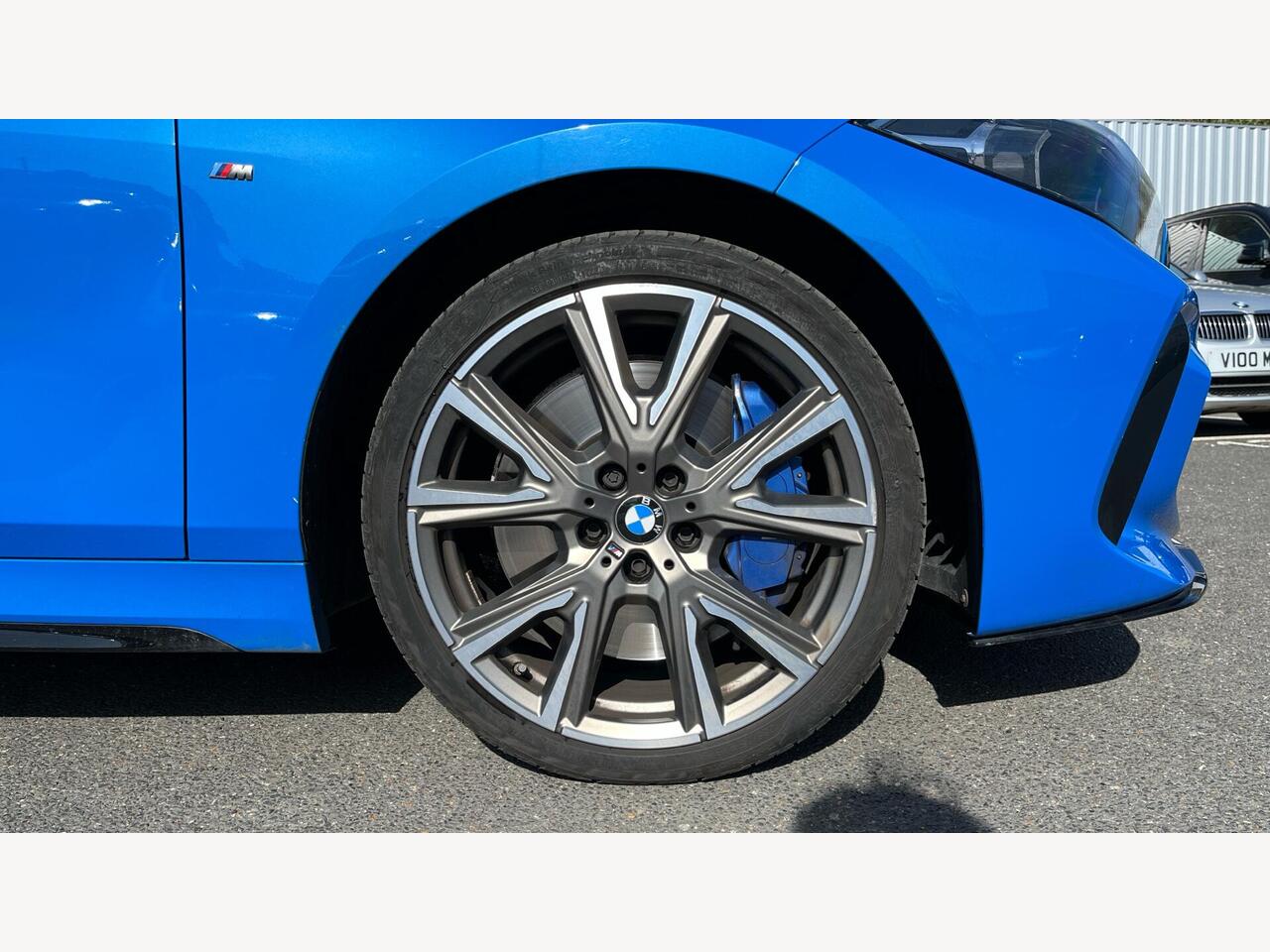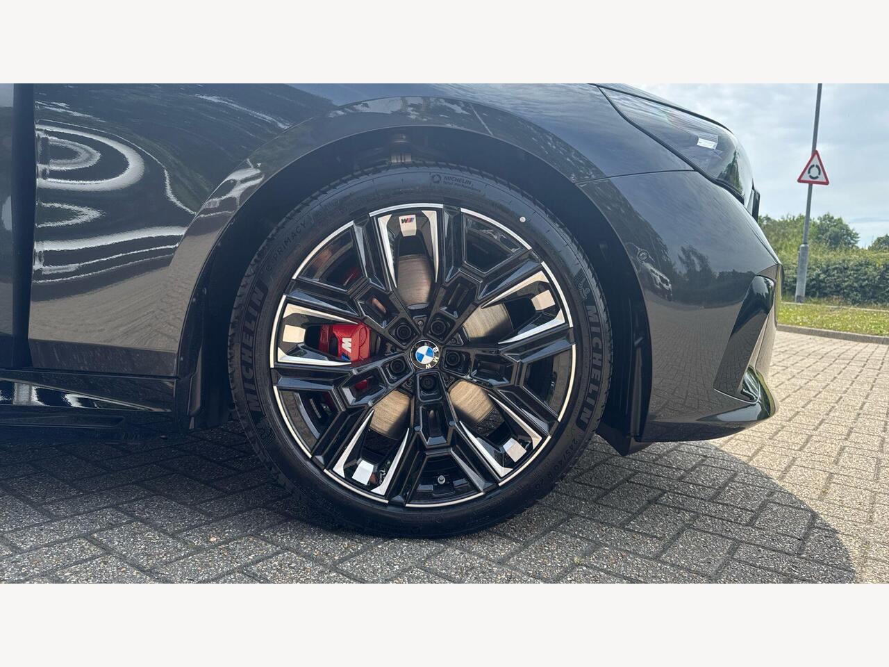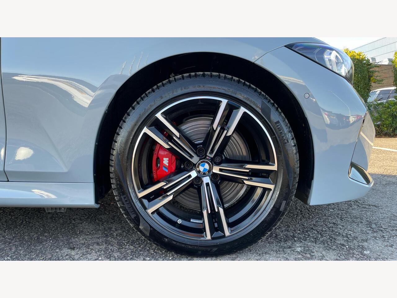 "M Sport brake in high gloss red painted brake callipers with monochrome logo on front calliper",