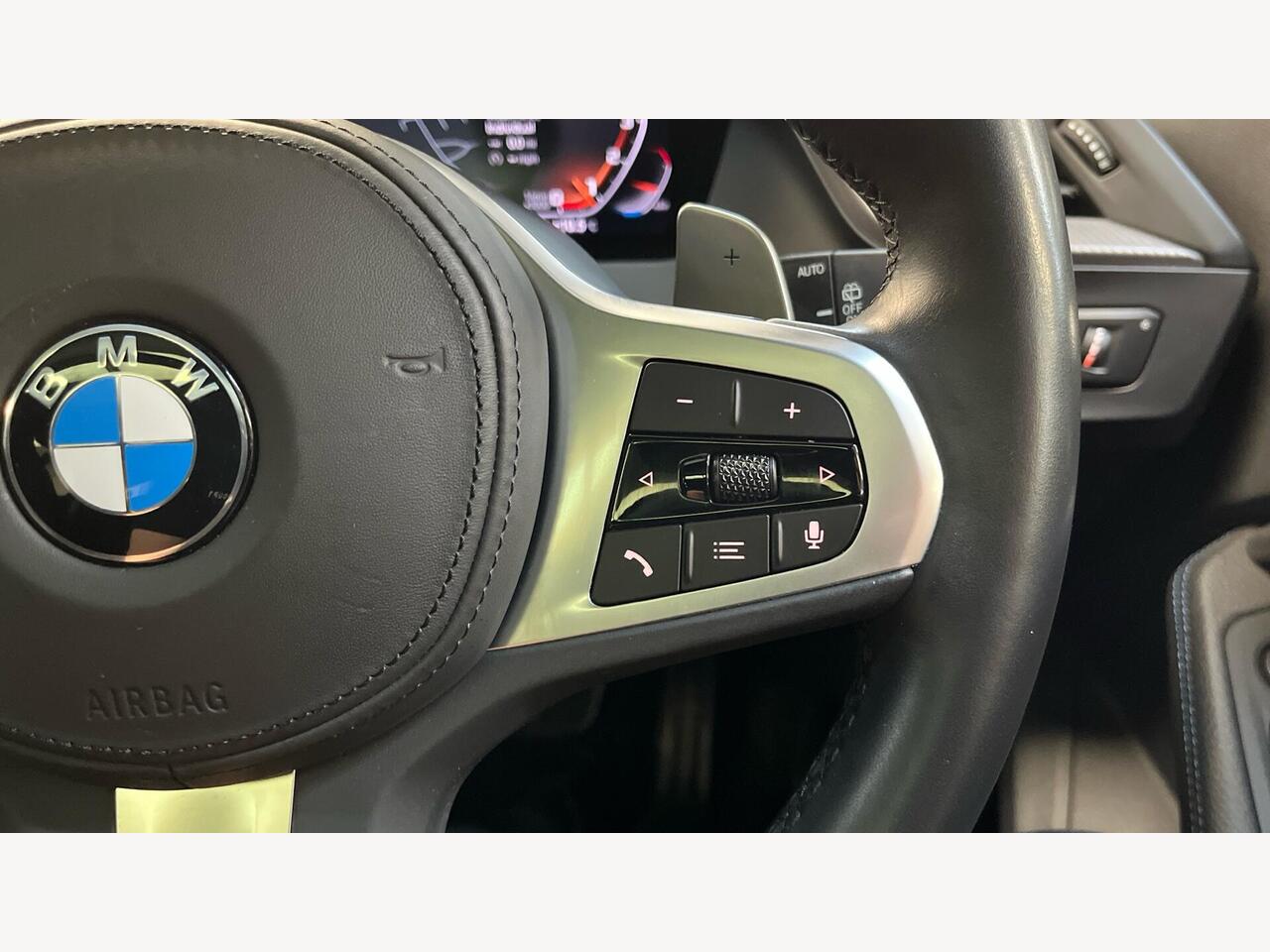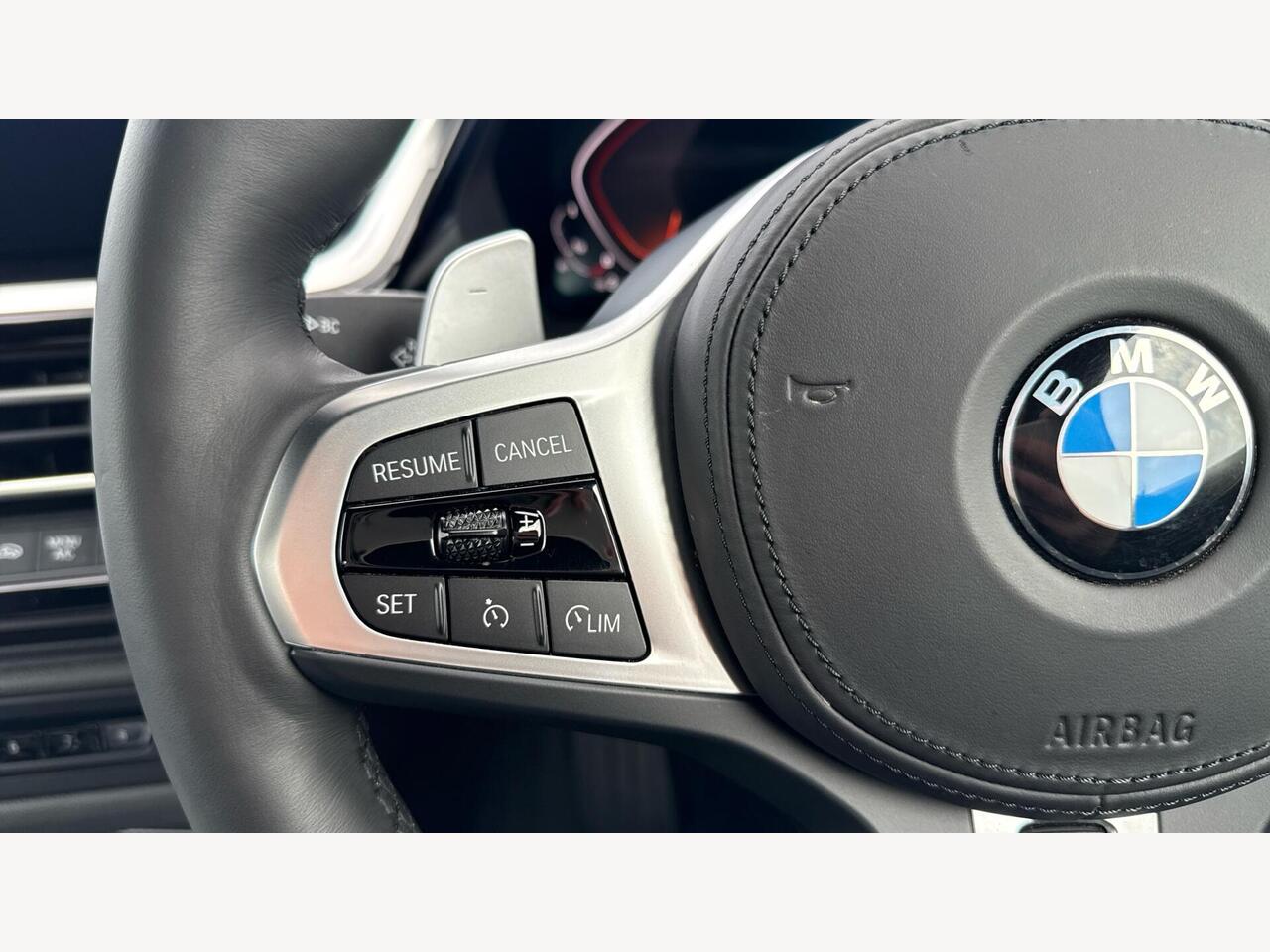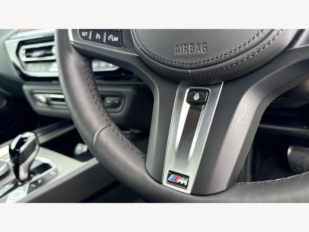"3 spoke leather M steering wheel in BMW M specific design with M badge",
