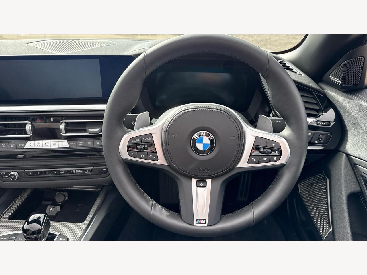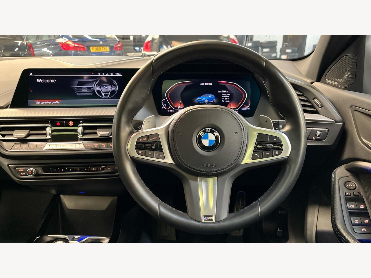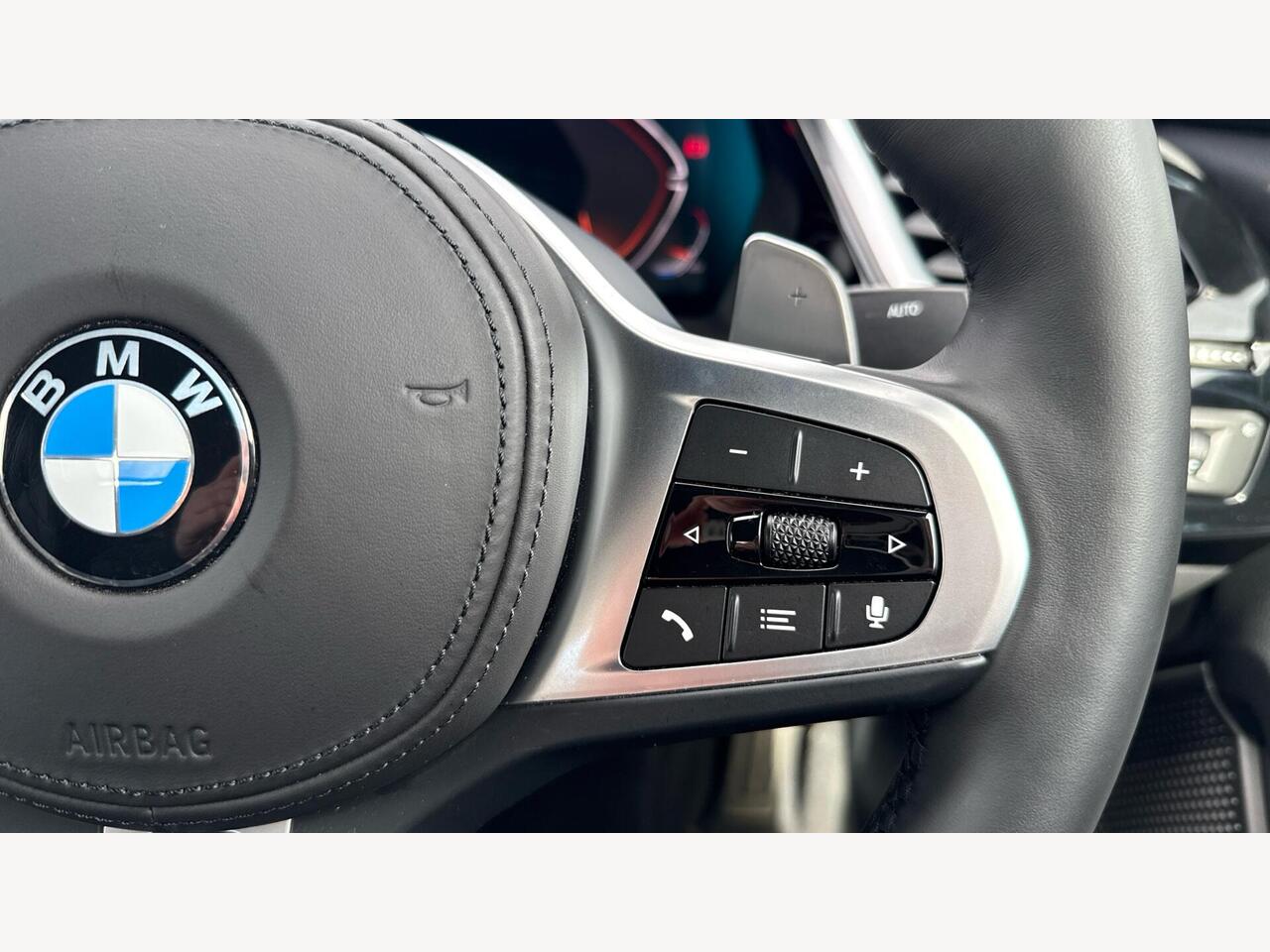 "3 spoke leather M steering wheel in BMW M specific design with M badge",