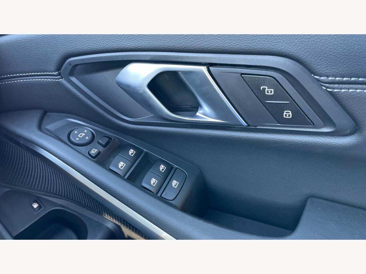 "High-gloss black door switch cluster, power window switch and tailgate button on first and second row seat",