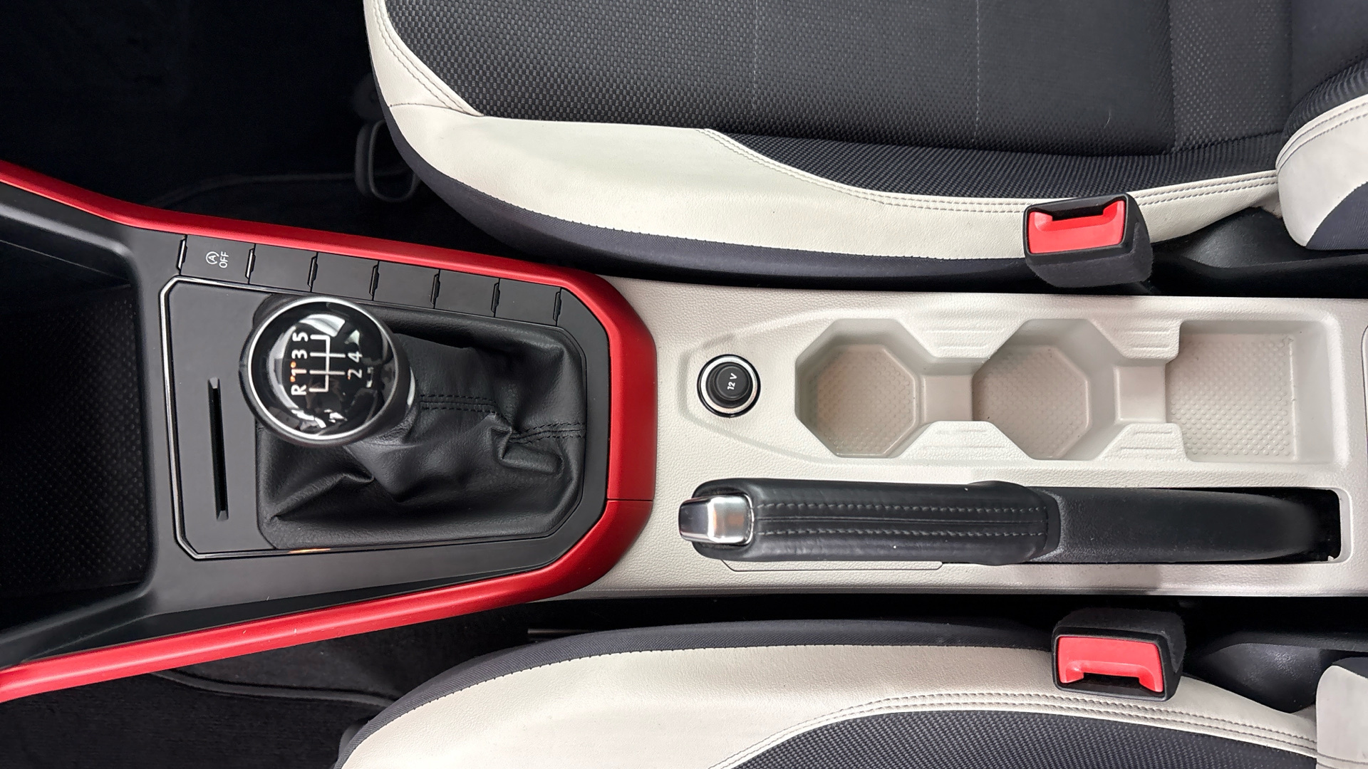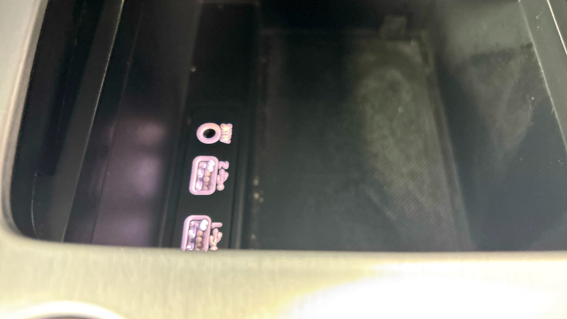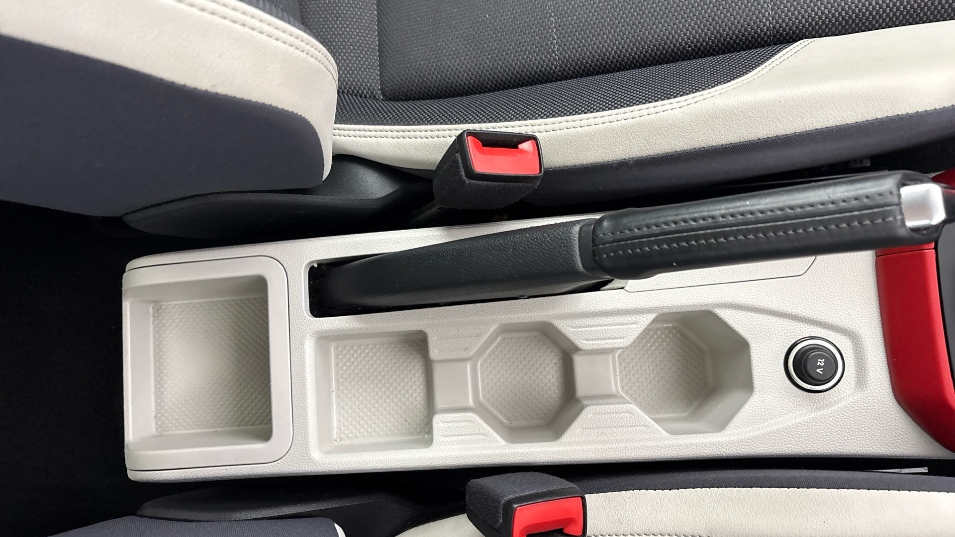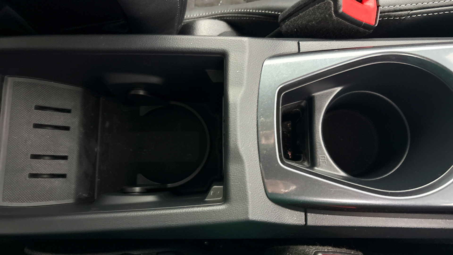 "Uncovered storage compartment in centre console"