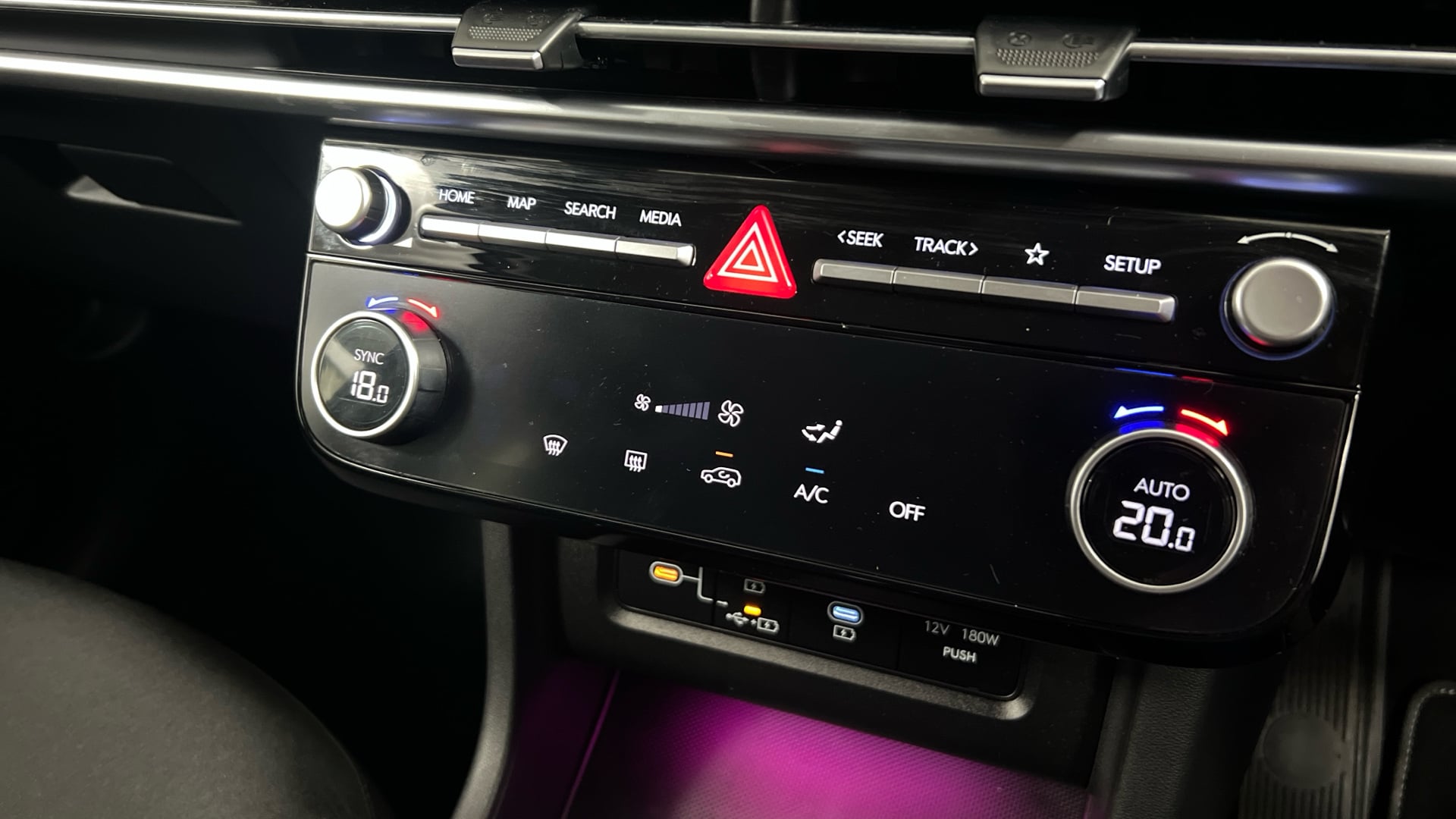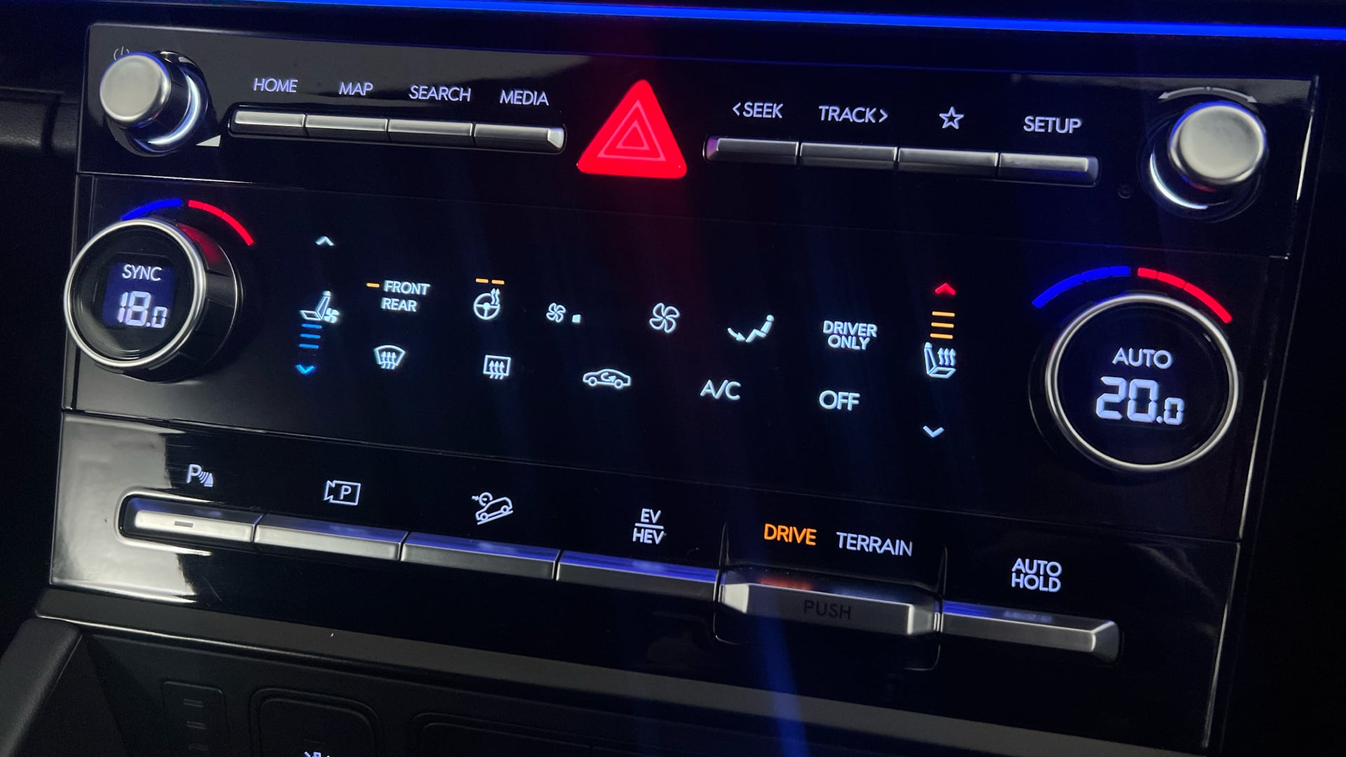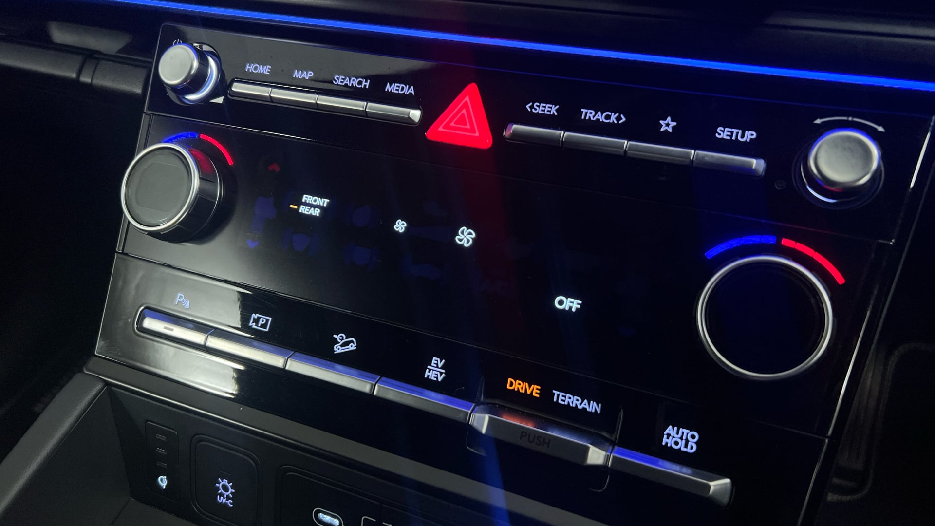 "Touch sensitive climate controls with temperature dials",