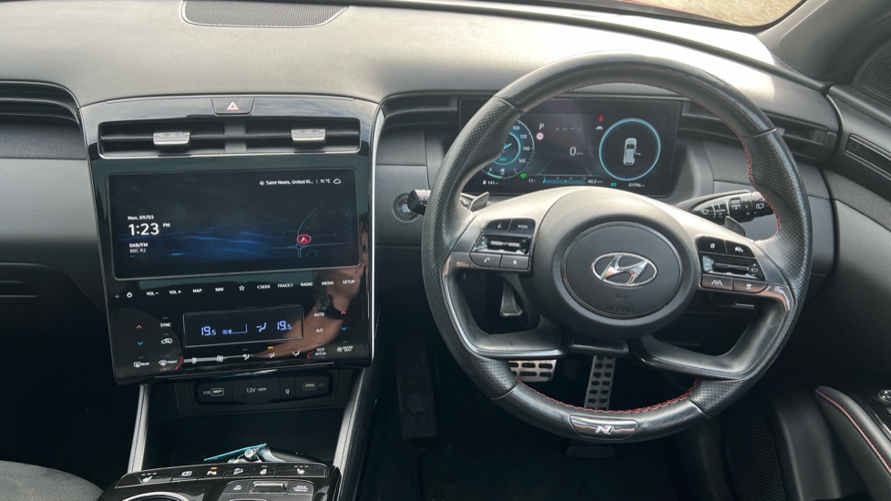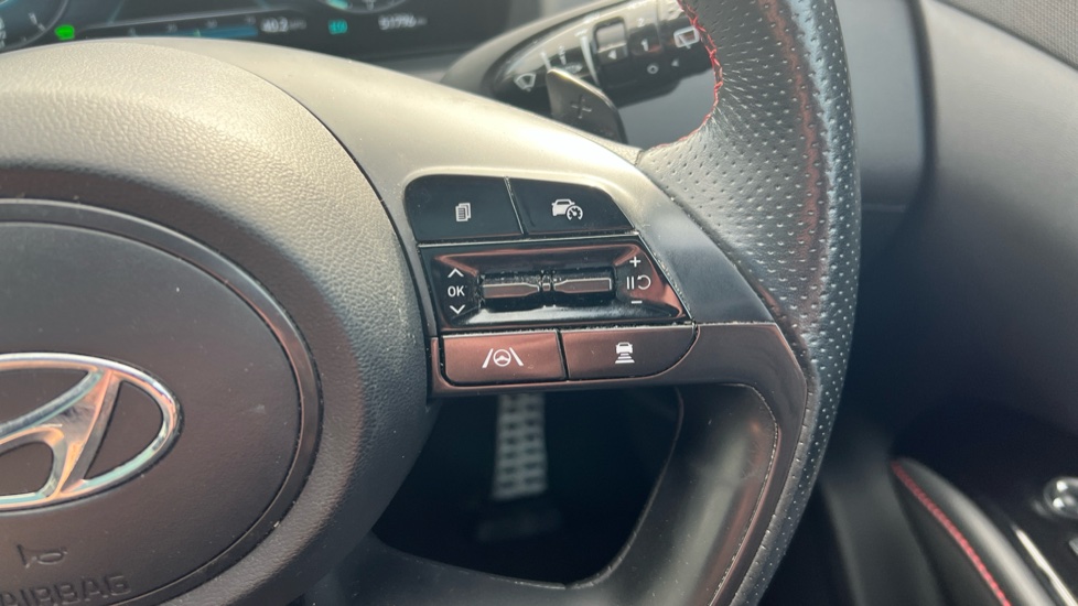 "3 spoke multifunction leather steering wheel with shift paddles",