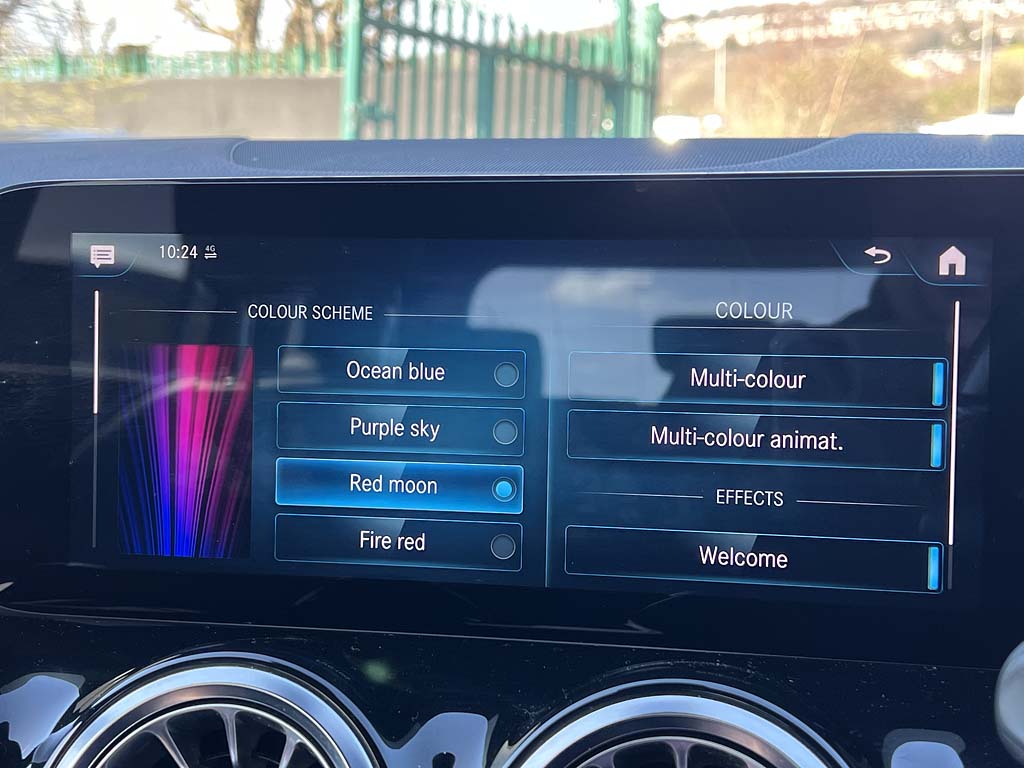 "Ambient lighting with mirror logo projection",