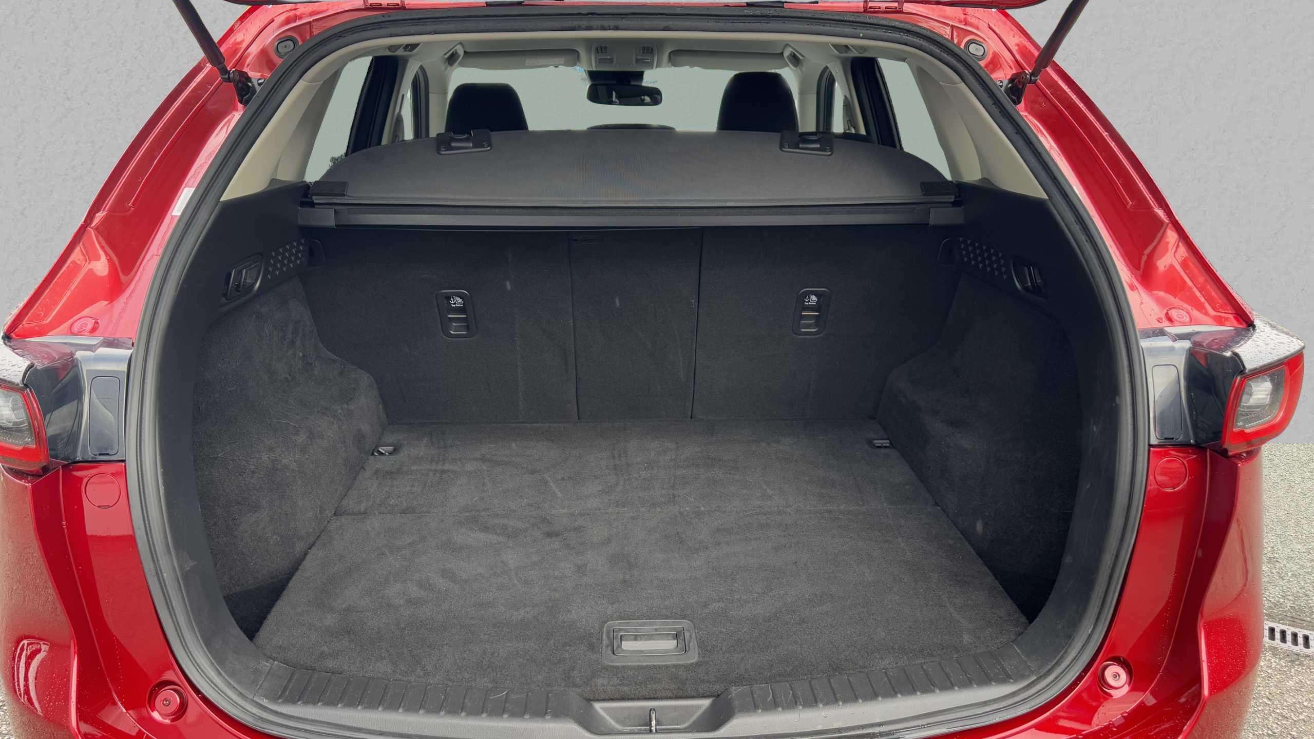 "Fold flat rear seat with durabale surface",