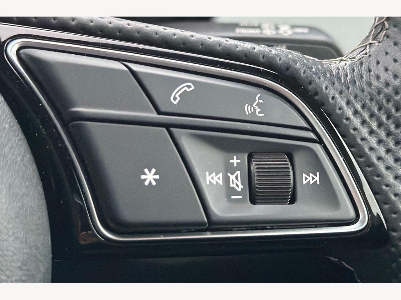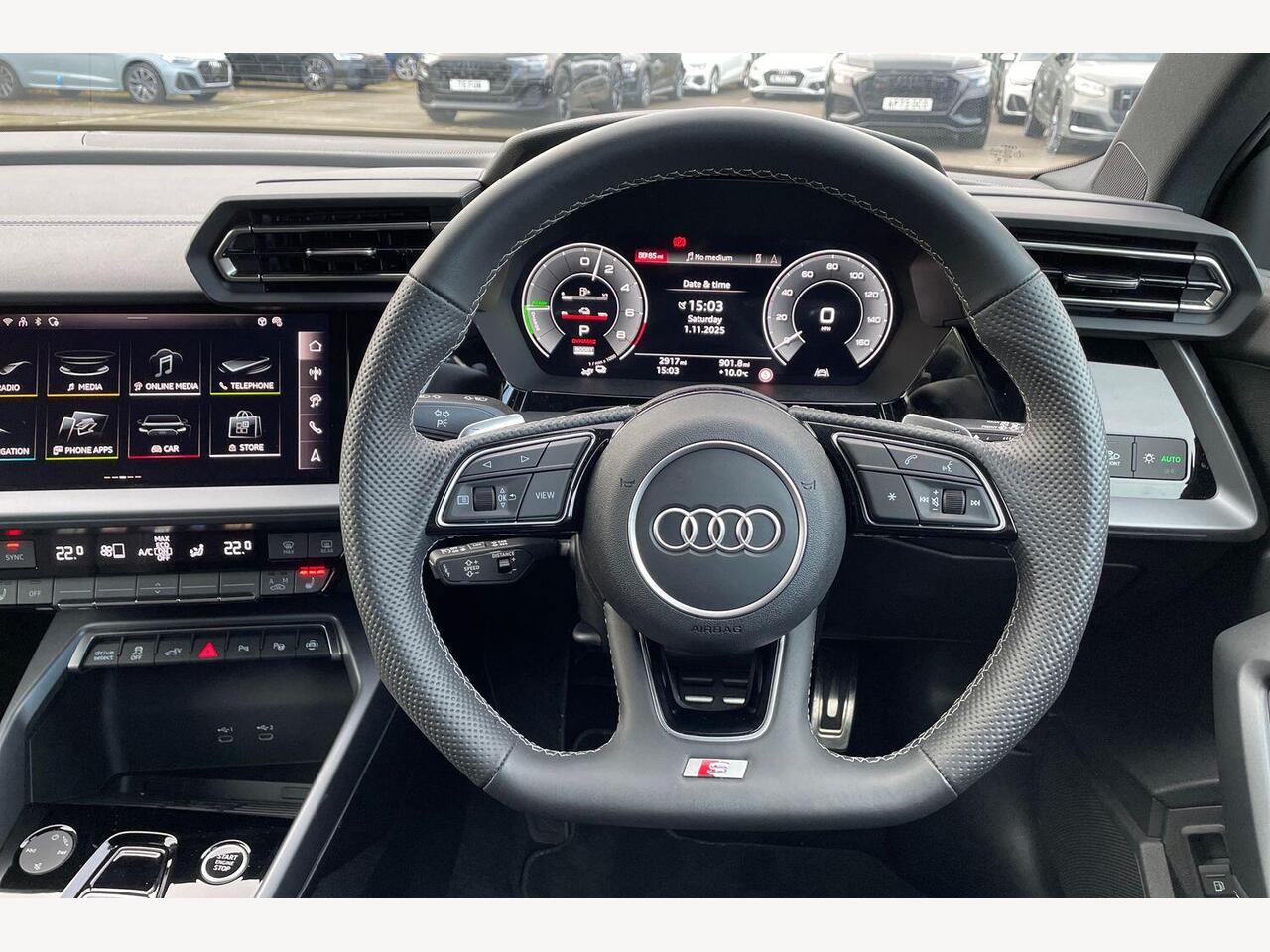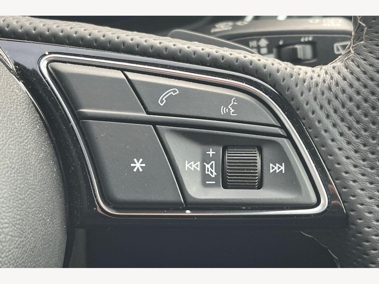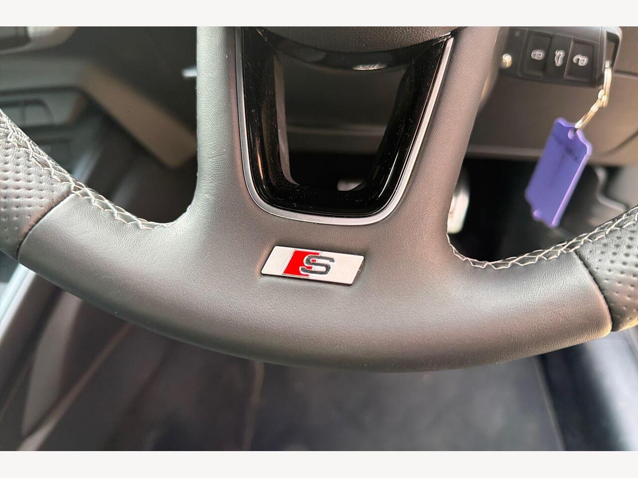 "3 spoke high multi-function sports leather steering wheel grips in perforated leather with S badging including paddle shift",