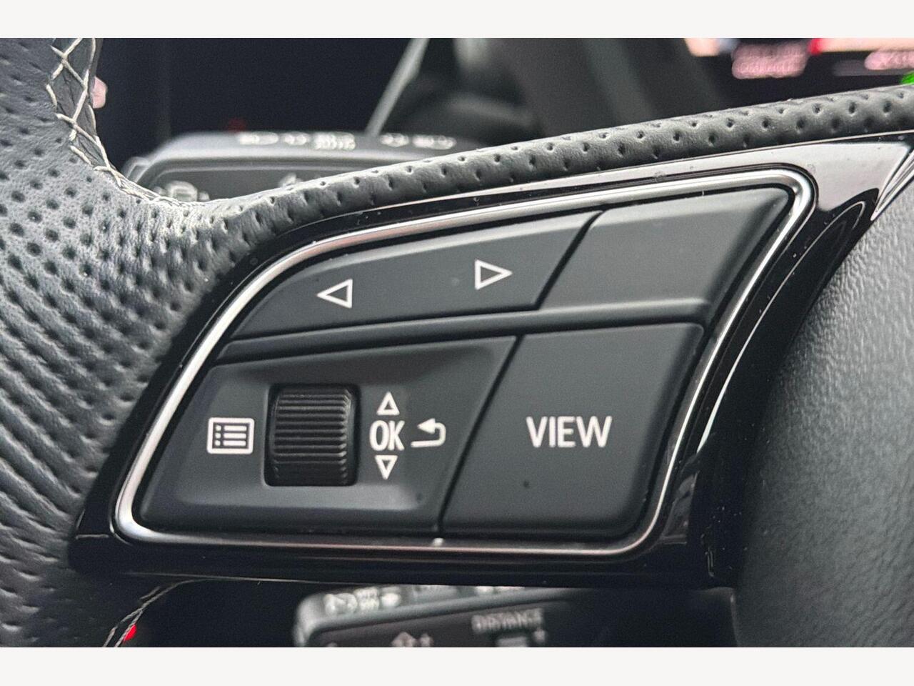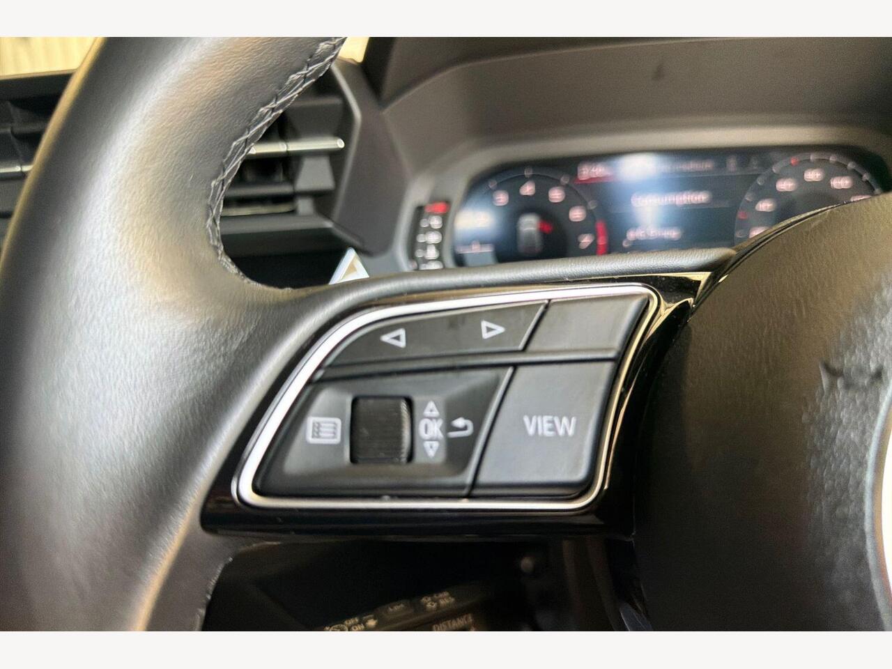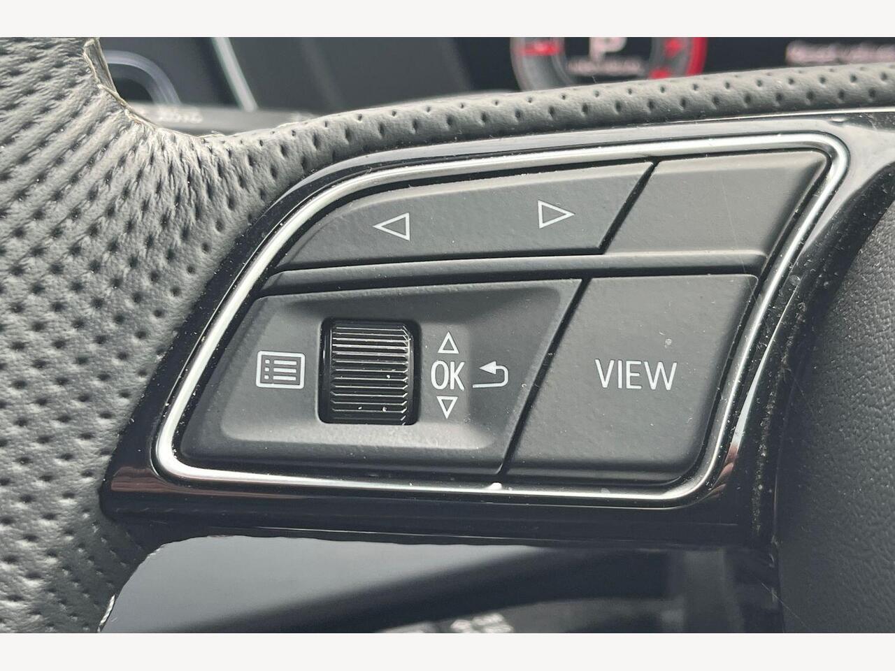 "3 spoke high multi-function sports leather steering wheel grips in perforated leather with S badging including paddle shift",