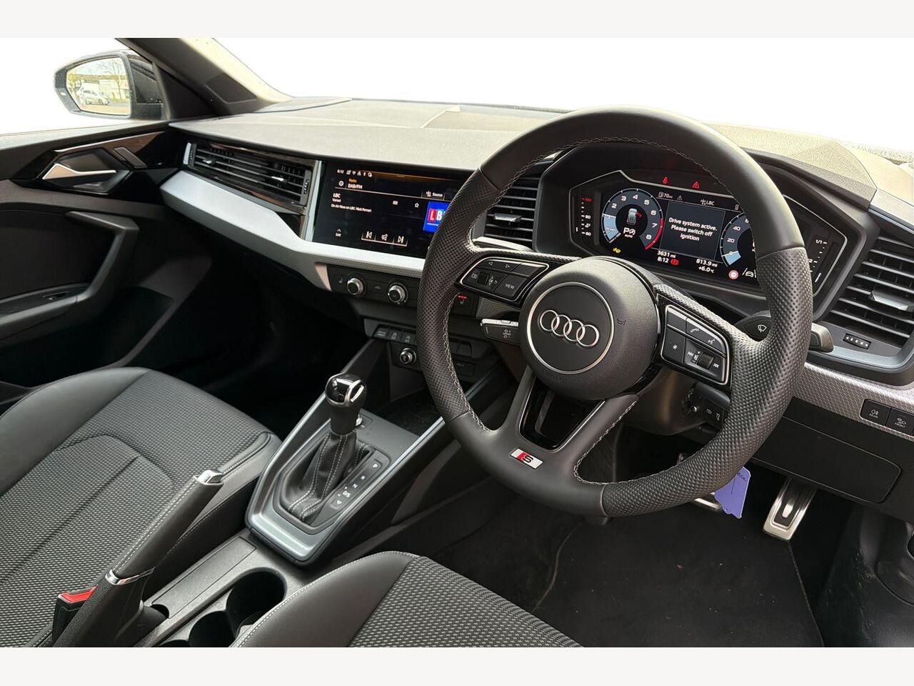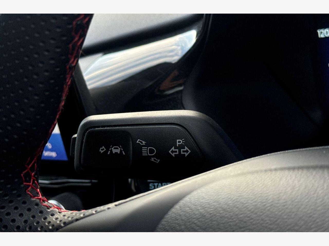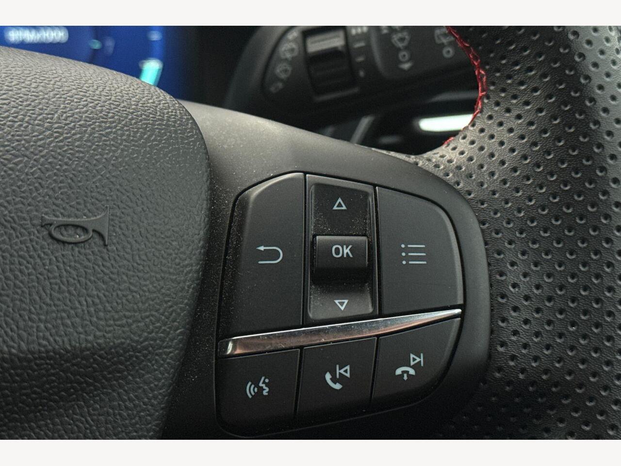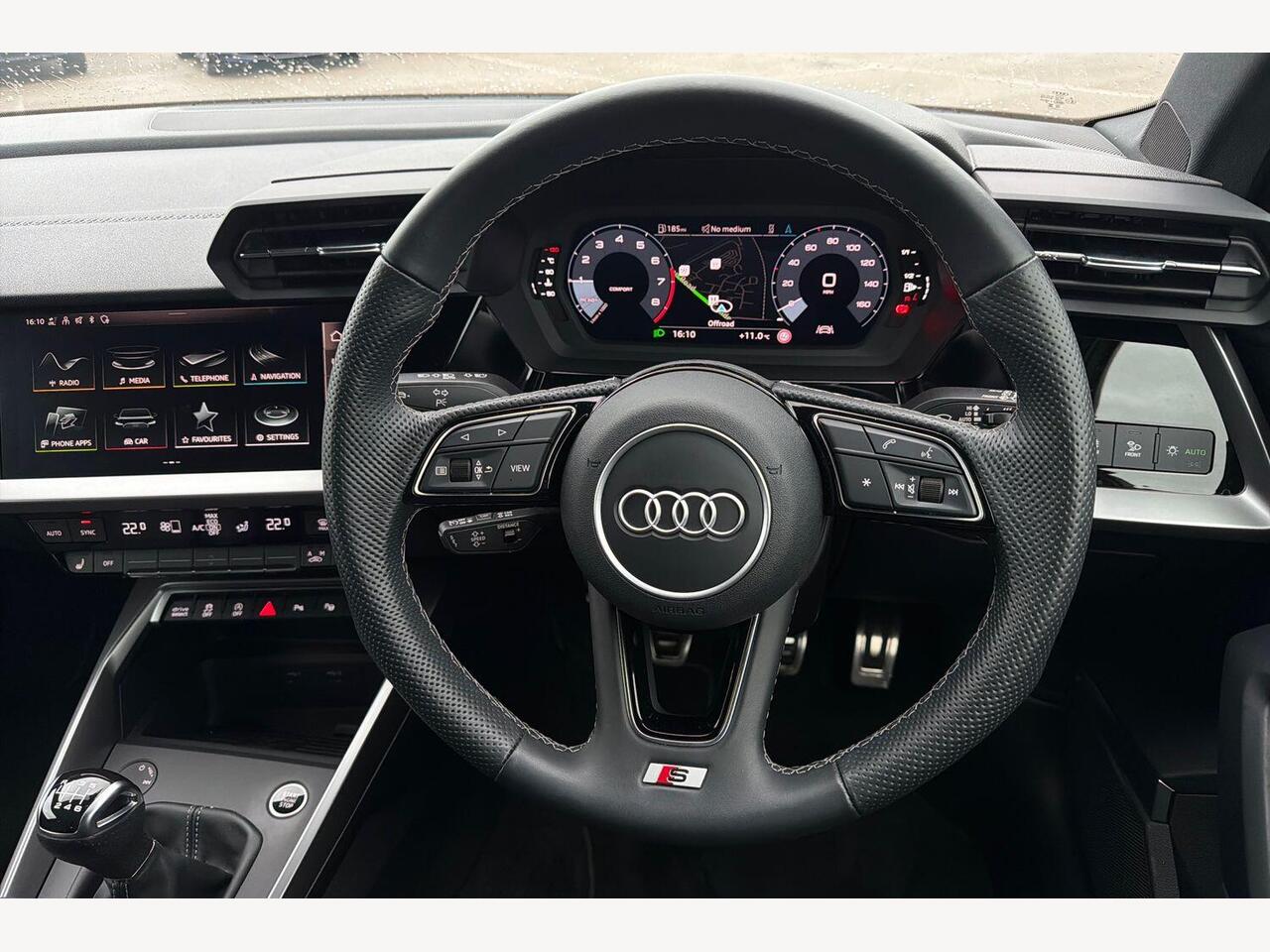 "3 spoke high multi-function sports leather steering wheel grips in perforated leather with S badging including paddle shift",