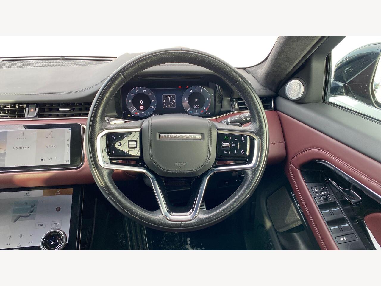 "features": "10\" deployable touchscreen with lower touchscreen, Adaptive cruise control, Android Auto, Apple car play, Blind spot assist, Bluetooth connectivity, Brake pad wear indicator warning light, Driver condition monitor, eCall emergency system, Electronic power assisted steering (EPAS), Front and rear parking aid, InControl remote, Land Rover InControl apps, Lane keep assist, Pivi pro connected includes upgraded infotainment, connected navigation pro, Nuance speech licence, Push button starter, Rear collision monitor, Rear traffic monitor, Traffic sign recognition with adaptive speed limiter, Voice control system, All terrain progress control, Configurable dynamics, Efficient Driveline, Terrain Response 2 Auto, Digital Audio Broadcast radio-DAB, Meridian sound system with 400W subwoofer and 12 speakers, Steering wheel mounted controls, Auto headlights, Autobiography badge, Automatic headlight levelling, ClearSight interior rear view mirror, Electric windows with one touch open/close and anti trap, Evoque and R-Dynamic badge, Flush deployable exterior door handles, Heated rear window with timer, Heated washer jets, Heated windscreen, Matrix LED headlights with signature DRL, intelligent high beam assist, signature Hi-Line tail lights and animated directional indicators, Power fold, auto-dimming, heated door mirrors with approach lights and auto dimming driver side, R-Dynamic branding illuminated metal tread plates in loadspace and row 1 with brand name script and non illuminated metal in row 2, Rain sensing windscreen wipers, Rear fog lights, Rear side wing doors, Rear wiper, Tailgate spoiler, Third brake light, 14 way electric heated/cooled front and rear seats with driver memory, 2 way man headrest, electric 4 way lumbar support, bolsters + headrest adj, 40:20:40 split folding rear seats with centre headrest and armrest, Ambient interior lighting, Bright metal pedals, Electrically adjustable steering column with memory function and easy entry/exit, Full extended leather upgrade, Heated steering wheel, Isofix system on outer rear seats, Overhead lighting console, Overhead stowage for sunglasses, Passive front head restraints, Perforated full leather steering wheel, Premium cabin lighting, Premium carpet mats, Rear air vents, Rear centre headrest, Rear head restraints, Satin chrome gearshift paddles, Single passenger seat, Sunvisors with illuminated vanity mirrors, Twin sliding front centre armrest, 3 rear 3 point seatbelts, Anti-lock braking system (ABS), Customer configurable autolock, DSC - Dynamic Stability Control, Electronic brake force distribution, Electronic parking brake, Electronic traction control, Emergency braking, Front and rear seatbelt reminder, Hill descent control, Hill launch assist, Low traction launch, Power operated child locks, Red brake calipers, Roll stability control, Six airbags - Driver and passenger airbags/driver knee airbag/front side airbag and curtain airbags, Torque vectoring brake, Tyre pressure monitoring system, Alarm, Immobiliser, Intrusion sensor, Keyless entry, Locking wheel nuts, ",