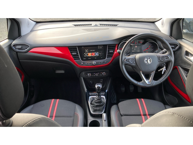 "Tri material cloth/leather effect upholstery"