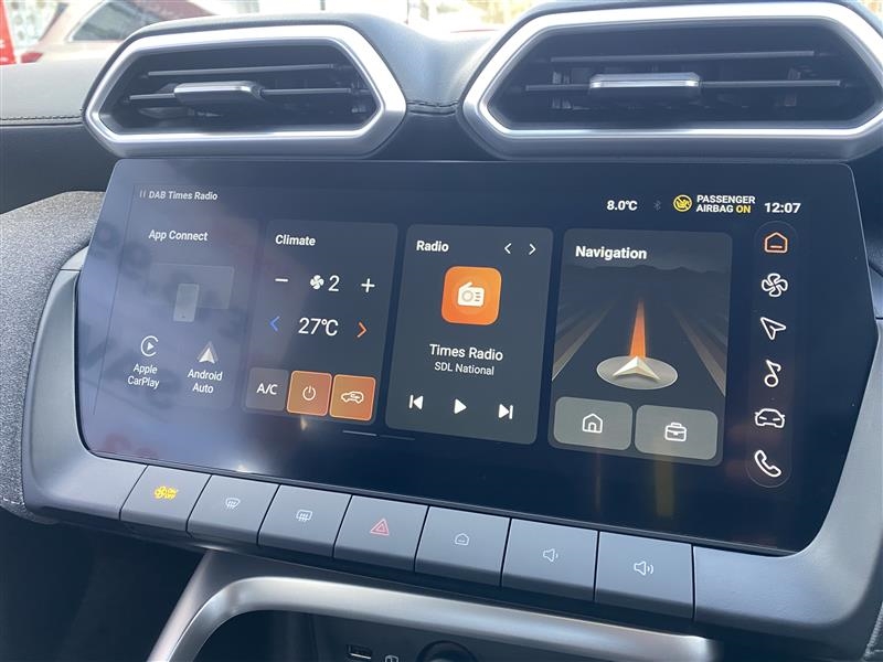 "Piano keys: Gloss black and chrome toggle switches to access main functions of the vehicle and touchscreen functions",