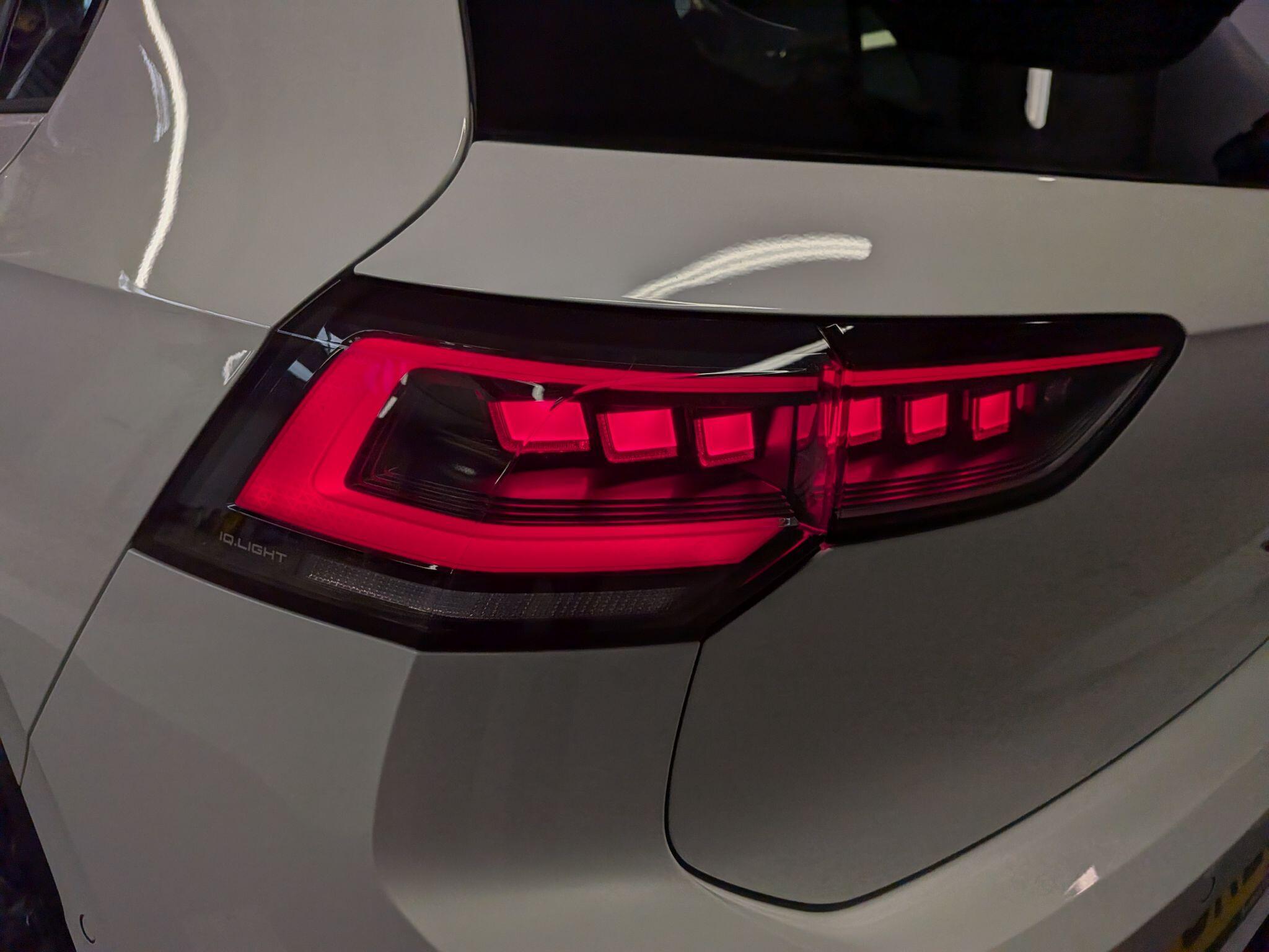 "Two part LED tailights in L-shape with components in smoked glass, brake light, LED turn indicator and rear fog light",