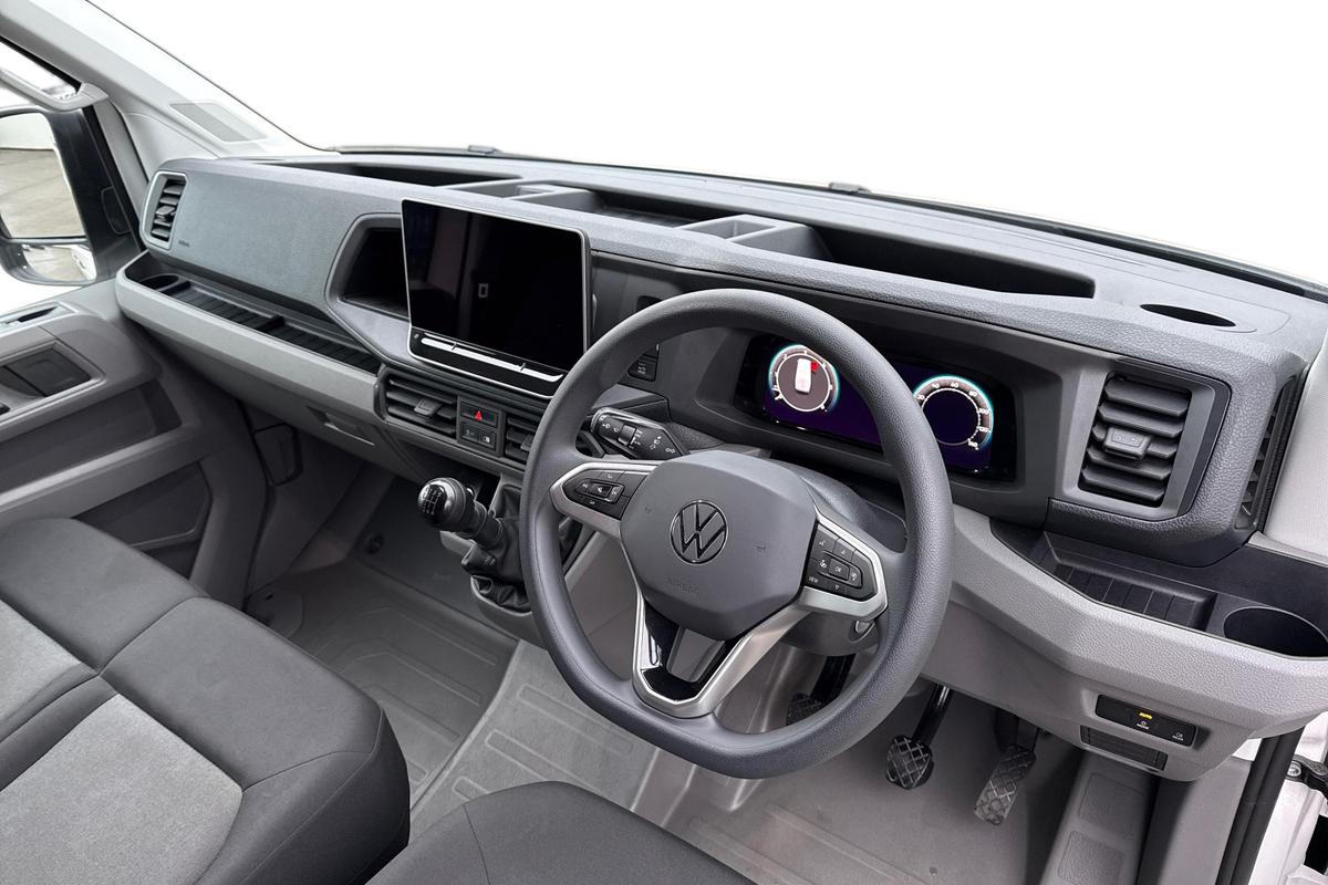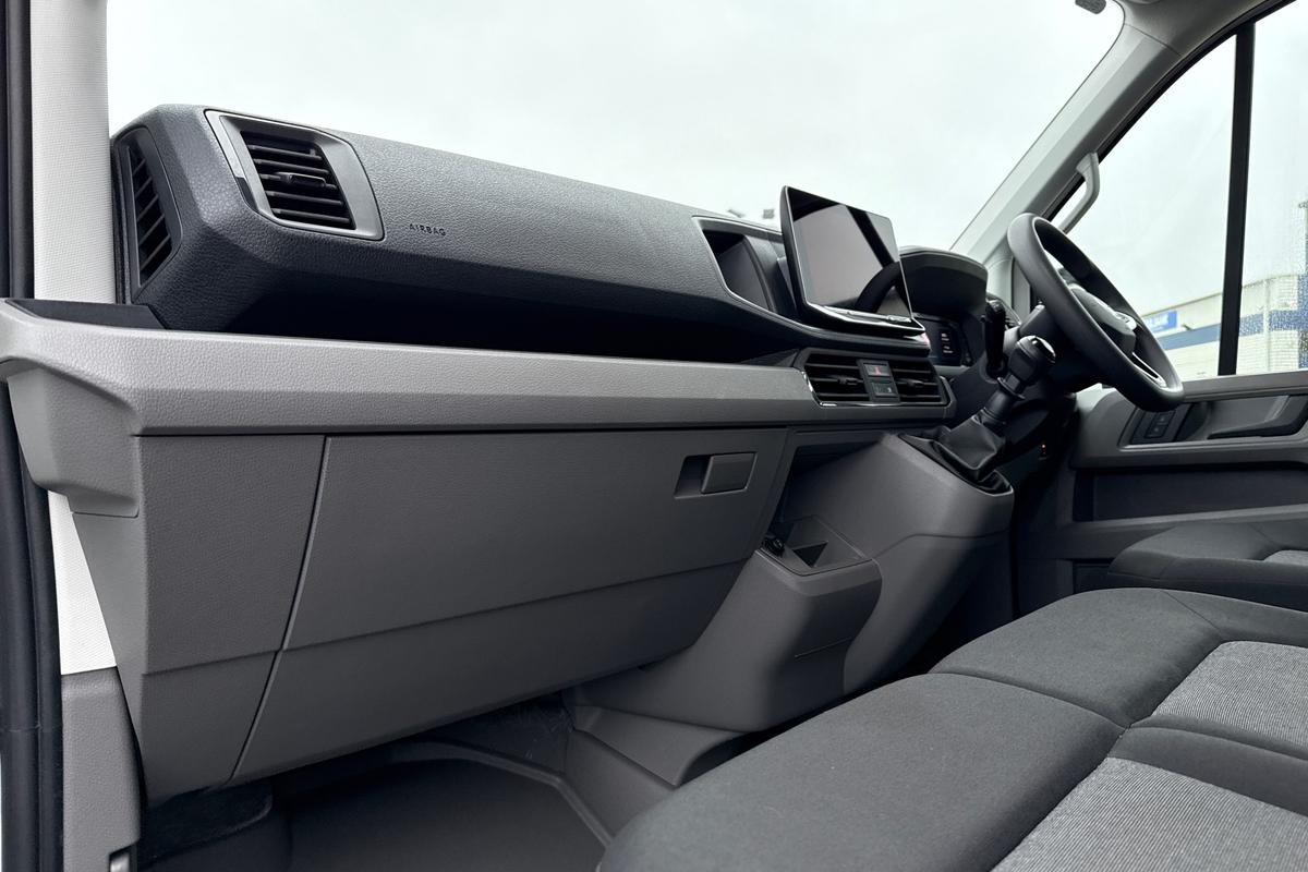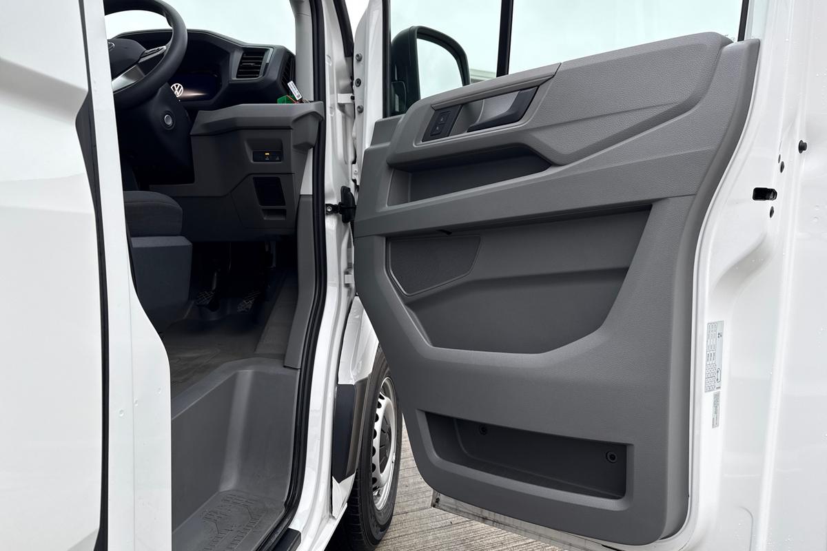 "features": "Advanced driver attention and drowsiness monitor, Blind spot monitor, Bluetooth, Digital clock, Digital cockpit with active Info display, Dynamic road sign display, E-call + We connect basic preparation, Forward collision warning with warning and braking reaction to vehicles, pedestrians and cyclists, Front assist including city emergency braking, Instrument cluster, Lane keeping assist, Lights on warning buzzer, Locking fuel cap, Rev counter, Roof console for interior lighting control, Service indicator, Speedometer, USB socket at top of windscreen, Wireless charging, 2 USB C ports in dashboard, DAB Radio, Auto low beam mode, Leaving home function and manual coming home function, Black unpainted plastic front bumper, Cab doors, Convex and wide angle mirror, Driver seatbelt warning light, Electric windows, Heat insulating glass, Indicators in front door mirrors, One towing eye in front, Rear badges, Special identification plate, Touch panel control for exterior lights, Unpainted radiator grille, Windscreen wiper auto control with light and rain sensor, Air recirculation system, Ashtray, Centre console storage tray, CFCU preparation, Charcoal filter, Document holder on centre console, Drinks holders, Electromechanical Servotronic steering, Electronically controlled heating system, Fully adjustable suspension type driver seat, Height adjustable head restraints, Height and reach adjustable steering wheel, Illuminated glove compartment with lockable lid, Interior light, including 2 reading lights, Interior light, switchable by door, Jack and tool kit, Preparation for interface for external use with terminal block, Storage compartments in doors and in step, right, Storage tray on dashboard, Two 12V outlets in the cab (in the dashboard), Without rear side trim panel passenger load compartment, Non-smokers pack - Crafter, 3 point inertia reel belt on all seats, Automatic hazard light with emergency braking, Crosswind assist, Driver and front passenger airbag with front passenger airbag deactivation, Height adjustable seatbelts for outer cab seats, 1 rigid key, Central locking system with Keyless Go without SAFELOCK entry - Keyless entry and start, Engine immobiliser, ABS, Automatic post collision braking system, EBA, EBD, EDL, Electronic parking brake - hill hold control, ESP, Front disc brakes, HBA, Hill start assist, Start and stop system with regenerative braking, TCS, Hub cap covers, ",
