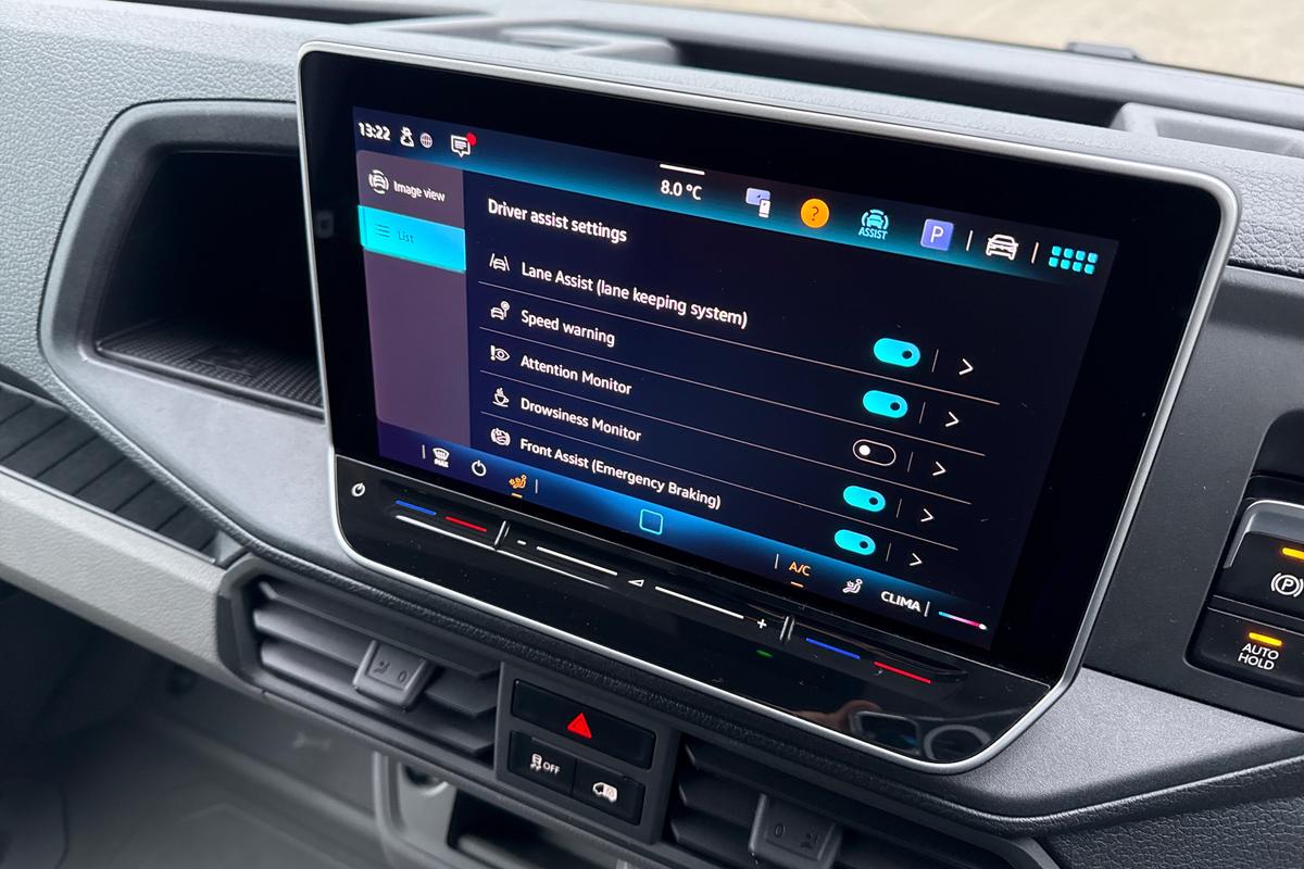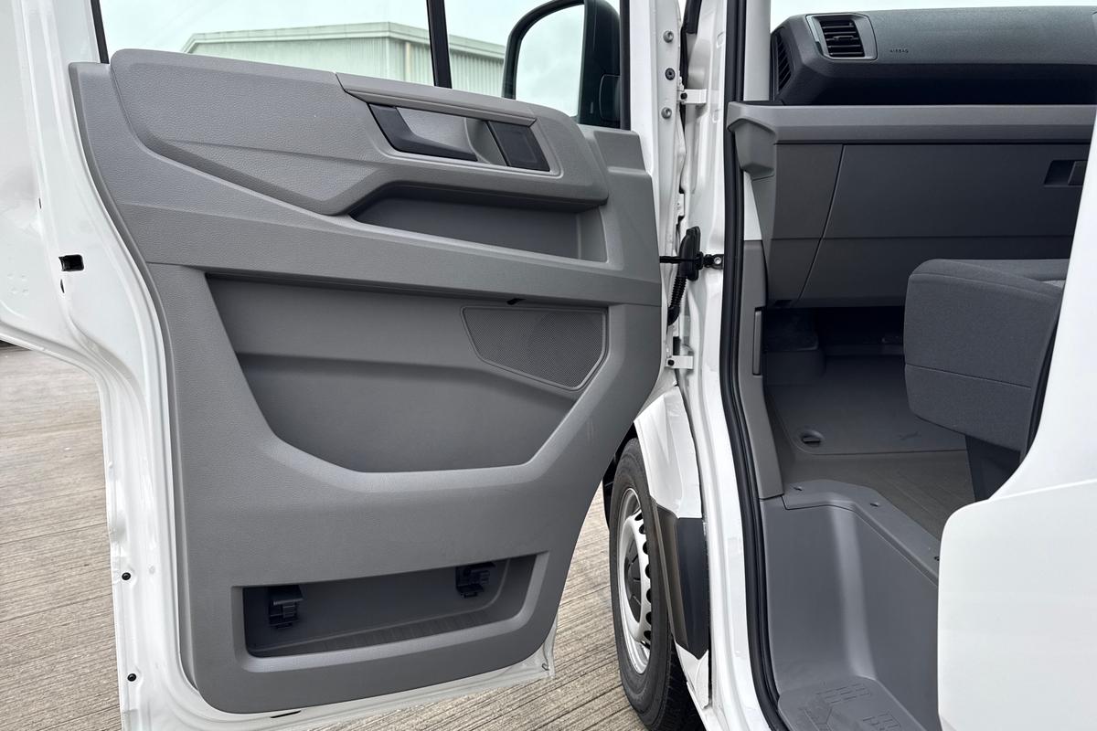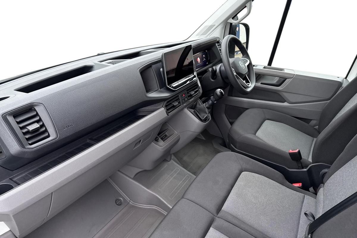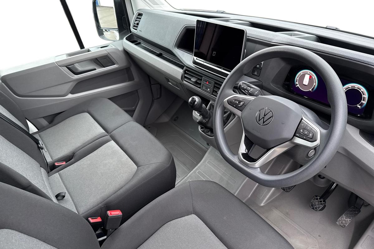 "features": "Advanced driver attention and drowsiness monitor, Blind spot monitor, Bluetooth, Digital clock, Digital cockpit with active Info display, Dynamic road sign display, E-call + We connect basic preparation, Forward collision warning with warning and braking reaction to vehicles, pedestrians and cyclists, Front assist including city emergency braking, Instrument cluster, Lane keeping assist, Lights on warning buzzer, Locking fuel cap, Rev counter, Roof console for interior lighting control, Service indicator, Speedometer, USB socket at top of windscreen, Wireless charging, 2 USB C ports in dashboard, DAB Radio, Auto low beam mode, Leaving home function and manual coming home function, Black unpainted plastic front bumper, Cab doors, Convex and wide angle mirror, Driver seatbelt warning light, Electric windows, Heat insulating glass, Indicators in front door mirrors, One towing eye in front, Rear badges, Special identification plate, Touch panel control for exterior lights, Unpainted radiator grille, Windscreen wiper auto control with light and rain sensor, Air recirculation system, Ashtray, Centre console storage tray, CFCU preparation, Charcoal filter, Document holder on centre console, Drinks holders, Electromechanical Servotronic steering, Electronically controlled heating system, Fully adjustable suspension type driver seat, Height adjustable head restraints, Height and reach adjustable steering wheel, Illuminated glove compartment with lockable lid, Interior light, including 2 reading lights, Interior light, switchable by door, Jack and tool kit, Preparation for interface for external use with terminal block, Storage compartments in doors and in step, right, Storage tray on dashboard, Two 12V outlets in the cab (in the dashboard), Without rear side trim panel passenger load compartment, Non-smokers pack - Crafter, 3 point inertia reel belt on all seats, Automatic hazard light with emergency braking, Crosswind assist, Driver and front passenger airbag with front passenger airbag deactivation, Height adjustable seatbelts for outer cab seats, 1 rigid key, Central locking system with Keyless Go without SAFELOCK entry - Keyless entry and start, Engine immobiliser, ABS, Automatic post collision braking system, EBA, EBD, EDL, Electronic parking brake - hill hold control, ESP, Front disc brakes, HBA, Hill start assist, Start and stop system with regenerative braking, TCS, Hub cap covers, ",