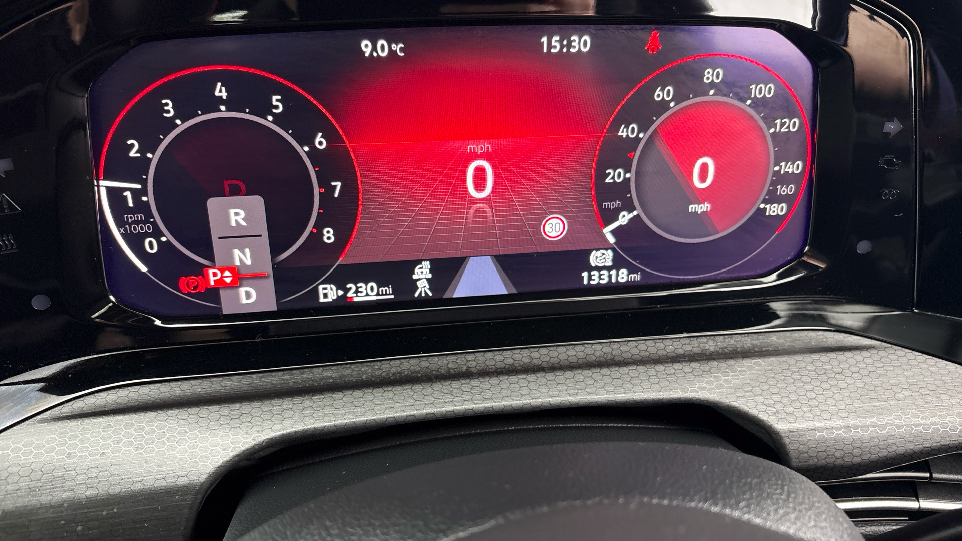 "10.25\" Digital instrument cluster display classis style instrument dials + speed,odometer,time,outside temperature,telephone menu + fuel level warning",