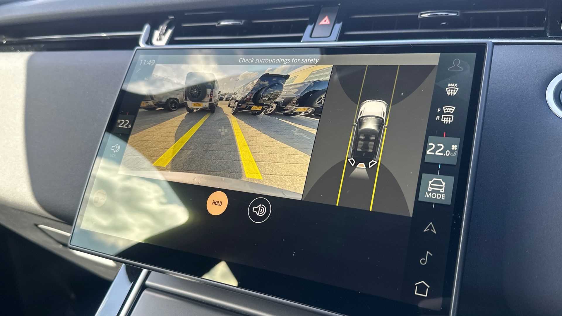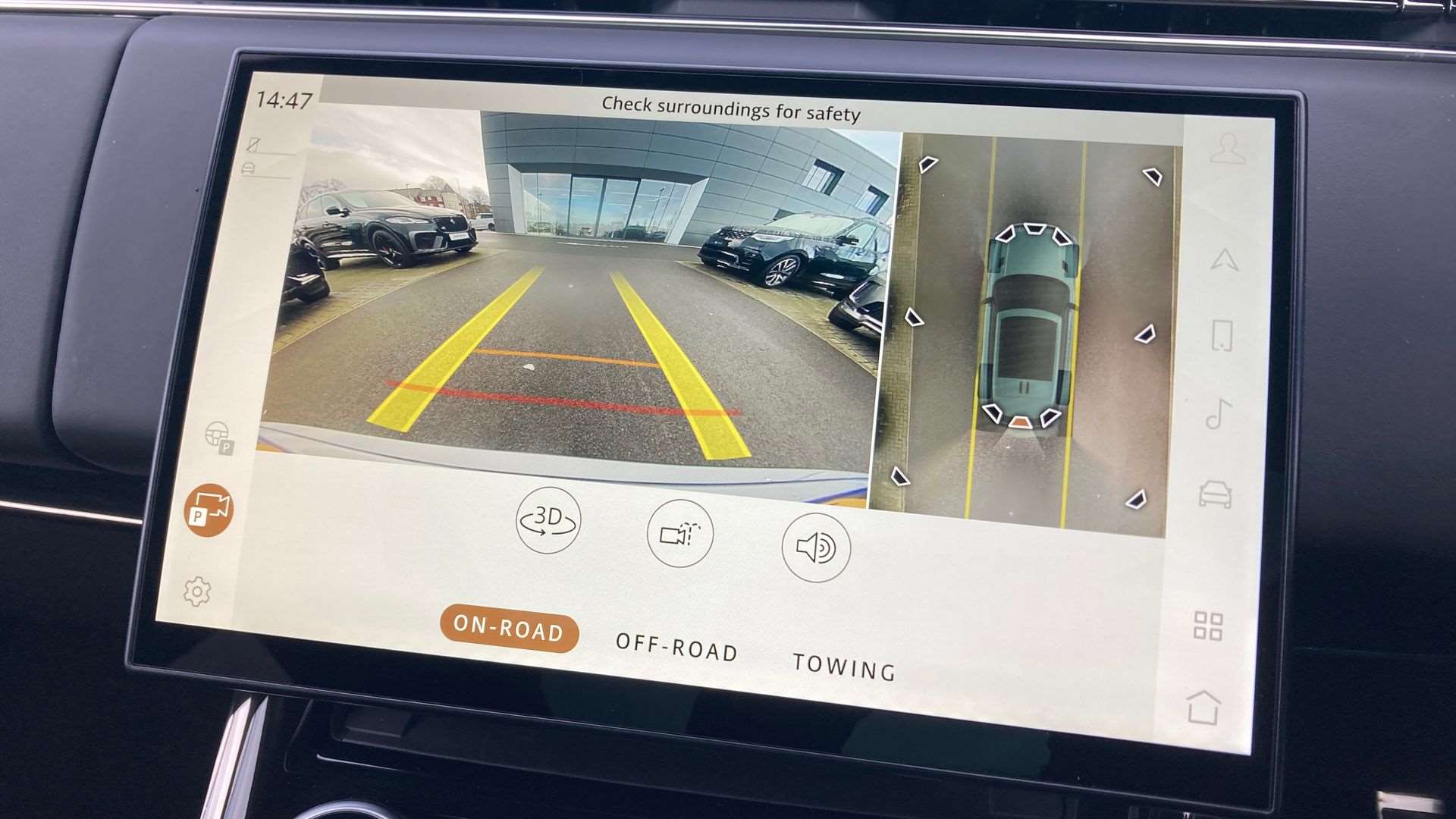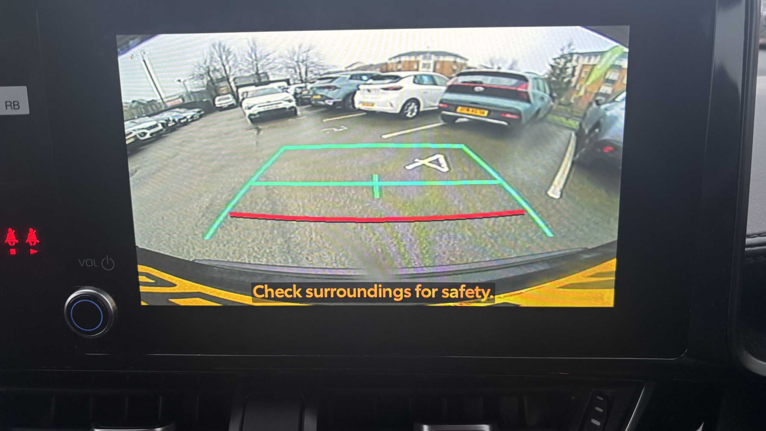 "Reversing camera system integrated into centre fascia screen",