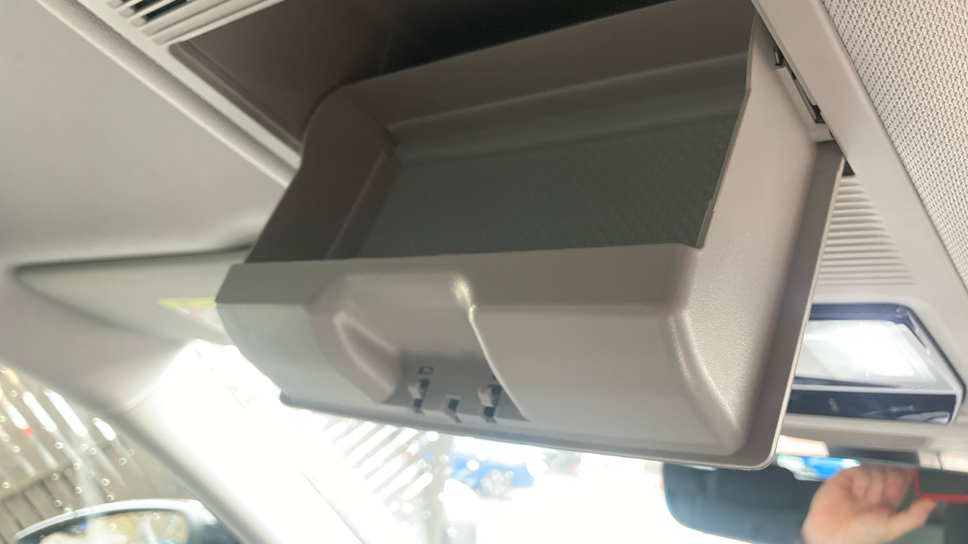 "USB C port by rear view mirror for charging only (15W)",