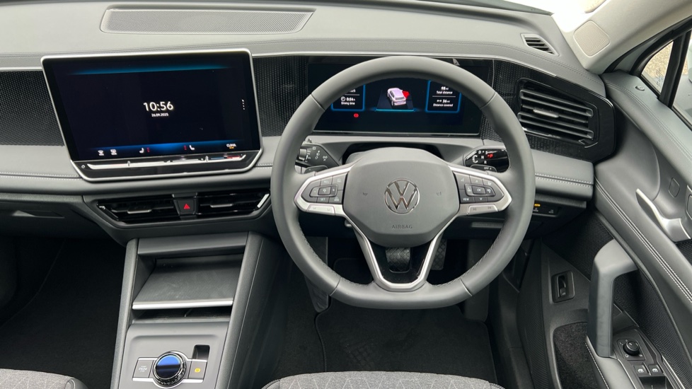 "Leather multifunction steering wheel with gear knob",