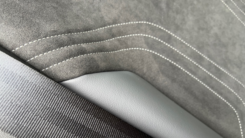 "Adamite green contrast stitching to front and rear armrest, front centre console, dashboard facia",