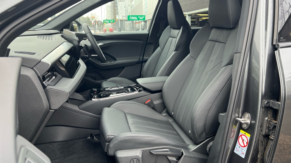 "features": "Adaptive cruise assist plus with steering intervention, Advanced driver attention and fatigue montior, Audi application store, Audi assistant, Audi connect emergency call and service, Audi connect navigation and infotainment, Audi connect remote and controls, Audi digital key (Sharing with additional users and other devices is not possible), Audi drive select, Audi parking system plus includes 360 degree display with front and rear sensors, Audi virtual cockpit plus with 11.9\" OLED colour display, Camera traffic sign recognition, Comfort key with SAFELOCK, Intersection assist, Lane change assistant with exit warning system, rear cross traffic alert and rear turn assist, Lane departure warning with emergency assist, MMI 10.9\" front passenger touch display, MMI navigation plus with high resolution 14.5\" OLED touchscreen colour display, Park assist plus, Progressive steering with servotronic, Smartphone interface, Swerve assist and turn assist, Top view camera, Traffic sign based speed limiter, 11KW onboard charger, Compact e-tron charging system, Household plug type G (GB), Industrial connector CEE 32A, 230V, long and straight for the e-tron charging system, Mode 3 charging cable for public charging, 22 KW (AC), On-board charger up to 270 KW (DC), Plug n charge, Quattro all wheel drive, Second charging port (AC), Sport suspension, Wall mounted bracket for compact e-tron charging system, 2 front and 2 rear USB-C ports, Audi sound system impressive sound with 10 loudspeakers including centre speaker and subwoofer, 6-channel amplifier with a total output of 180 watts, DAB Digital radio, Smartphone compartment with wireless charging, Acoustic windscreen, Active digital light signature with eight combination of active daytime running light, Auto dimming rear view mirror, Black roof rails, Black window surrounds, Door mirror memory, Electric adjustable/heated/folding door mirrors with auto dimming, Electric charging cover, Front door sill trims with aluminium inlays, illuminated, Headlight cleaning system, High beam assist, LED 3rd brake light, LED rear lights pro incl. dynamic rear indicators and illuminated light strip with animated coming and leaving home function, Matrix LED headlights, Privacy glass, Rear side wing doors, Rear wiper, Side and rear windows in heat insulating glass, Towbar preparation, White rhombus logo projection light in exterior mirrors, 3 bench rear seats in 2nd row, 3 rear head restraints, 3 spoke multifunction heated leather steering wheel with touch control, flat on top and bottom, with 'S' badge,contrast stitch, 3 zone automatic climate control including comfort remote pre-conditioning, 40:20:40 split folding rear seat bench , centre armrest and cupholders, 64L frunk storage space under the bonnet, Black carpets, Black cloth headlining, Comfort front centre armrest, Driver seat memory function, Electrically adjustable front seats, Front sport seats plus with 'S' embossed logo, Front/rear floor mats, Heat pump, Heated front and outer rear seats, i-Size child seat mounting on the front passenger side and outer rear seats, i-Size and top tether on the outer rear seats, Integrated front head restraints, Luggage compartment lid, electrically opening and closing, Manually adjustable steering column, Pneumatically adjustable lumbar support with massage function, Single front passenger seat, Stainless steel pedals and footrest, Steering wheel grips in perforated leather and shift paddles, Ambient lighting pack - Q6, Black styling package plus - Q6, 3 point seatbelts on all seats, Acoustic vehicle alerting system, Airbags in front, front passenger airbag is automatically activated and deactivated, E-tron sport sound, Electric child locks, Front and rear side airbags with head airbag system, Front emergency brake assist, Front interaction airbag, Hill hold assist, Proactive passenger protection system for front, sides and rear, Rear seat occupant reminder for child presence detection, Red brake calipers, Seat belt monitoring, Tyre pressure loss indicator, Warning triangle and first aid kit, Anti-theft wheel bolts, Thatcham approved category 1 anti theft alarm, Accent surfaces and control buttons in gloss black, Black dashboard with contrast stitching, Softwrap in Dinamica with contrast stitching, Upper and lower interior elements in dinamica microfiber, Tyre repair kit, ",