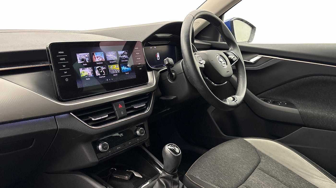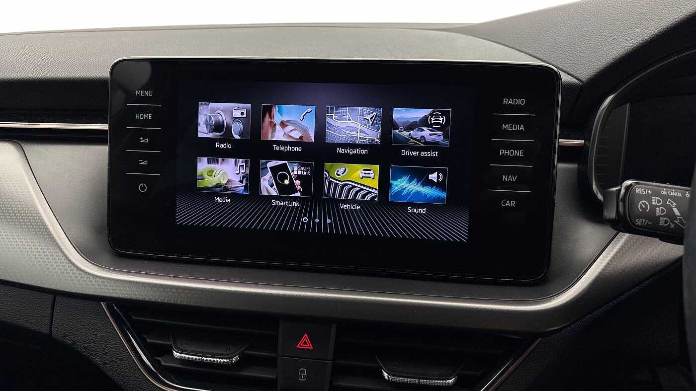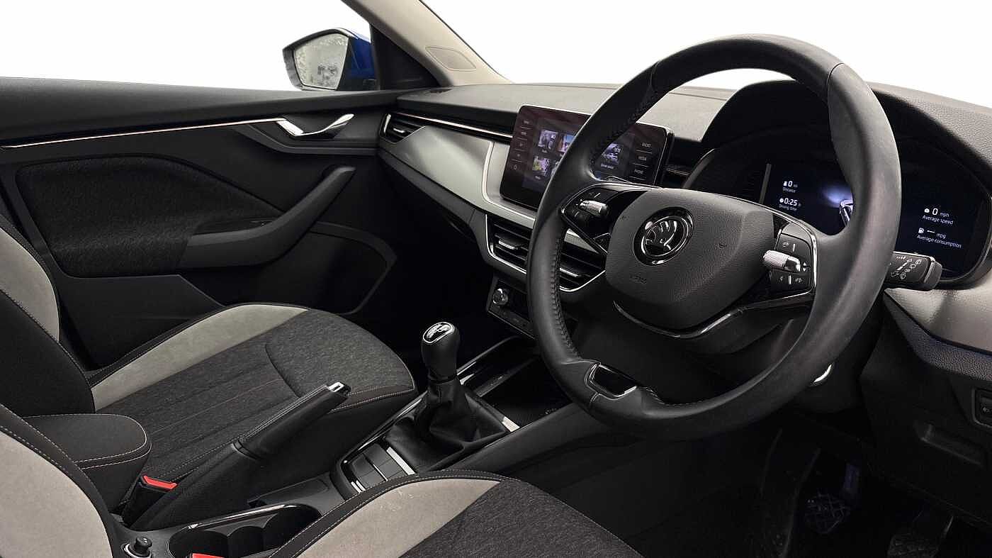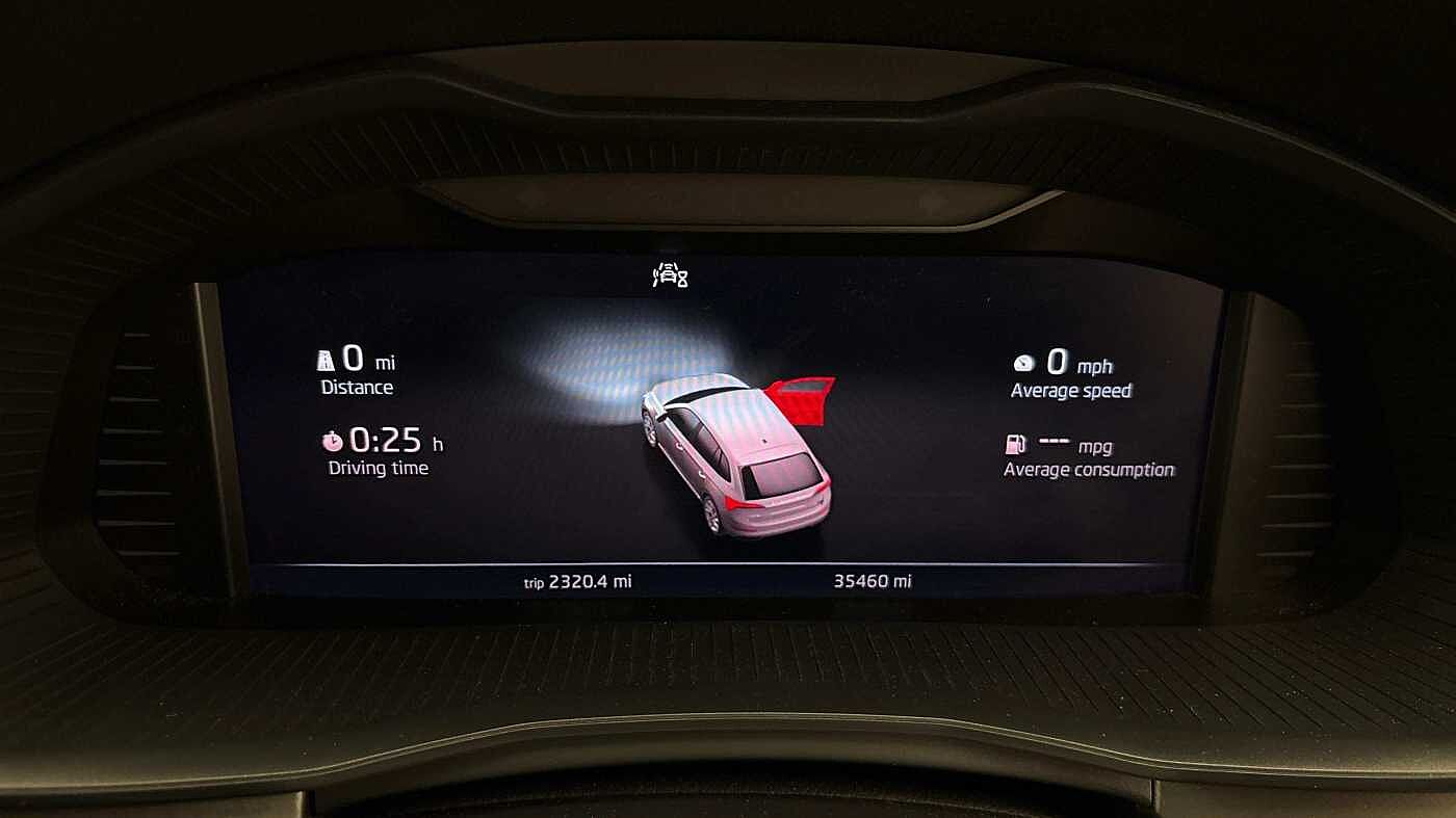 "features": "Bluetooth connection, Driver alert system - DAS, Electromechanical power steering, Exterior temperature gauge, Lane assist including road edge detection, Multifunction trip computer in black and white, Service interval indicator, Speed limiter, 2x USB-C in the front (for data transmission and charging), 4 speakers in front, Auxiliary socket for external MP3 player, DAB digital radio reception, Radio Swing with 6.5\" colour display, Basic LED Headlights, Basic rear lights, Body colour door mirrors, Body coloured bumpers, Dimming rear view mirror with black frame, Door mirror integrated indicators, Electrically adjustable and heated door mirrors, Electrically adjustable front windows with function auto up/down, Front fog lights, Front window wiper intermittent control, Headlight range control - Automatic, Ice scraper in fuel cap, LED daytime running lights with coming and leaving home feature, Mechanical adjustable rear windows, Rain sensor, Rear LED fog light, Rear side wing doors, Rear window wiper with washing nozzles, Roof mounted spoiler, SKODA tailgate lettering in chrome, Third brake light, 2 reading lights in front and 2 reading lights in rear, 2 spoke leather multifunction steering wheel, 3 rear headrests, Backrest split and folding, Central console with fixed cup holder and storage box, Chrome handbrake release button, Fabric upholstery, Gearshift knob/handle in leather, Grain satin black interior door handles, Hand brake lever handle in leather, Height adjustable front headrests, Height adjustable front seats, Height adjustable steering wheel, ISOFIX and TopTether anchorage points to the outer rear seats, ISOFIX and TopTether on the front passenger seat, Luggage compartment lighting, Manual air conditioning, Manually adjustable lumbar support in front seats, Pollen filter, Rear seat bench unsplit, Single front passenger seat, Storm grey headlining, Sun visors with mirror and airbag label on passenger side, Ticket holder, 3-point height adjustable front seats belts with pretensioner and force limiter, Automatic warning lights in case of crash, Driver and passengers airbag with switch off function, e-Call+, ESC including ABS, MSR, ASR, EDS, HBA and XDS, Front and rear seat belt warning, FRONT ASSIST (AEB City and AEB Inter Urban), Front side airbags, Head airbags, One tone horn, Pedestrian protection, Three rear 3-points safety seat belts with pretensioner and force limiter including stop function for outer rear seat belts, Tyre pressure monitoring system, Anti-theft alarm system including immobiliser, interior monitoring, backup horn, and towing protection, Central locking with radio remote control, interior controls, SAFE function and 2 foldable keys, Black painted air vents, Glossy black decorative trim, Grain satin black central console cover, Grain satin black lower decorative trim, Satin black door and side trim panel in front, Anti-theft wheel bolts protection, Super-low rolling resistance tyres, ",