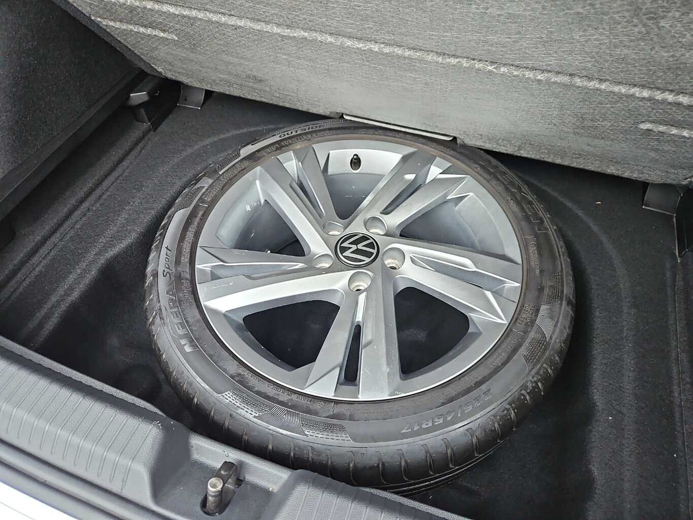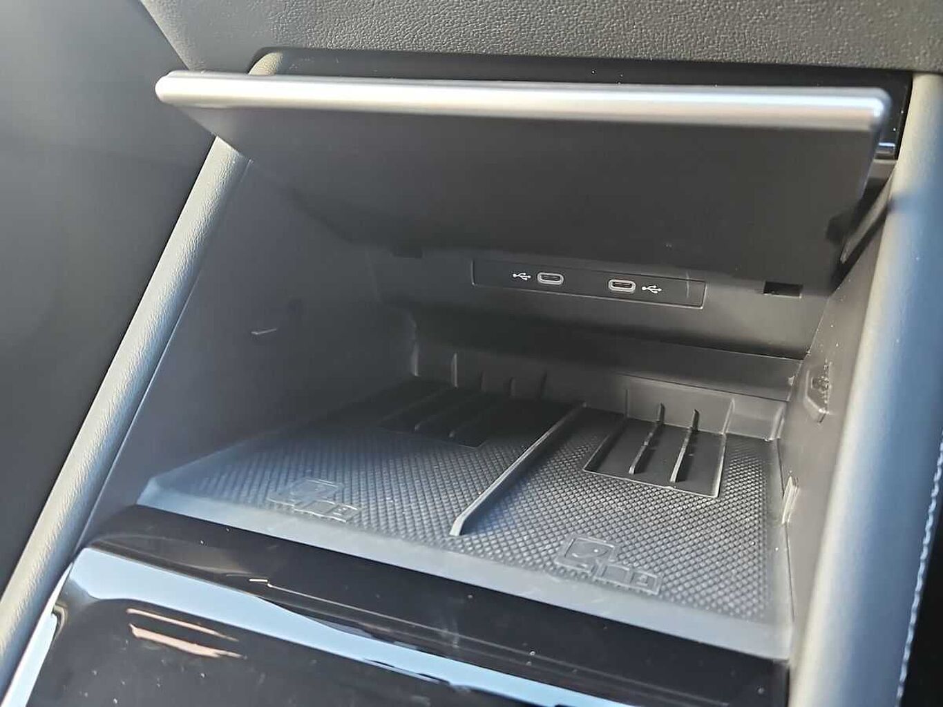 "Storage compartment for charging cables under the luggage compartment mat",