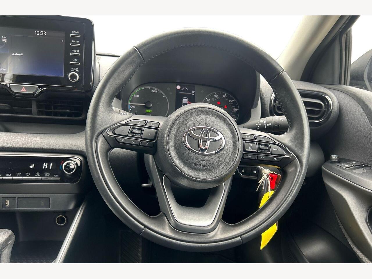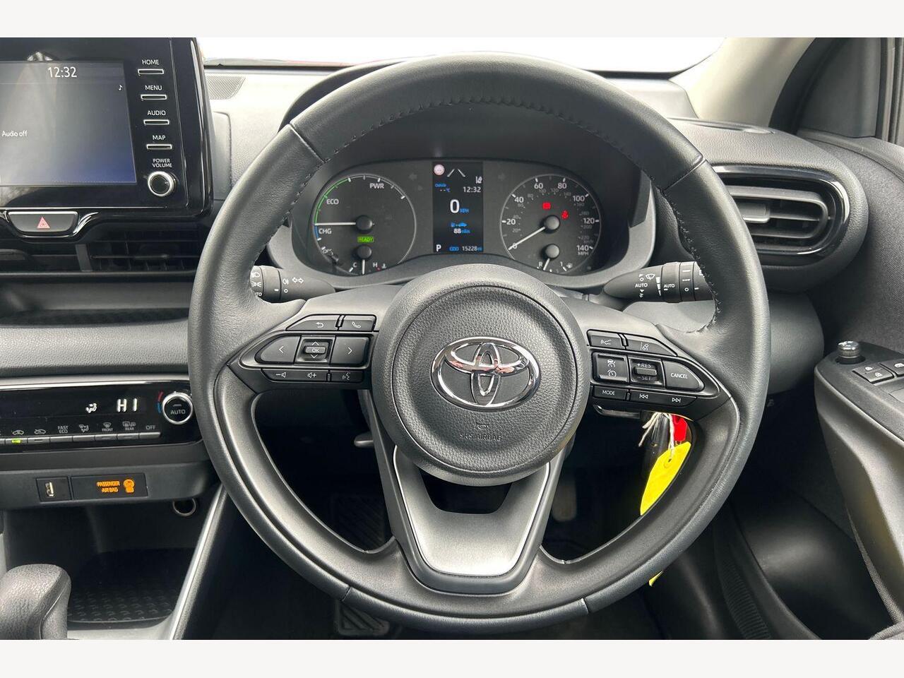 "features": "7\" Digital Combimeter, Adaptive cruise control, Adjustable speed limit with speed warning, Bluetooth connectivity, Colour binocular inspired displays with digital speedometer, E-call, Electric power steering, Hybrid energy display, Multi information display switches on steering wheel, Reversing camera, Smartphone integration with Apple CarPlay and Android auto, Tailgate, Voice recognition, Vehicle Stability Control (VSC), 4 speakers, 9\" Multimedia touch display, Toyota Touch 3 system with DAB radio, USB connection, Acoustic windscreen glass, Auto windscreen wipers, Automatic headlights, Body coloured door mirrors, Electric adjustable heated door mirrors, Follow me home headlights, Front auto power windows with anti jam protection, Full LED rear lights, LED daytime running lights, LED front fog lights, LED front light guide, LED Headlights, LED High mounted stop lamp, LED Indicators, LED rear light guide, Manual headlight levelling, Painted chequered front grille, Rain sensor, Rear auto power windows with anti jam protection, Rear privacy glass, Rear side wing doors, Rear spoiler, Rear wiper, Shark fin antenna, Turning signal integrated indicators in door mirrors, Variable front intermittent wipers, 3 adjustable rear headrests, 3 seat bench in 2nd row, 3 spoke leather steering wheel, 60/40 split folding rear seat, Active headrests, Adjustable boot height, Auto air conditioning, Coat hooks in rear grab handles, Cup holders (2 front & door), Data Communication Module (DCM) connected services, Fabric upholstery, Front armrest, Glovebox, Grey roof lining, Height adjustable driver's seat, Isofix seat fixing, Leather gearshift, Pollen filter, Shopping bag hooks, Single front passenger seat, Tilt/telescopic steering column, 3 point seatbelts on all rear seats, ABS+EBD+Brake assist, Electronic parking brake, Emergency brake light system (EBS), Front passenger airbag on/off switch, Front seatbelt reminder, Hill start assist control (HAC), Rear child proof door locks, Rear seat belt reminder, Supplemental Restraint System (SRS) 8 airbags: Driver & passenger's airbags, dual side curtain airbags, side impact airbags, front centre airbag, Toyota Safety Sense 3 with over the air updates, Tyre pressure warning system, 2x Master key, Alarm/immobiliser, Remote powered central double locking doors, Soft touch instrument panel, Space saver spare wheel, ",