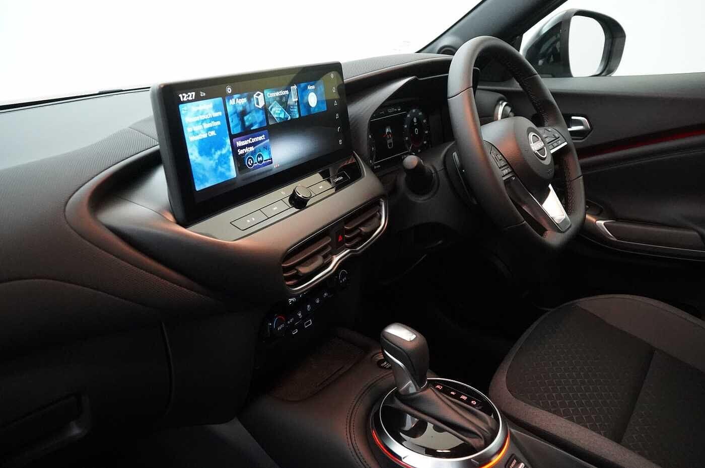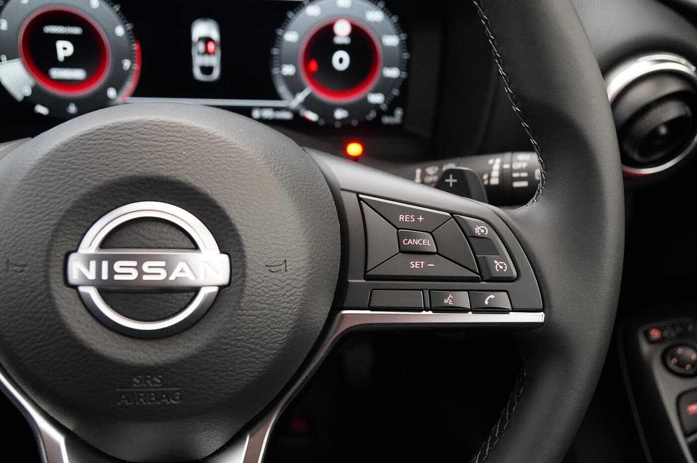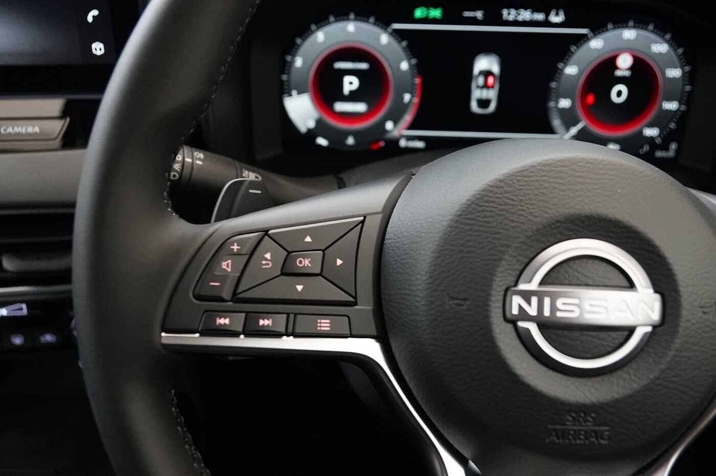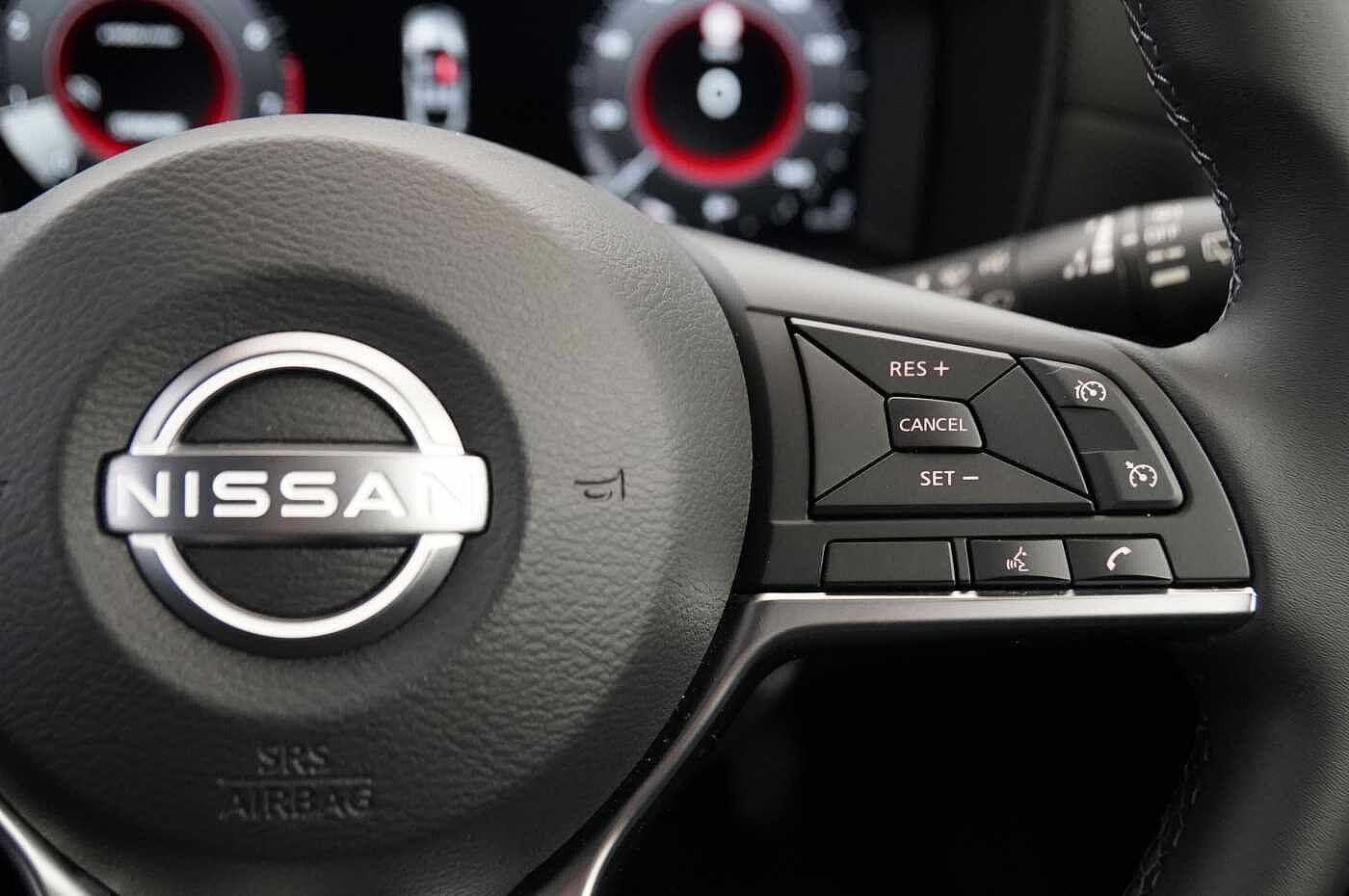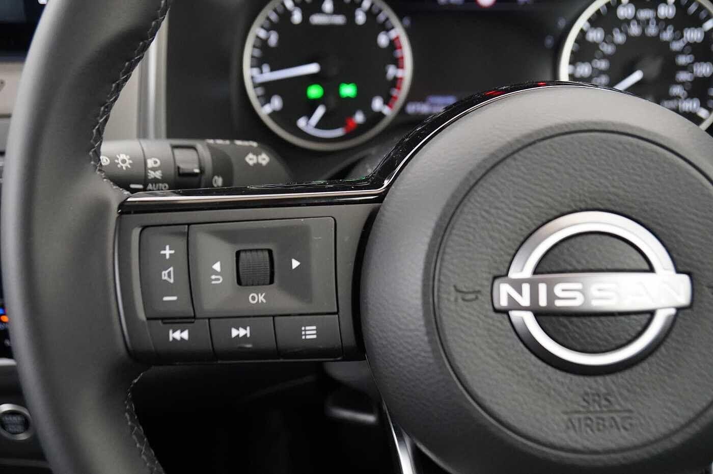 "features": "12.3\" full colour TFT screen combimeter, Drive modes select (Eco, normal and sport), Emergency and breakdown call, Front parking sensor, Idle start/stop system, Intelligent driver alert system, Intelligent lane intervention, Lane departure warning system, Nissan connect 12.3\" touch screen entertainment system, Nissan connect nav with TomTom traffic, Nissan connect services, Outside temperature sensor, Power Steering, Rear parking sensor, Stop/start button, Traffic sign recognition, Trip computer, Voice recognition, WiFi connectivity, Wireless Apple CarPlay and Google Android auto, Wireless Smartphone charger, 2 X Rear console USB port, 6 speakers, Bluetooth system, USB, Aux-in and 12V socket, DAB Digital radio, Automatic hazard signal with emergency stop signal, Body colour door handles, Electrically adjustable door mirrors with integrated indicators, Follow me home headlights, Front and rear electric window with one touch driver window, Heated and auto folding door mirrors, High beam assist, LED 3rd brake light, LED daytime running lights, LED headlamps, LED rear fog lamp, LED rear lamps, Manual dimming framed interior rear view mirror, One touch passenger window, Rain sensor windscreen wipers, Rear privacy glass, Rear side wing doors, Rear wiper, Roof spoiler, Shark fin roof antenna in solid Black, Solid black door mirrors, Three blink turn signal, 3 height adjustable rear headrests, 3 seat bench in 2nd row, 60/40 split folding rear seat, Automatic climate control, Card holder on driver sunvisor, Cloth/Synthetic leather with melange fabric inserts, Driver side rear coat hanger, Driver/passenger sunvisors and vanity mirrors, Front and rear cabin lights, Front armrest, Front door pockets with bottle holders, Front head restraints, Height adjustable driver's seat, Internal chrome door handles, Luggage board, Luggage space lighting, Monoform sporty seats, Multifunction steering wheel, Rear door bottle holders, Single front passenger seat, Smooth synthetic leather steering wheel, Synthetic leather kneepad, Synthetic leather shift knob, Telescopic steering wheel adjustment, Two cupholders in front centre console, Two rear isofix child seat anchorage points with top tether, Welcome light and console tray ambient lighting, ABS with EBD and brake assist, Active ride control, Active Trace Control, Driver and passenger airbags, Driver and passenger side airbags, Electric handbrake with auto hold function, Electronic Stability Programme (ESP), Front and rear curtain airbags, Height adjustable seatbelts, Hill start assist, Intelligent emergency braking with pedestrian and cyclist recognition, Rear door child safety locks, Seatbelt reminder for driver/front passenger and rear seats, Three 3 point rear seatbelts, Traction control, Tyre pressure monitoring system, VDC Dynamic Vehicle Control, Alarm, Immobiliser, Intelligent key and start push button with walk away lock and approach unlock functions, Remote central locking, 17\" Alloy wheels, Tyre puncture repair kit, ",