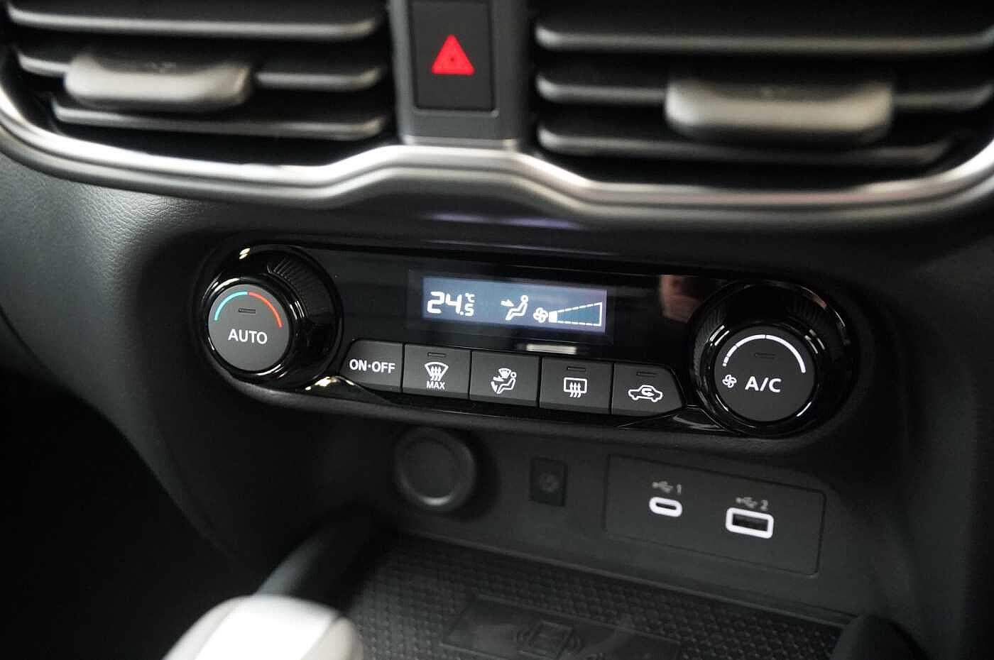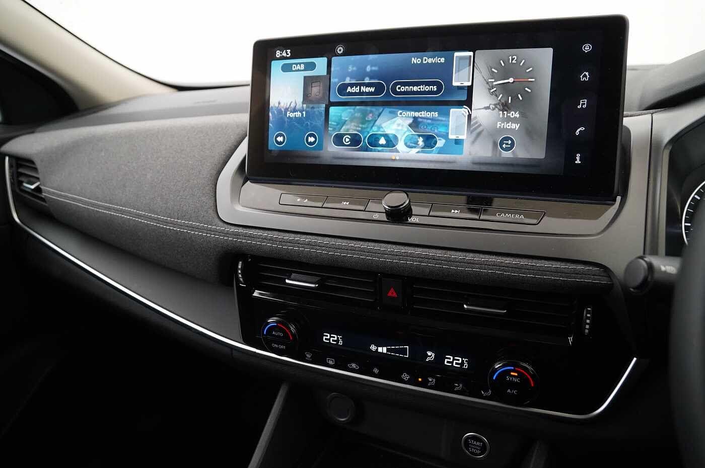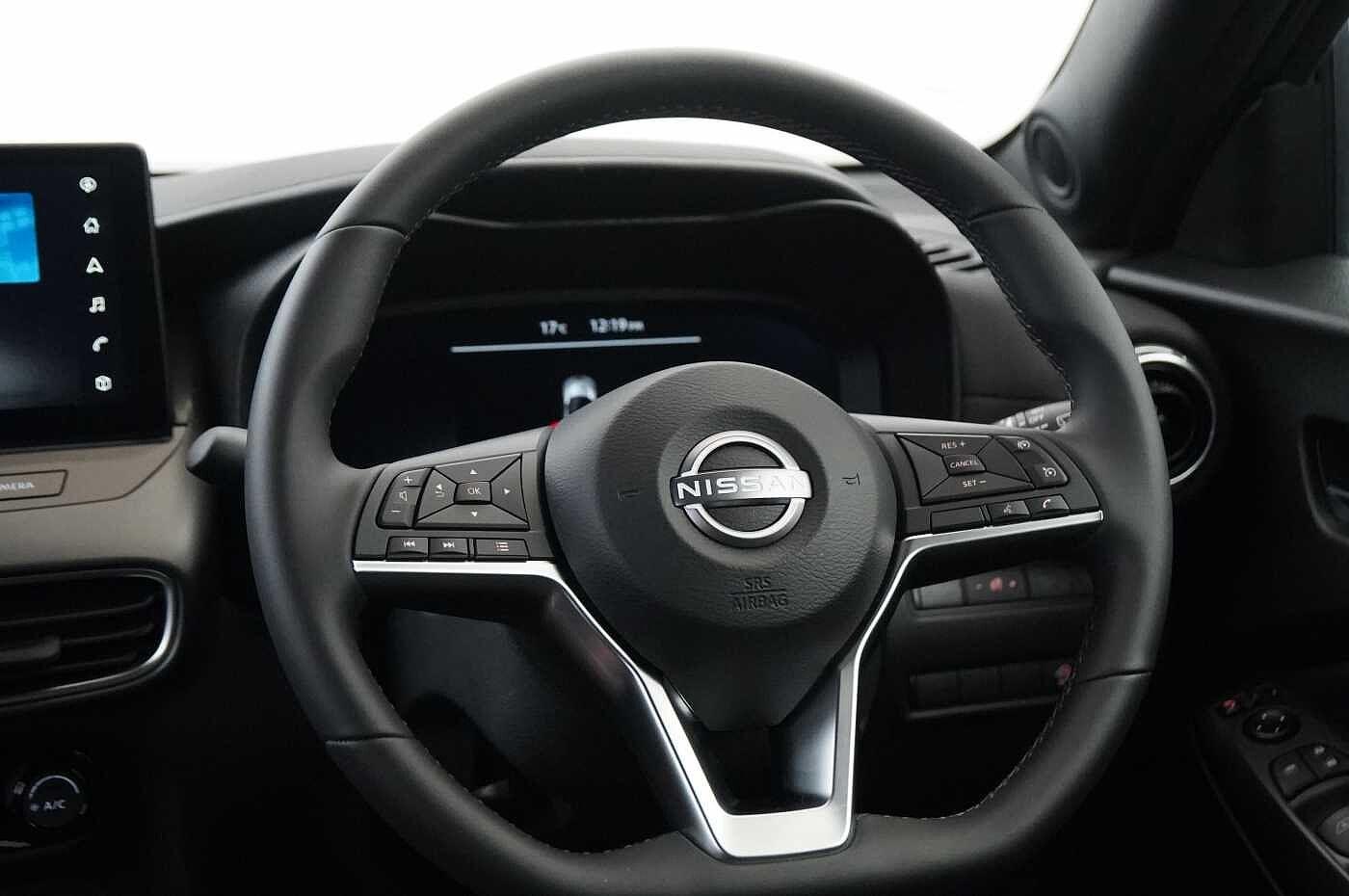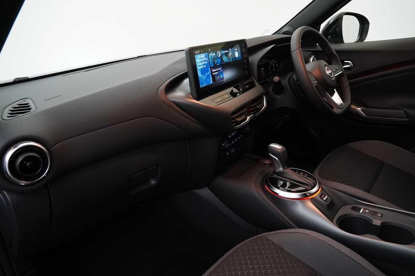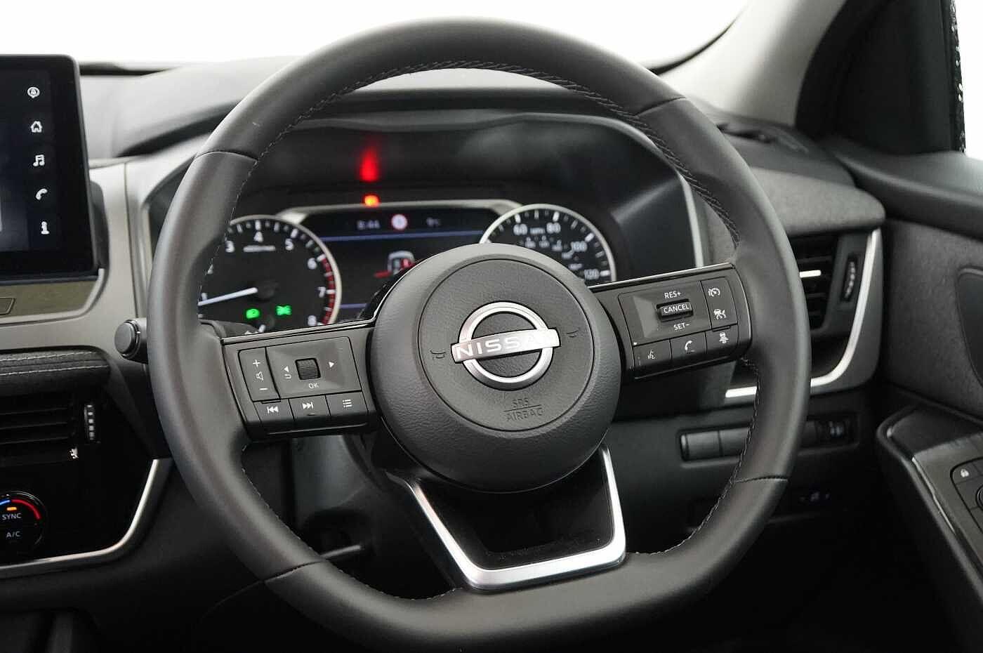 "features": "12.3\" full colour TFT screen combimeter, Drive modes select (Eco, normal and sport), Emergency and breakdown call, Front parking sensor, Idle start/stop system, Intelligent driver alert system, Intelligent lane intervention, Lane departure warning system, Nissan connect 12.3\" touch screen entertainment system, Nissan connect nav with TomTom traffic, Nissan connect services, Outside temperature sensor, Power Steering, Rear parking sensor, Stop/start button, Traffic sign recognition, Trip computer, Voice recognition, WiFi connectivity, Wireless Apple CarPlay and Google Android auto, Wireless Smartphone charger, 2 X Rear console USB port, 6 speakers, Bluetooth system, USB, Aux-in and 12V socket, DAB Digital radio, Automatic hazard signal with emergency stop signal, Body colour door handles, Electrically adjustable door mirrors with integrated indicators, Follow me home headlights, Front and rear electric window with one touch driver window, Heated and auto folding door mirrors, High beam assist, LED 3rd brake light, LED daytime running lights, LED headlamps, LED rear fog lamp, LED rear lamps, Manual dimming framed interior rear view mirror, One touch passenger window, Rain sensor windscreen wipers, Rear privacy glass, Rear side wing doors, Rear wiper, Roof spoiler, Shark fin roof antenna in solid Black, Solid black door mirrors, Three blink turn signal, 3 height adjustable rear headrests, 3 seat bench in 2nd row, 60/40 split folding rear seat, Automatic climate control, Card holder on driver sunvisor, Cloth/Synthetic leather with melange fabric inserts, Driver side rear coat hanger, Driver/passenger sunvisors and vanity mirrors, Front and rear cabin lights, Front armrest, Front door pockets with bottle holders, Front head restraints, Height adjustable driver's seat, Internal chrome door handles, Luggage board, Luggage space lighting, Monoform sporty seats, Multifunction steering wheel, Rear door bottle holders, Single front passenger seat, Smooth synthetic leather steering wheel, Synthetic leather kneepad, Synthetic leather shift knob, Telescopic steering wheel adjustment, Two cupholders in front centre console, Two rear isofix child seat anchorage points with top tether, Welcome light and console tray ambient lighting, ABS with EBD and brake assist, Active ride control, Active Trace Control, Driver and passenger airbags, Driver and passenger side airbags, Electric handbrake with auto hold function, Electronic Stability Programme (ESP), Front and rear curtain airbags, Height adjustable seatbelts, Hill start assist, Intelligent emergency braking with pedestrian and cyclist recognition, Rear door child safety locks, Seatbelt reminder for driver/front passenger and rear seats, Three 3 point rear seatbelts, Traction control, Tyre pressure monitoring system, VDC Dynamic Vehicle Control, Alarm, Immobiliser, Intelligent key and start push button with walk away lock and approach unlock functions, Remote central locking, 17\" Alloy wheels, Tyre puncture repair kit, ",