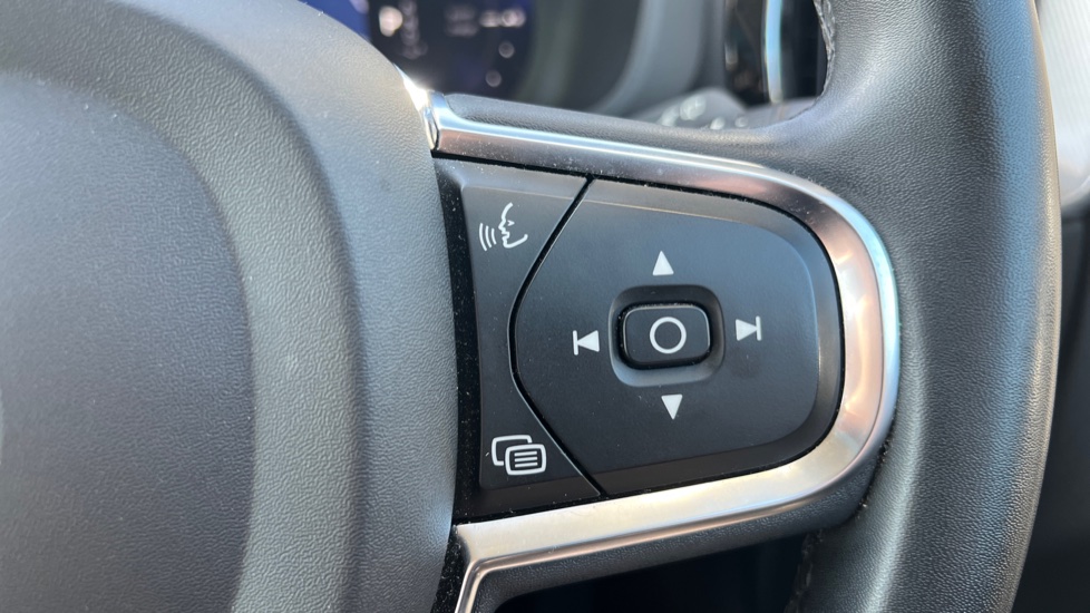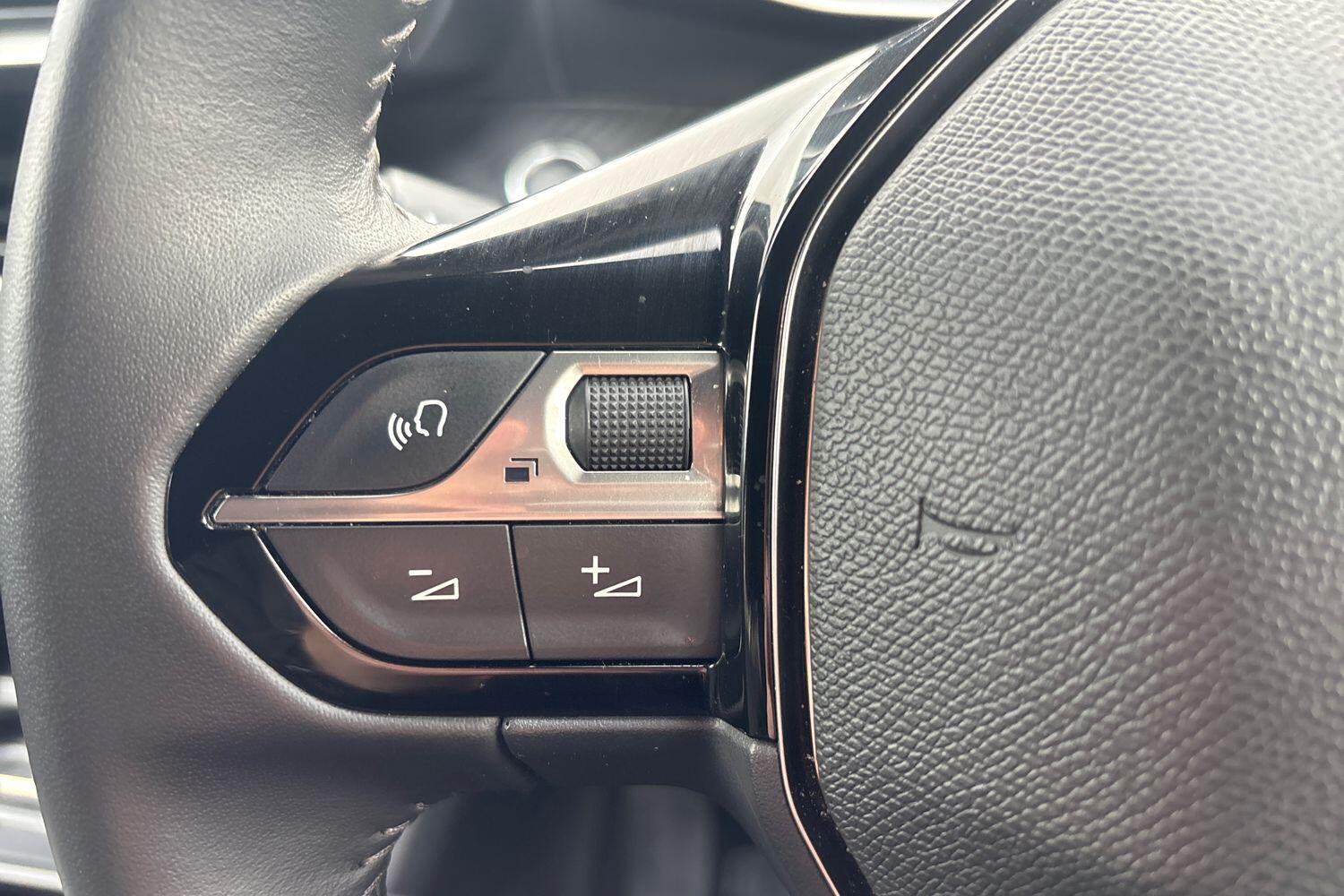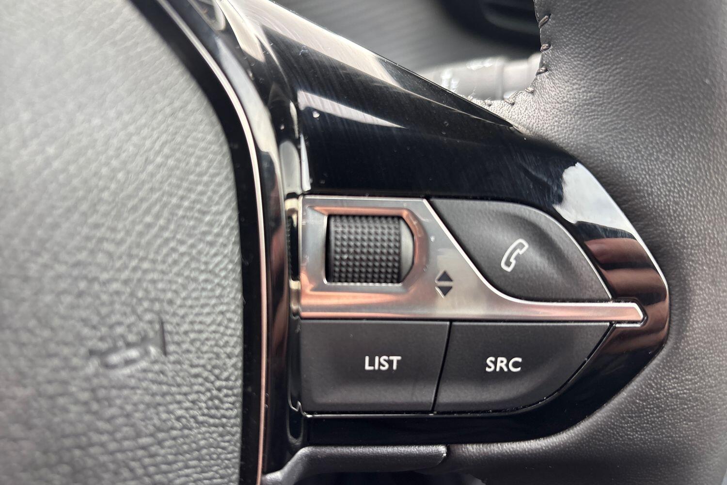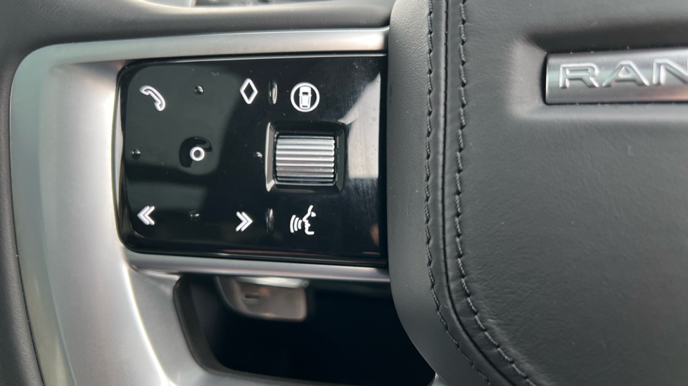 "3 spoke flat bottom leather steering wheel with satin chrome effect bezel",