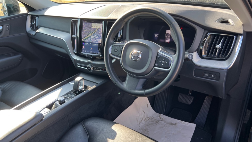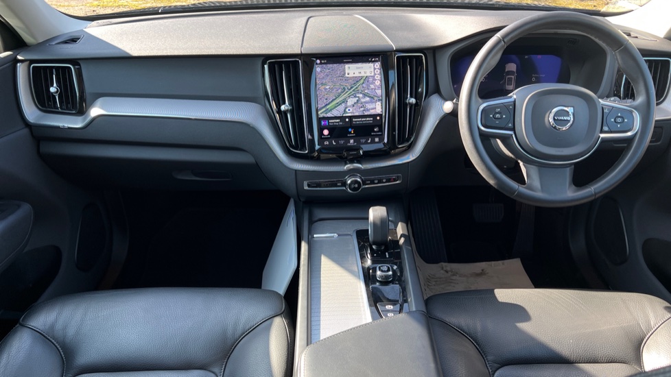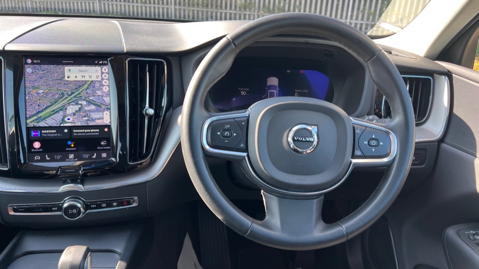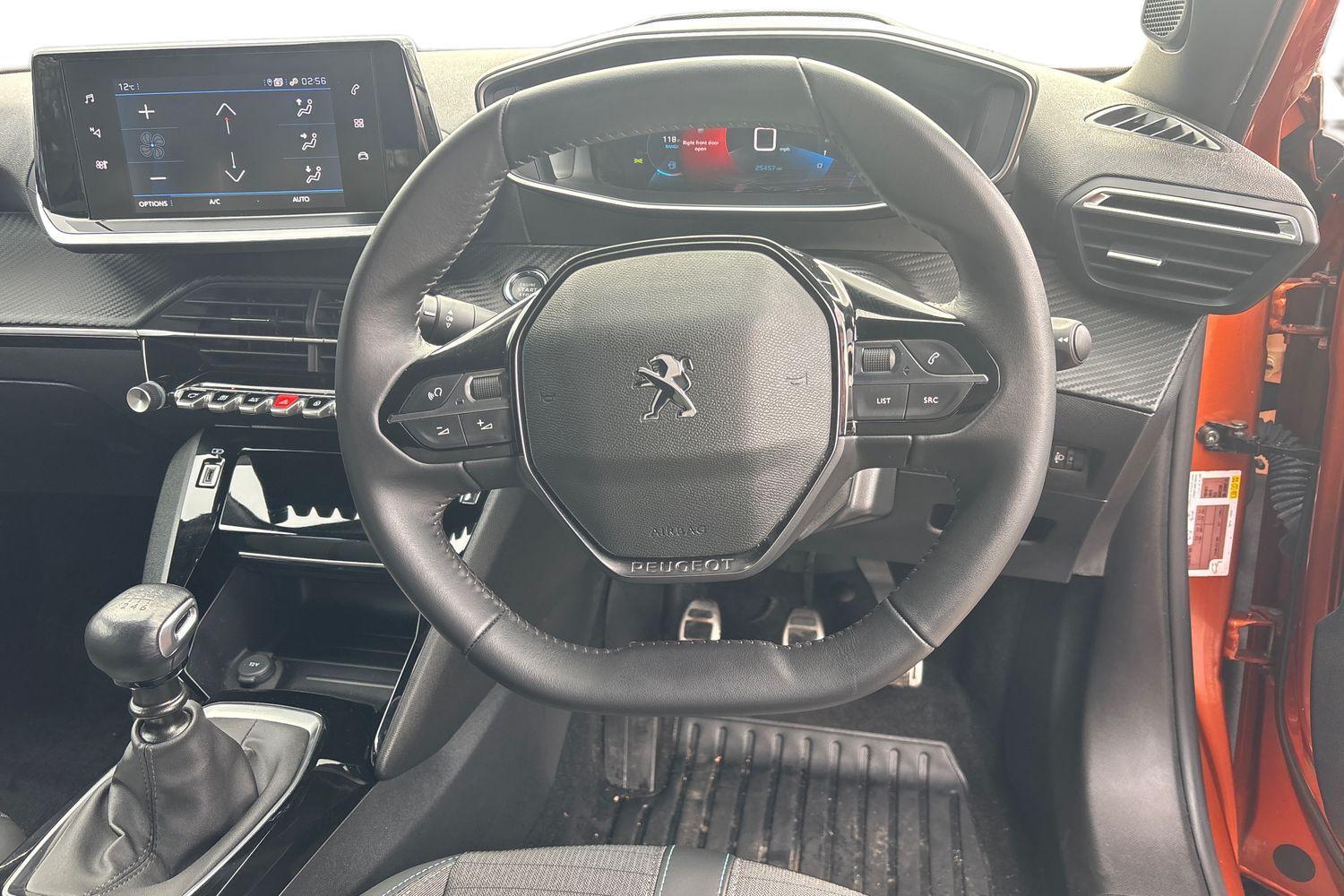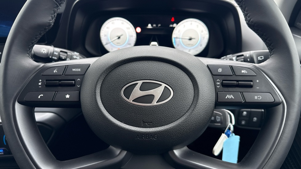 "3 spoke flat bottom leather steering wheel with satin chrome effect bezel",