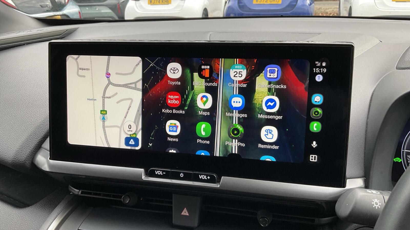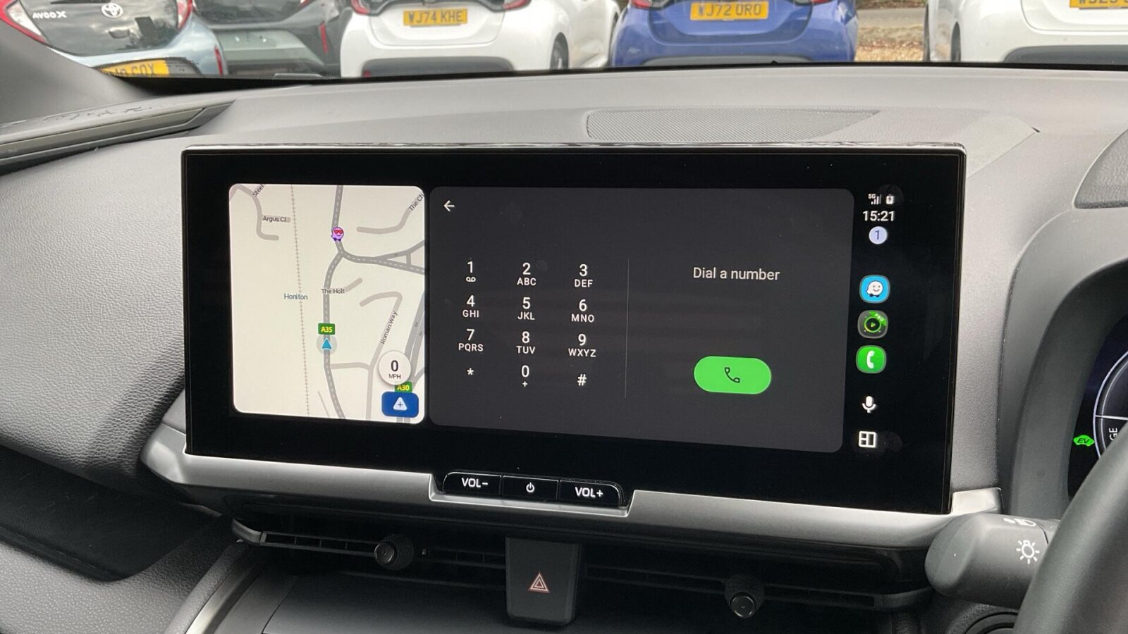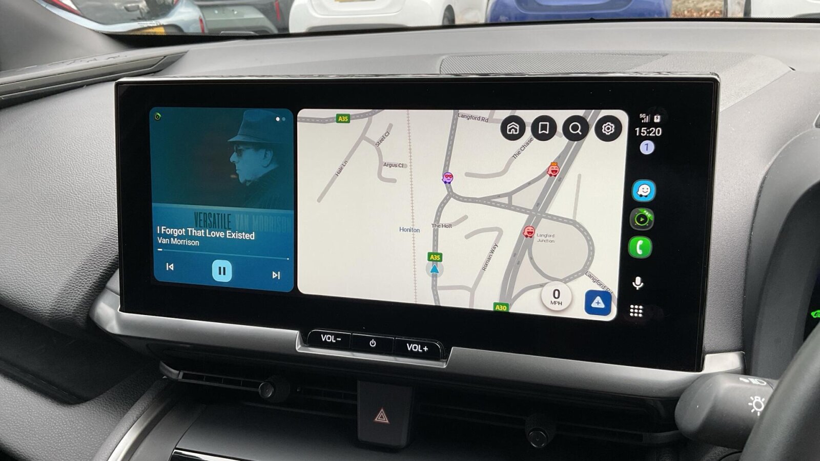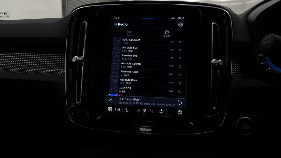 "Central facia display with digital clock, outside air temperature and audio information",