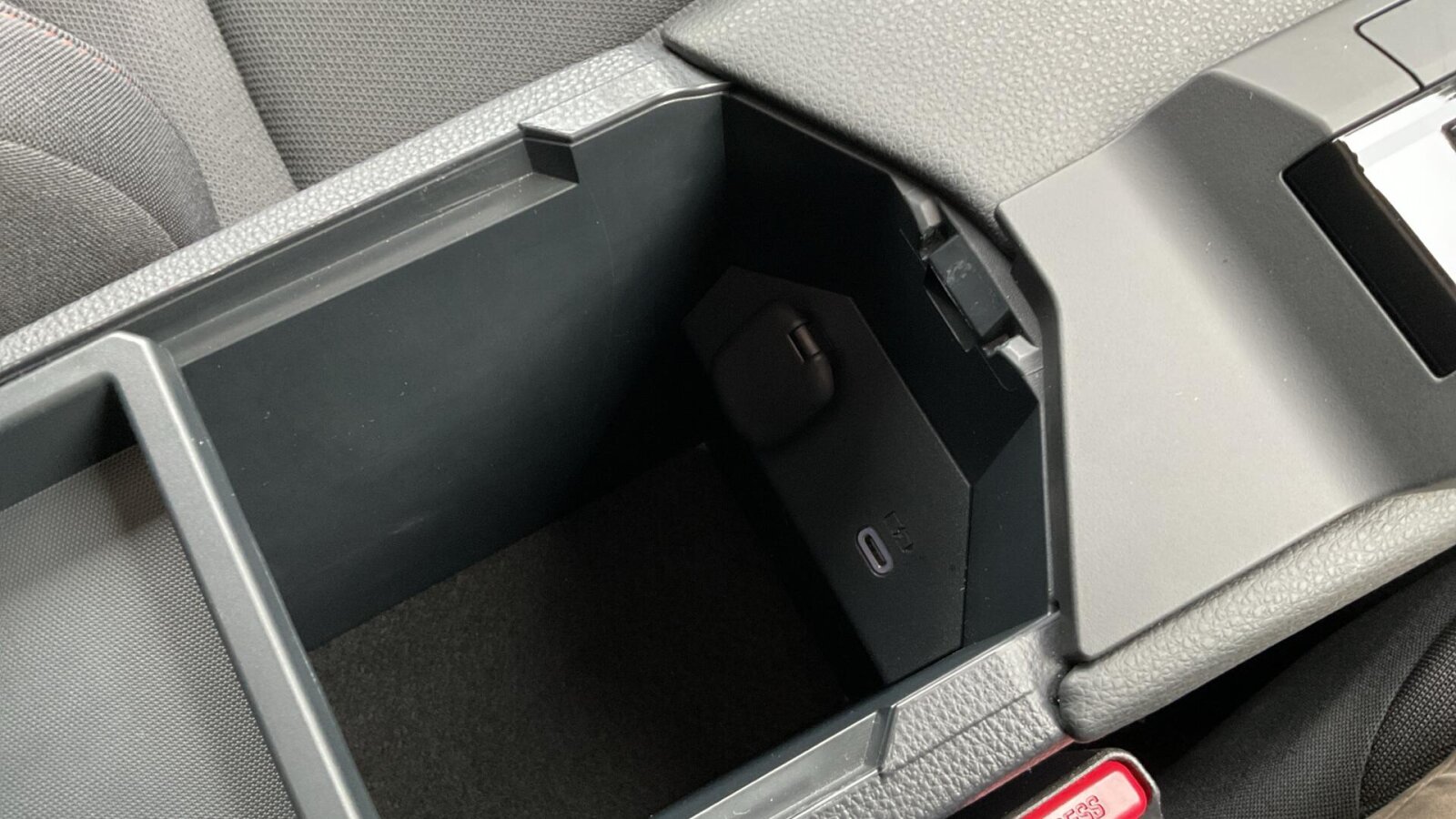 "Covered storage compartment in centre console and in driver armrest",