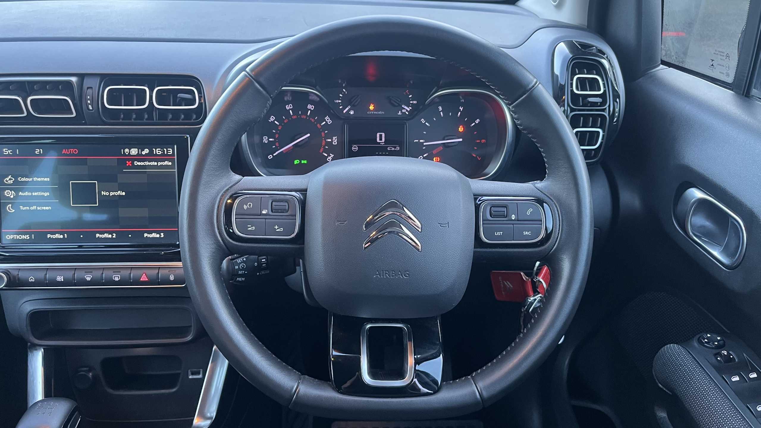 "Steering wheel mounted audio controls"