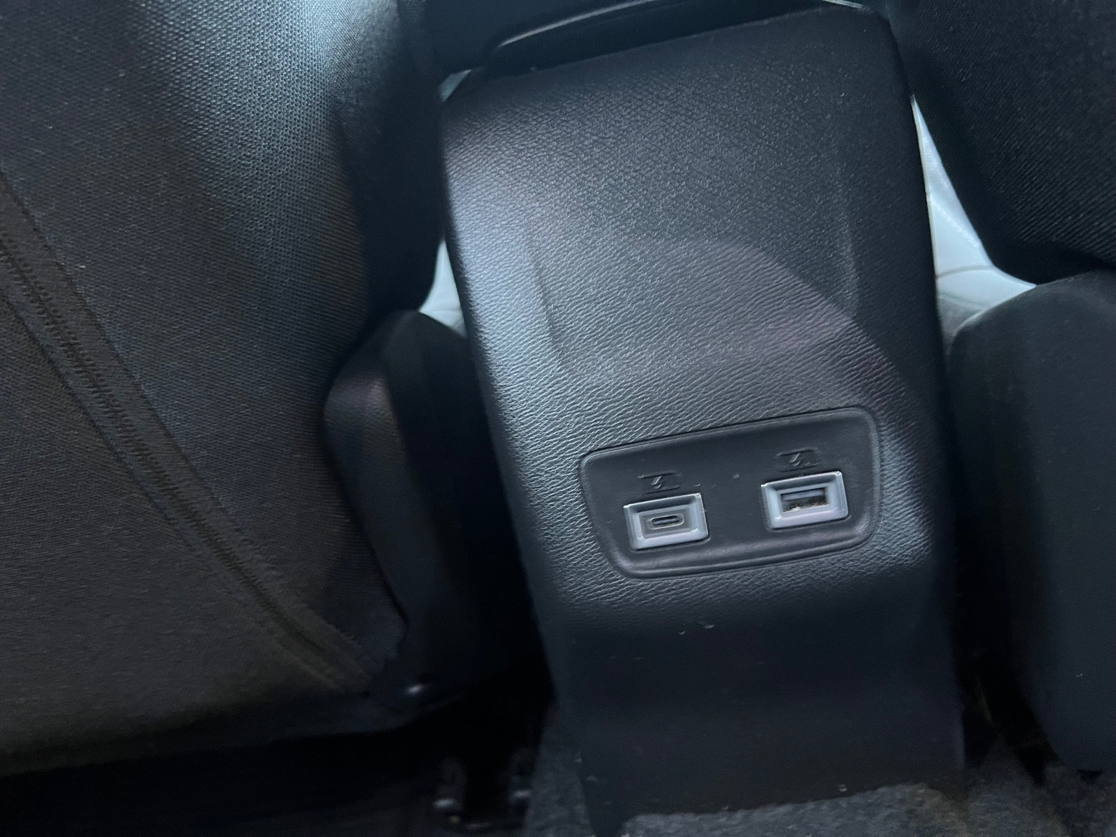 "Flying console with central storage, sliding armrest and 2 rear air vents",