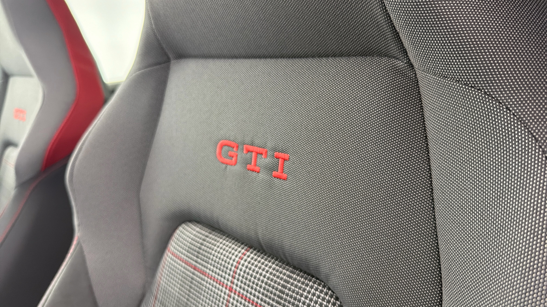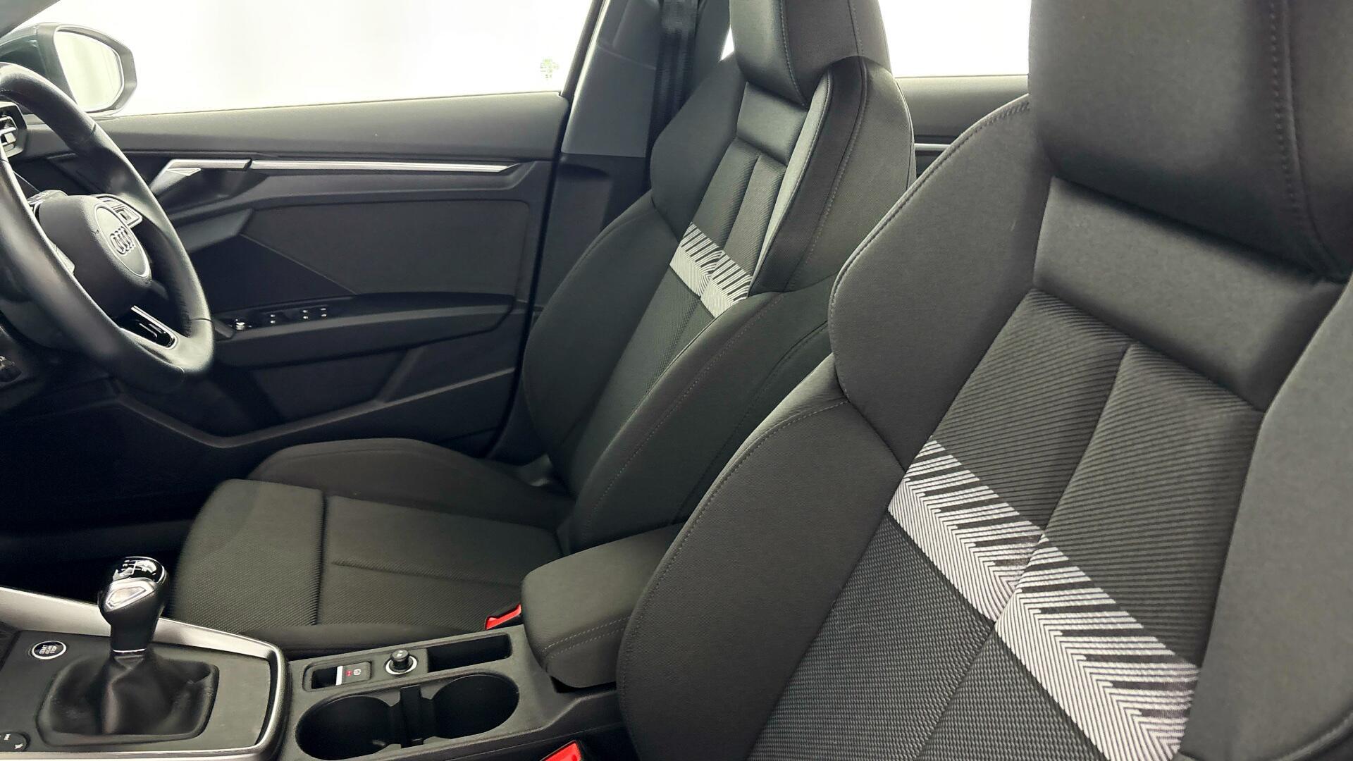 "Leather style with cloth inserts upholstery",