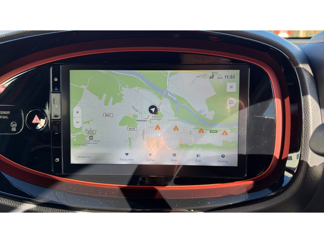 "Head up display in windscreen includes road sign information, distance alert, set speed and navigation",