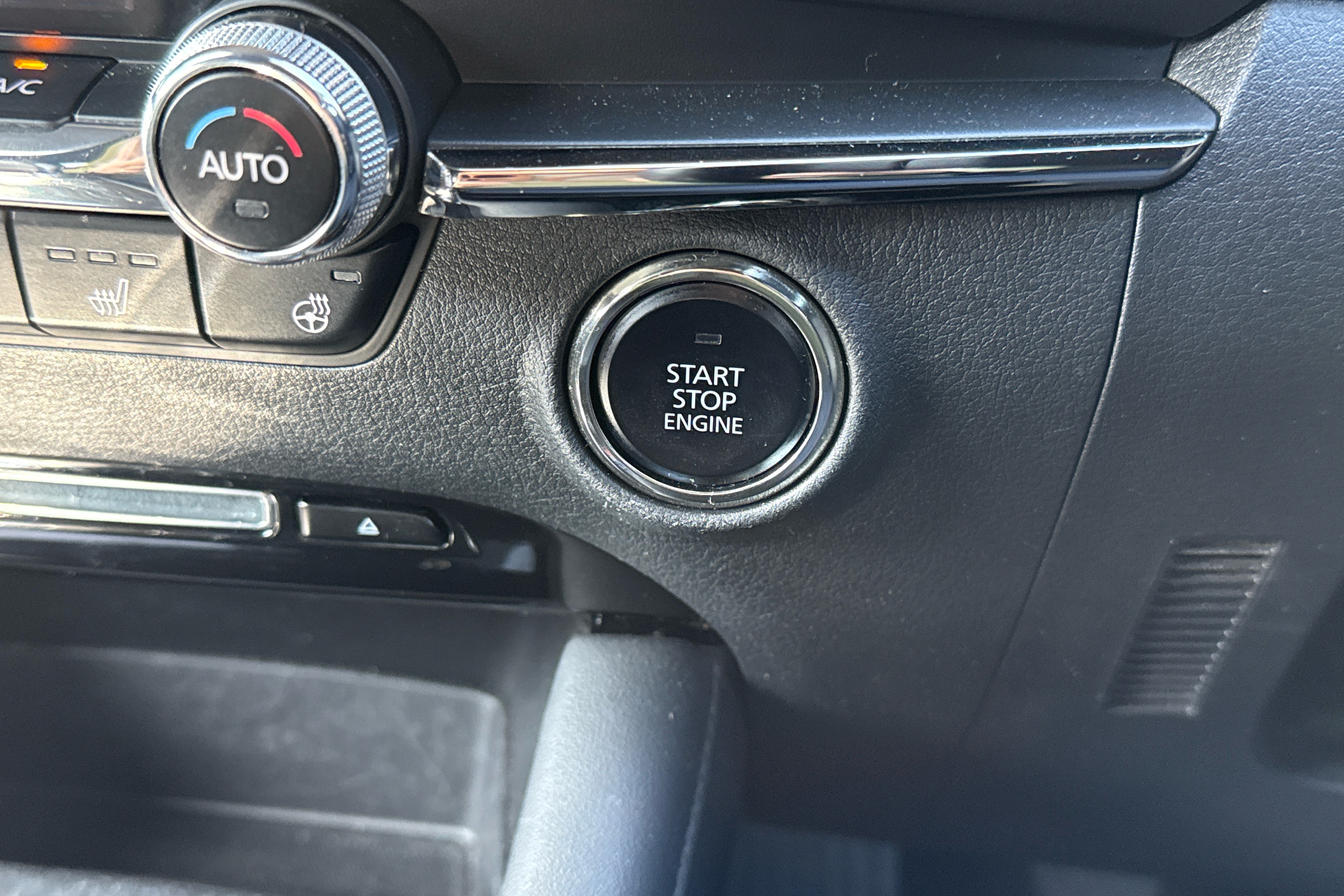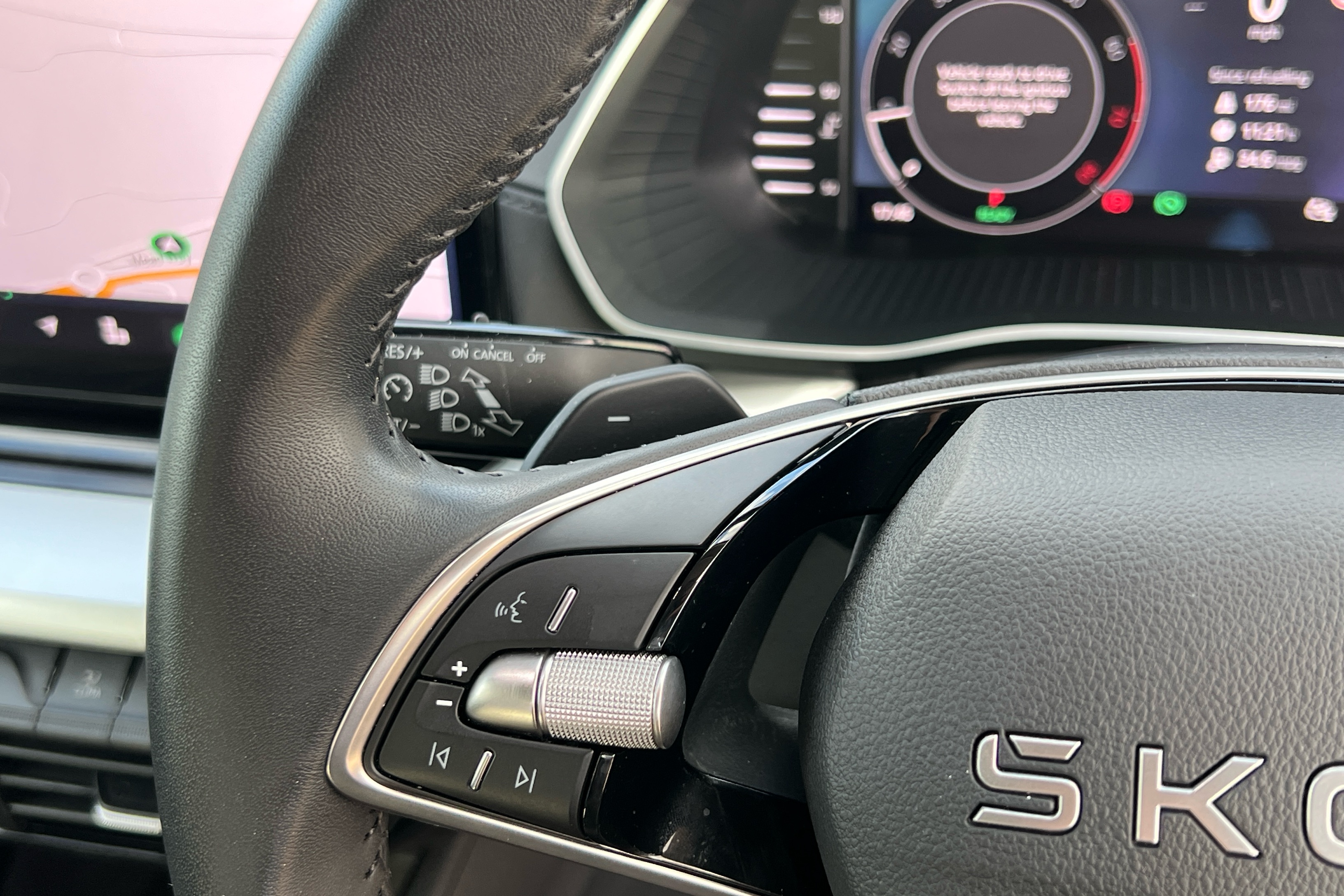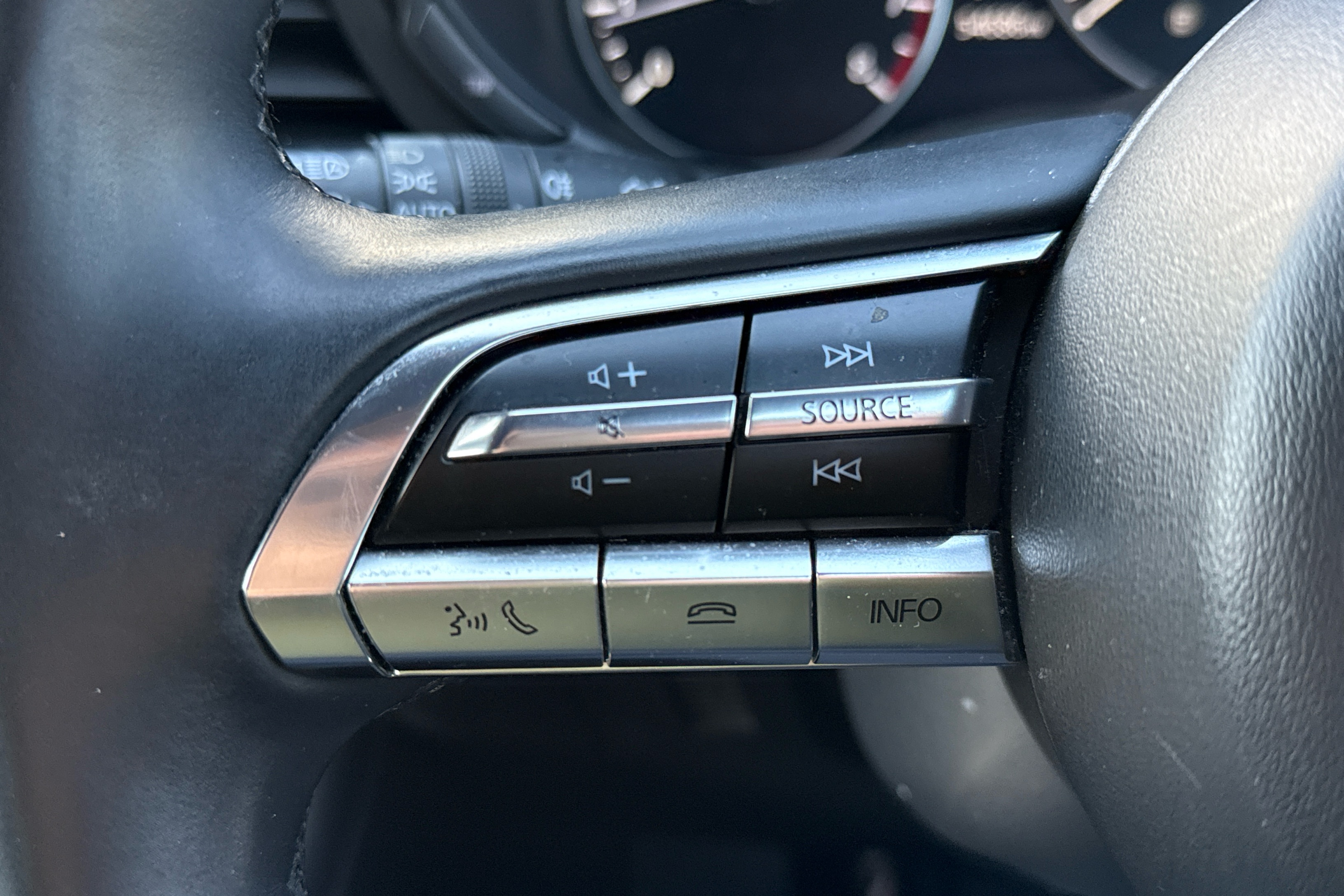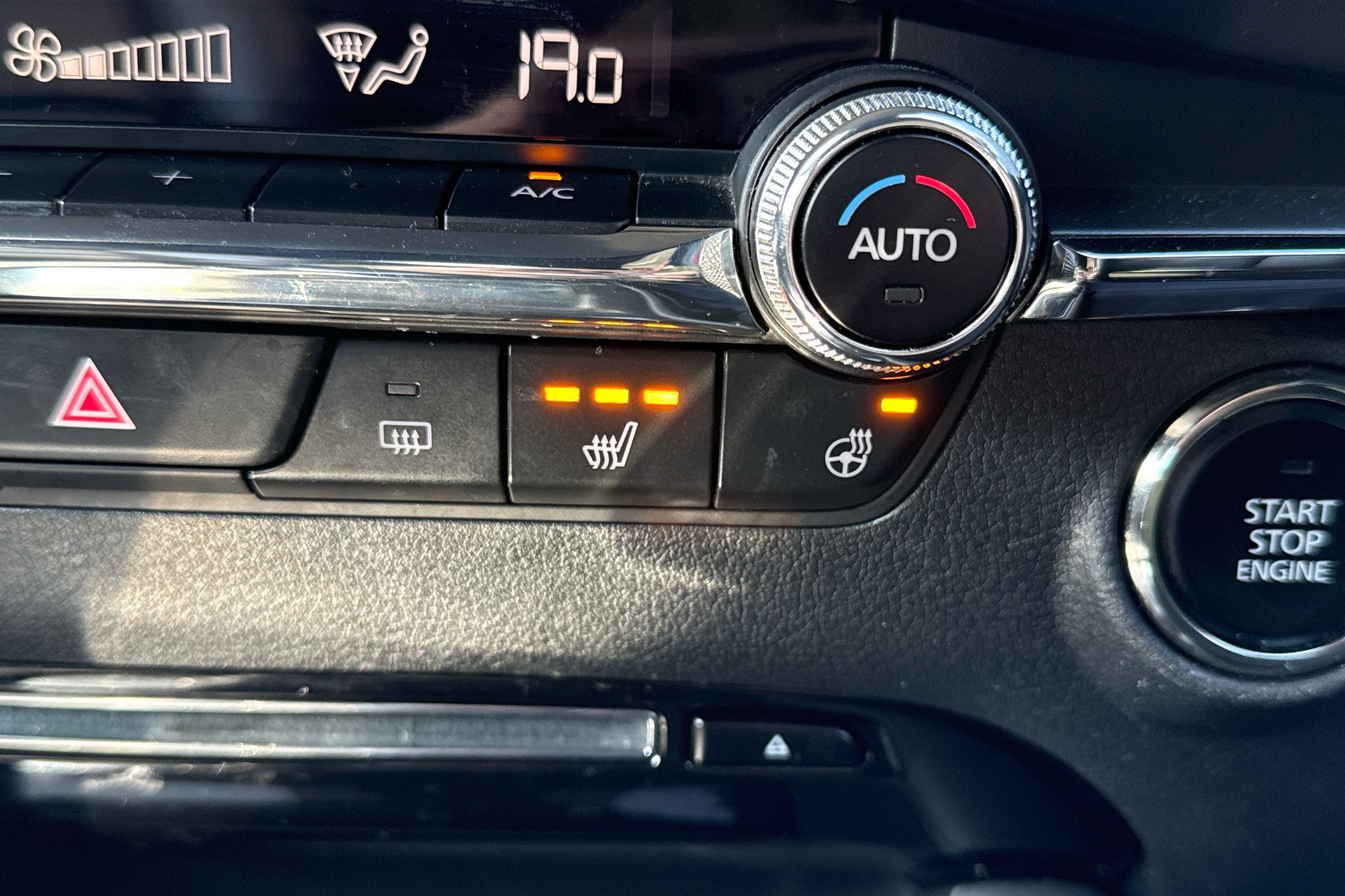 "Leatherette-wrapped multifunction heated steering wheel with touch control",