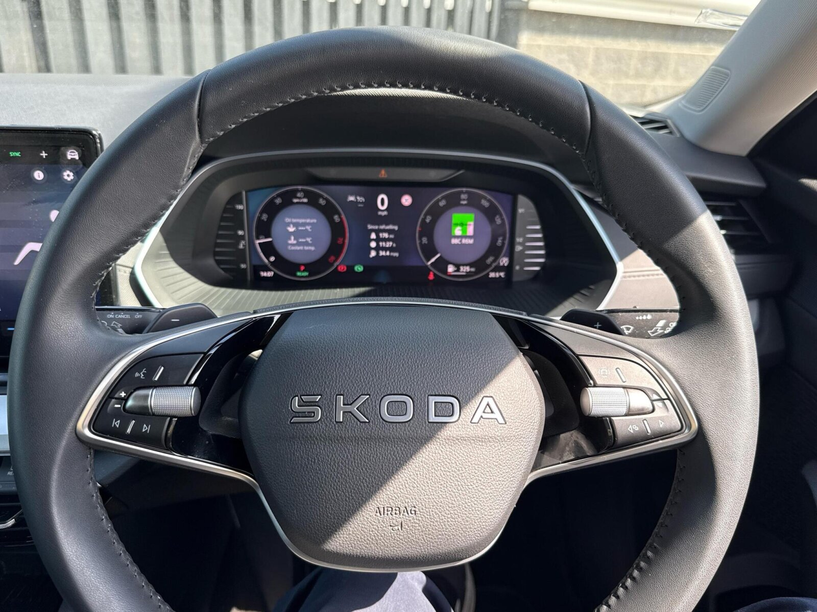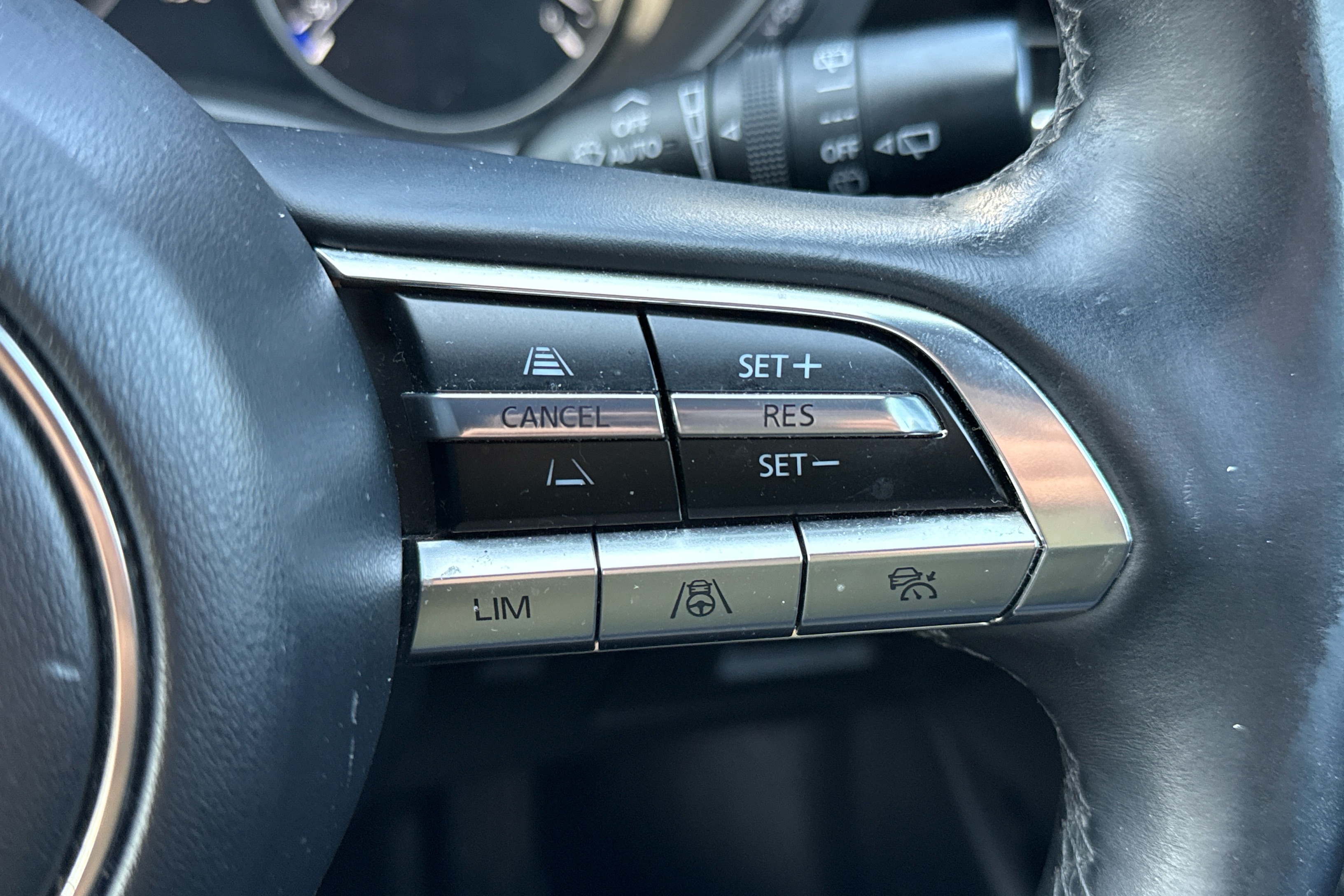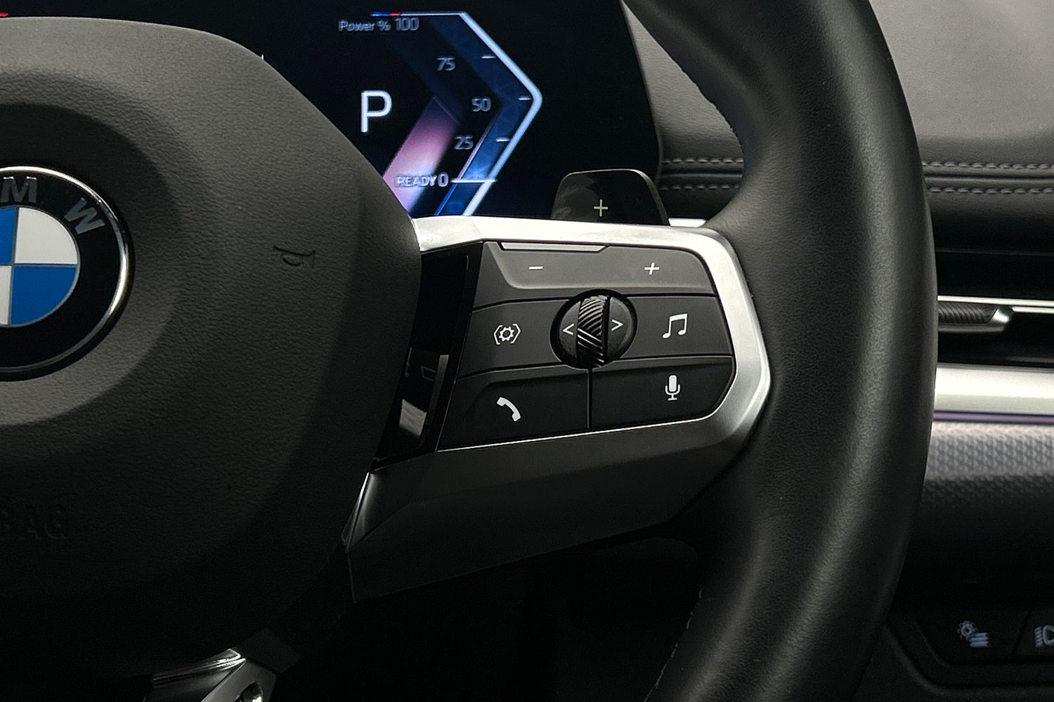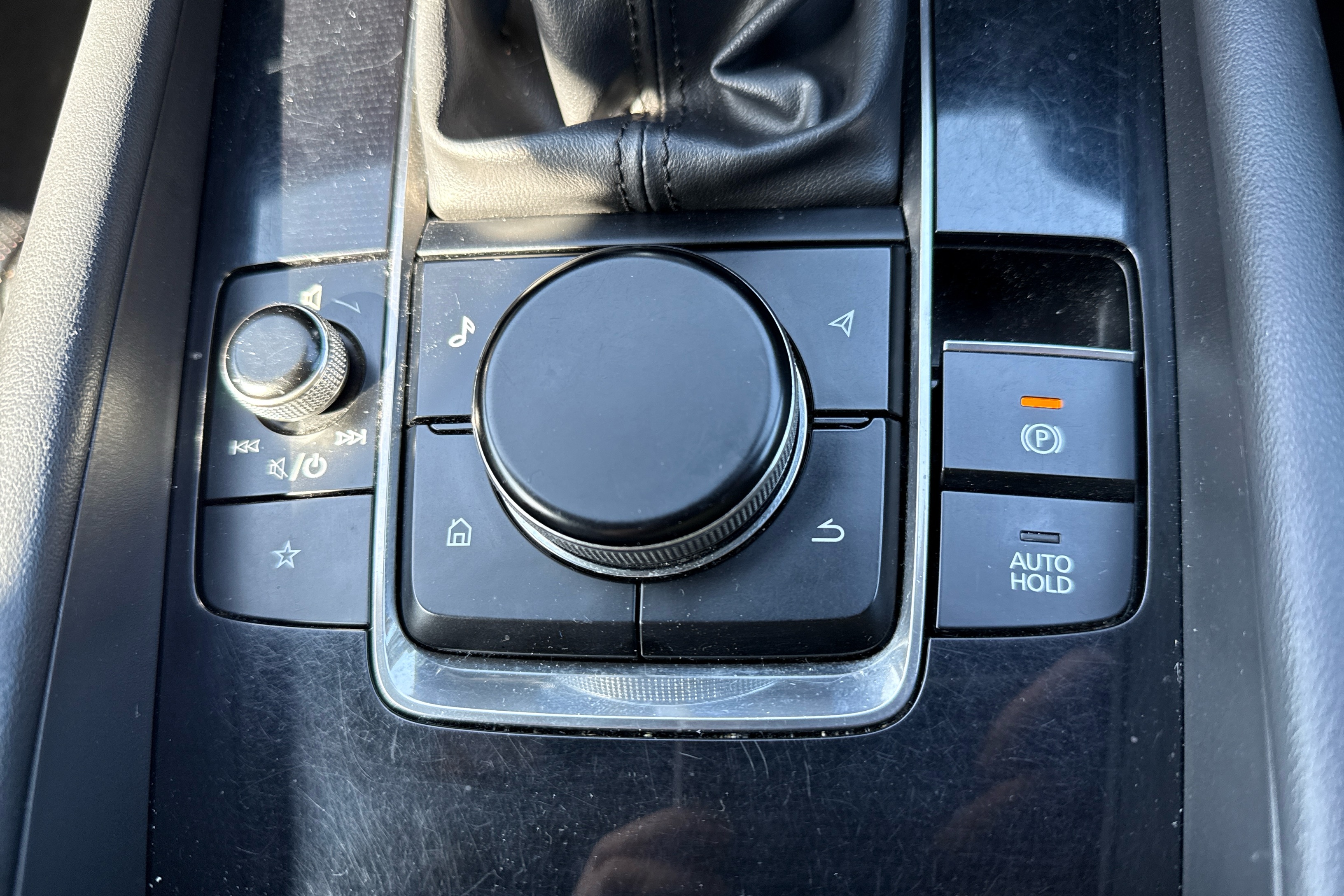 "Leatherette-wrapped multifunction heated steering wheel with touch control",
