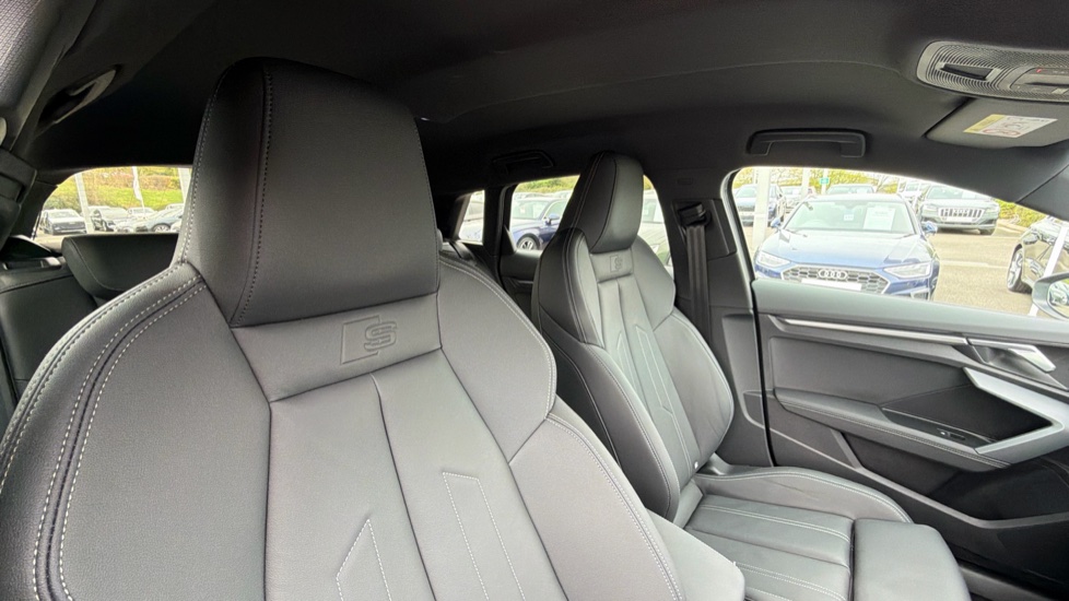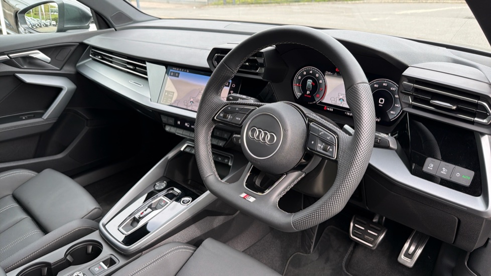 "features": "Adaptive cruise control (ACC), Adjustable speed limiter, Audi drive select (Auto, Comfort, Dynamic, Efficiency and Individual), Audi virtual cockpit plus - 12.3\" full HD resolution dynamic digital instrument cluster, Automatic start/stop system with recuperation, Bluetooth interface, Camera based traffic sign recognition, Collision avoidance assistant, Driver attention and fatigue detection, e-Call (emergency call), Electromechanical power speed sensitive steering, Emergency assist, Intersection assist, Lane departure warning system, MMI Navigation Plus with high resolution 10.1\" colour touch screen display, Park Assist with parking system Plus, Reversing camera, Service indicator, Smartphone interface with app store includes wireless Apple carplay, Android auto and Amazon alexa integration, Trip computer, Voice control system with natural language interaction, Sports suspension, Audi Phonebox light with wireless charging, Audi sound system - 10 loudspeakers including centre loudspeaker and subwoofer, DAB Digital radio, USB ports with charging function in the rear, Acoustic glass windscreen, All weather light, Aluminium window trim, Auto dimming frameless rear view mirror, Automatic dynamic range control, Body colour exterior mirrors, Chrome exhaust tailpipes, Dipped beam, main beam, position light and turning light, Electrically adjustable/heated/folding/auto dimming door mirrors with integrated LED indications + kerb view function for passenger side, Exterior model badging, Front and rear side air inlets in grained matt black with dark liquid chrome frame, Front electric windows, Front radiator grill in high gloss dark chrome, Heat insulating glass windscreen, Illuminated door sills with aluminium inserts at the front with S logo, Intersection light, LED 3rd brake light, LED brake lights, LED daytime running x3, LED headlights with LED rear lights and dynamic rear indicators, LED rear number plate lights, LED reverse light, LED tail lights, Light and rain sensors, Manoeuvring light, Motorway light, Privacy glass - dark tinted rear window, rear door and side windows, Rear diffuser and grill in grained matt black with inlay in dark liquid chrome, Rear electric windows, Rear side wing doors, Rear wiper, S line bumpers, S roof spoiler, Side S line emblems on front wings, Side sill trim in dark liquid chrome, Static cornering light, 12V socket and storage compartment in front centre console, 3 seat bench in 2nd row, 3 spoke flat bottomed leather multifunction sport steering wheel with gear shift paddles, 3-zone deluxe automatic air conditioning, 4 way electrically adjustable lumbar support for driver and front passenger, 40/20/40 split folding rear seat bench, Black cloth headlining, Black front and rear floor mats, Front and rear centre armrest in artificial leather with contrasting stitching on armrests and instrument panel, Front and rear headrests, Heated front seats, Height and reach adjustable steering wheel, i-Size child seat mounting on the front passenger side and outer rear seats, i-Size and top tether on the outer rear seats, Manual boot compartment lid, Manually adjustable front seats, Rear centre armrest with cupholder, S badging on the steering wheel, Seat side bolsters, Single front passenger seat, Stainless steel pedals and front footrest in black, Twin leather upholstery with front sports seats S embossed logo, Aluminium interior elements pack - A3, Multi-coloured LED interior lighting package with Multi-coloured contour lighting of instrument panel - A3, 3x3 point rear seat belts, Driver and front passenger airbag with passenger airbag deactivation, Electronic Stabilisation Control (ESC) including ABS, ASR and EDL, First aid kit with warning triangle and 2 safety vests, Front side airbags with head airbags and interaction airbag, Hill hold assist, Pre-sense front with pedestrian and cyclist detection, Seatbelt monitoring, Tyre pressure loss indicator, Anti theft alarm, Anti-theft wheel bolts, Electronically operated child locks, Immobiliser, Black dashboard, Inlay in dark aluminium spectrum, ",