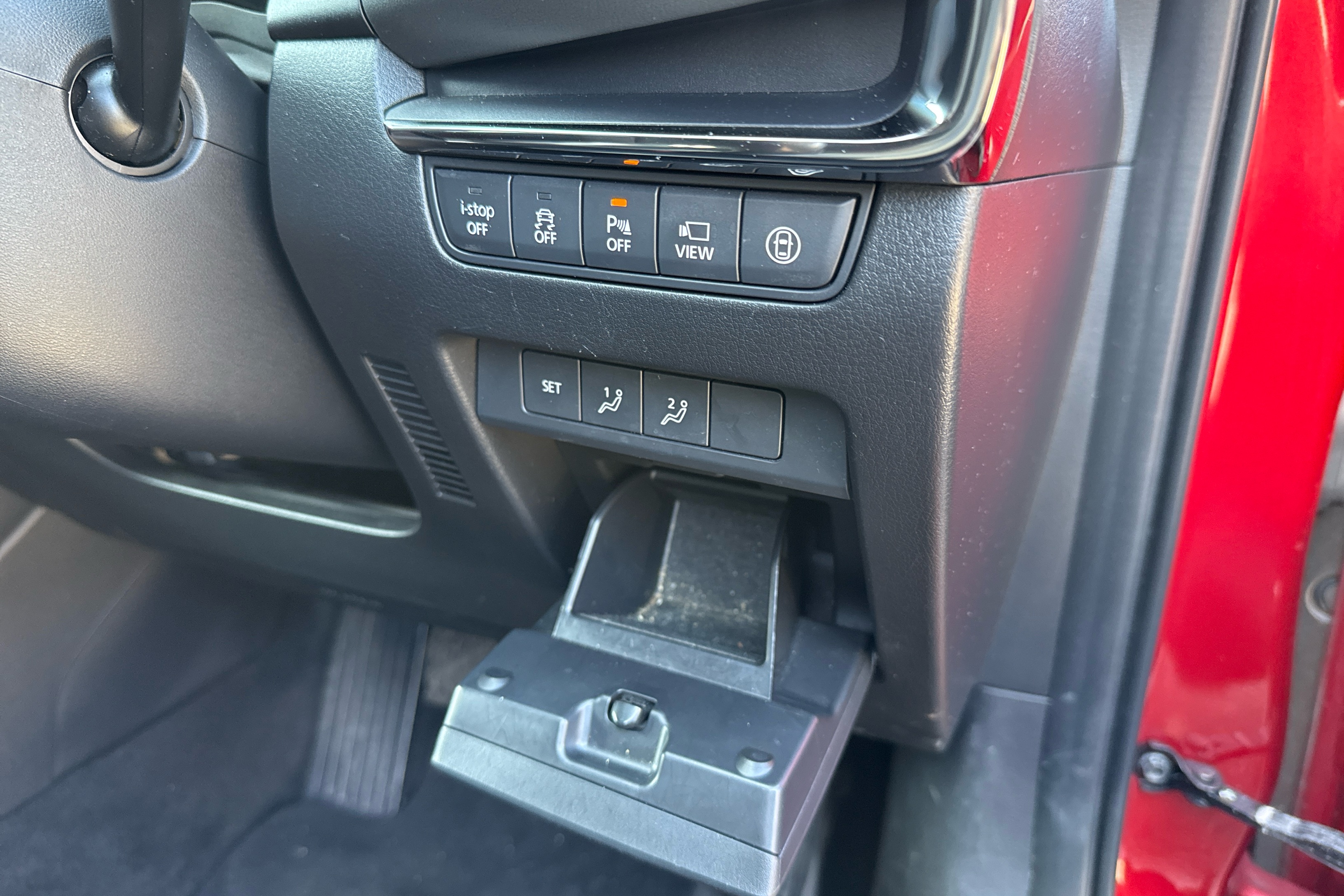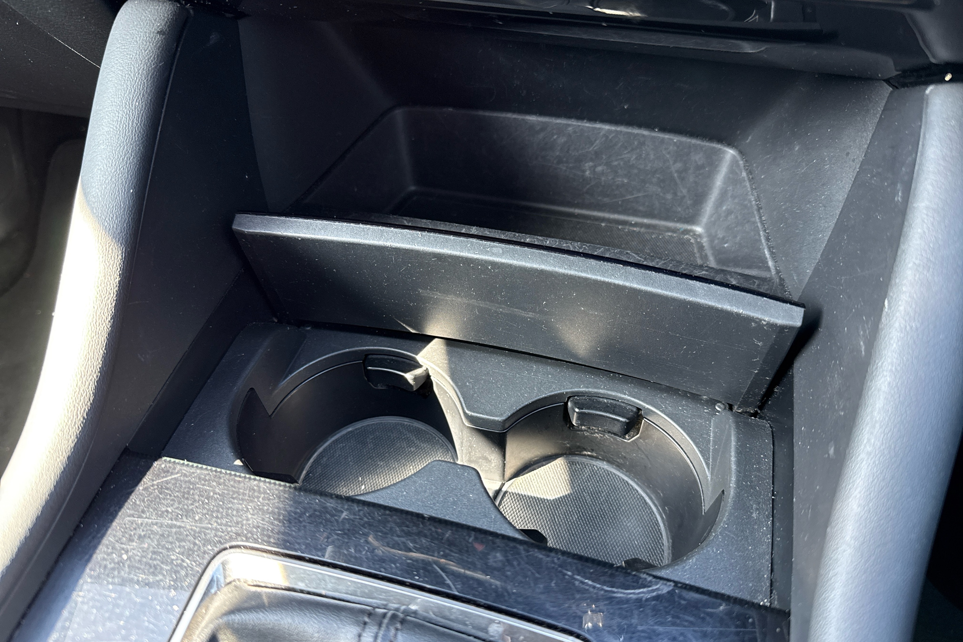 "Centre console with illuminated storage compartment with sliding cover and two drinks holders",