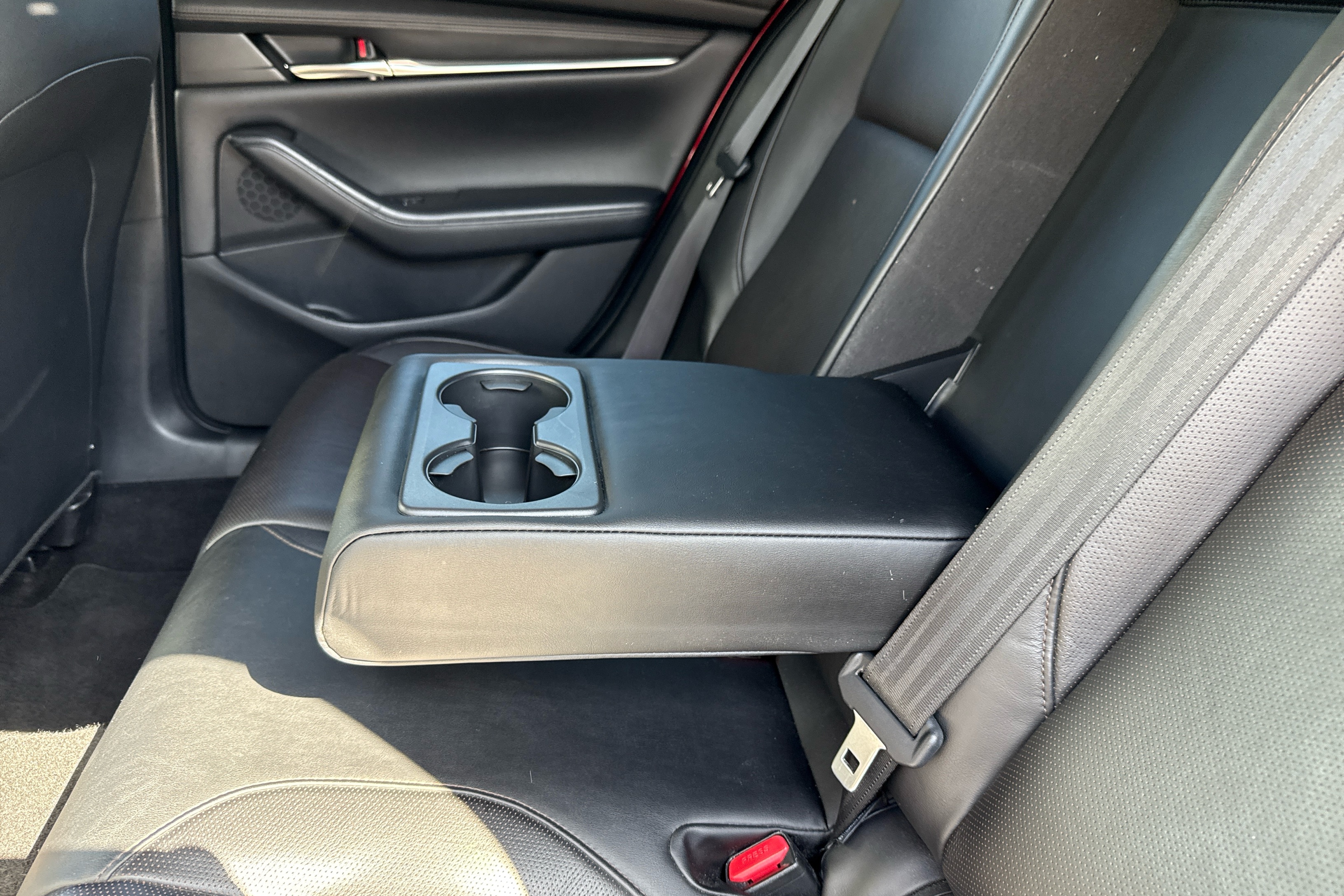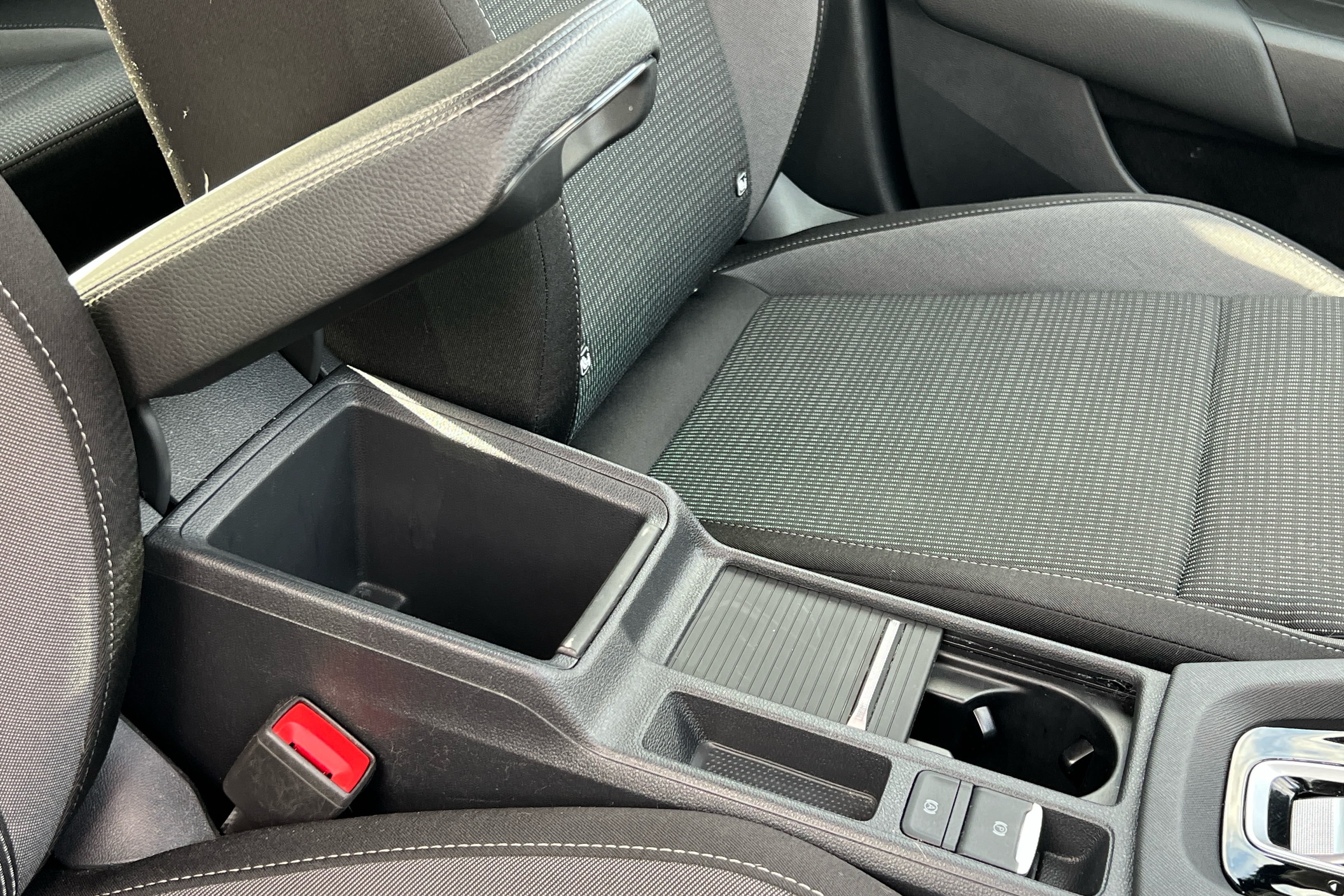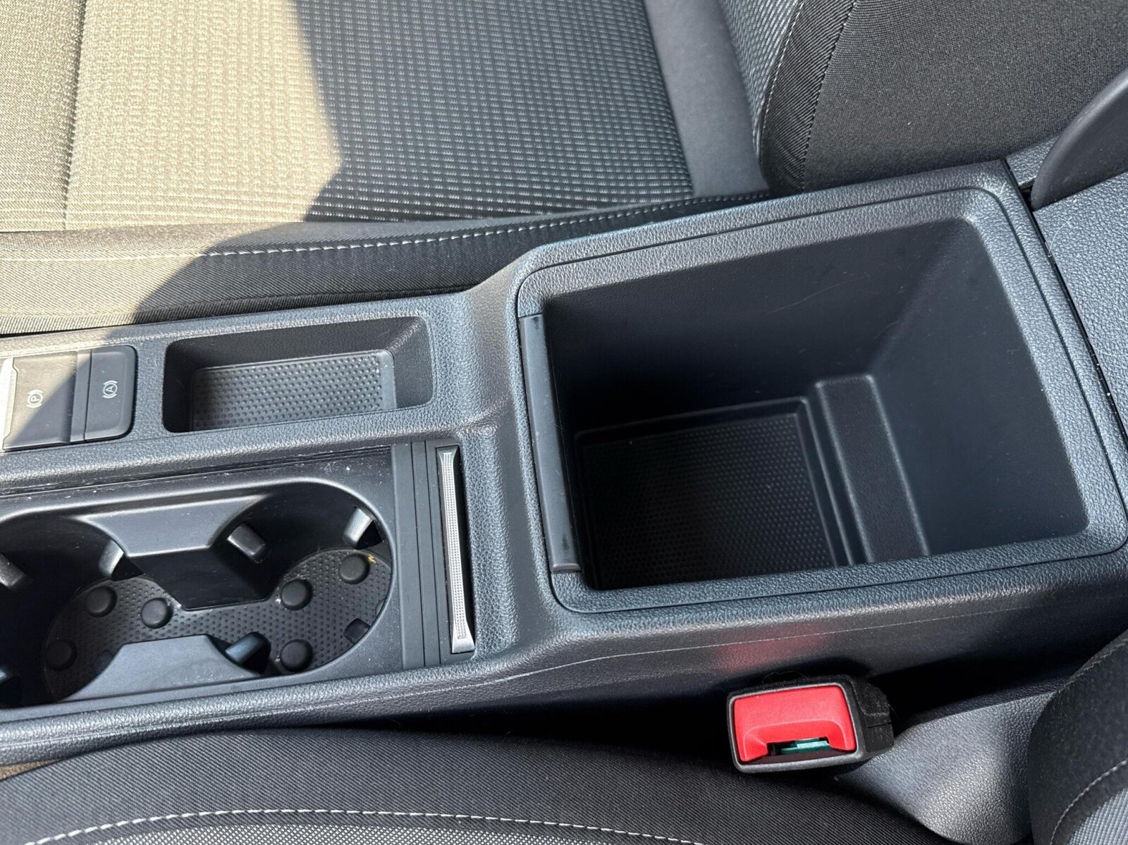 "Rear seat bench unsplit, backrest split folding with center armrest including 2 cup holders",
